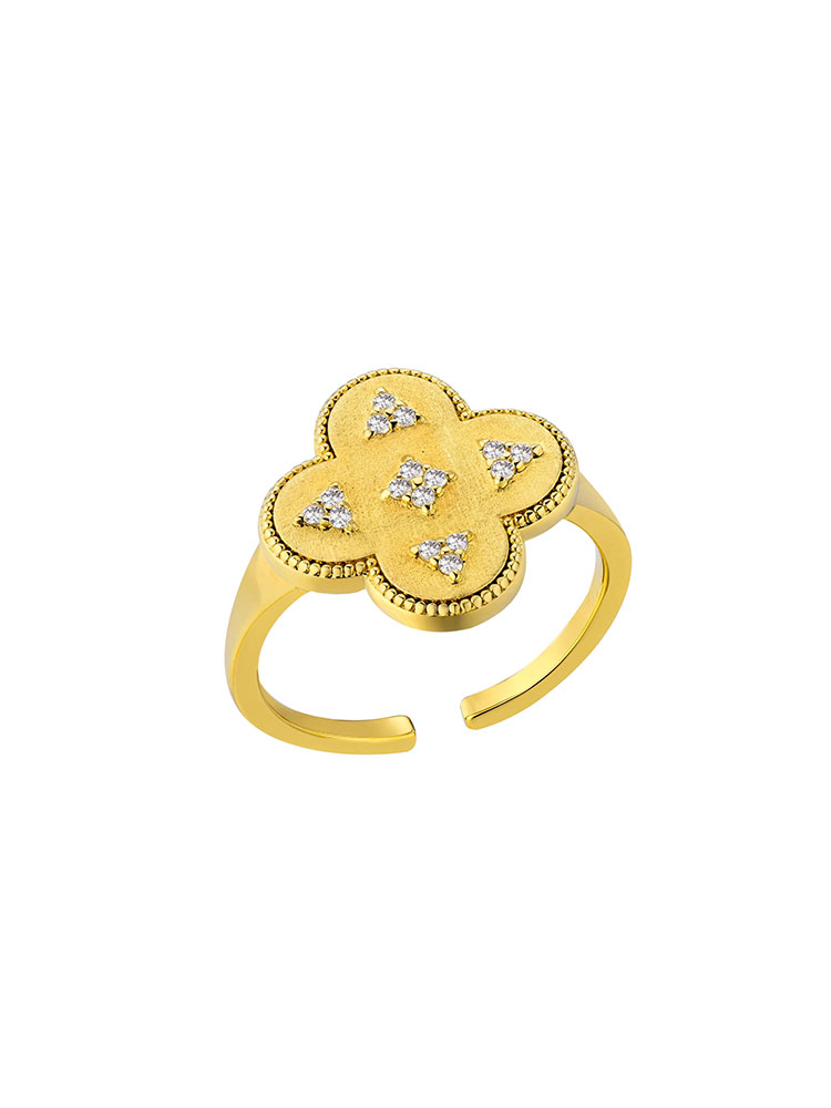 订购8周到|MYA-BAY-LUCKY-四叶草 金色 锆石 幸运 戒指[比利时设计师]
