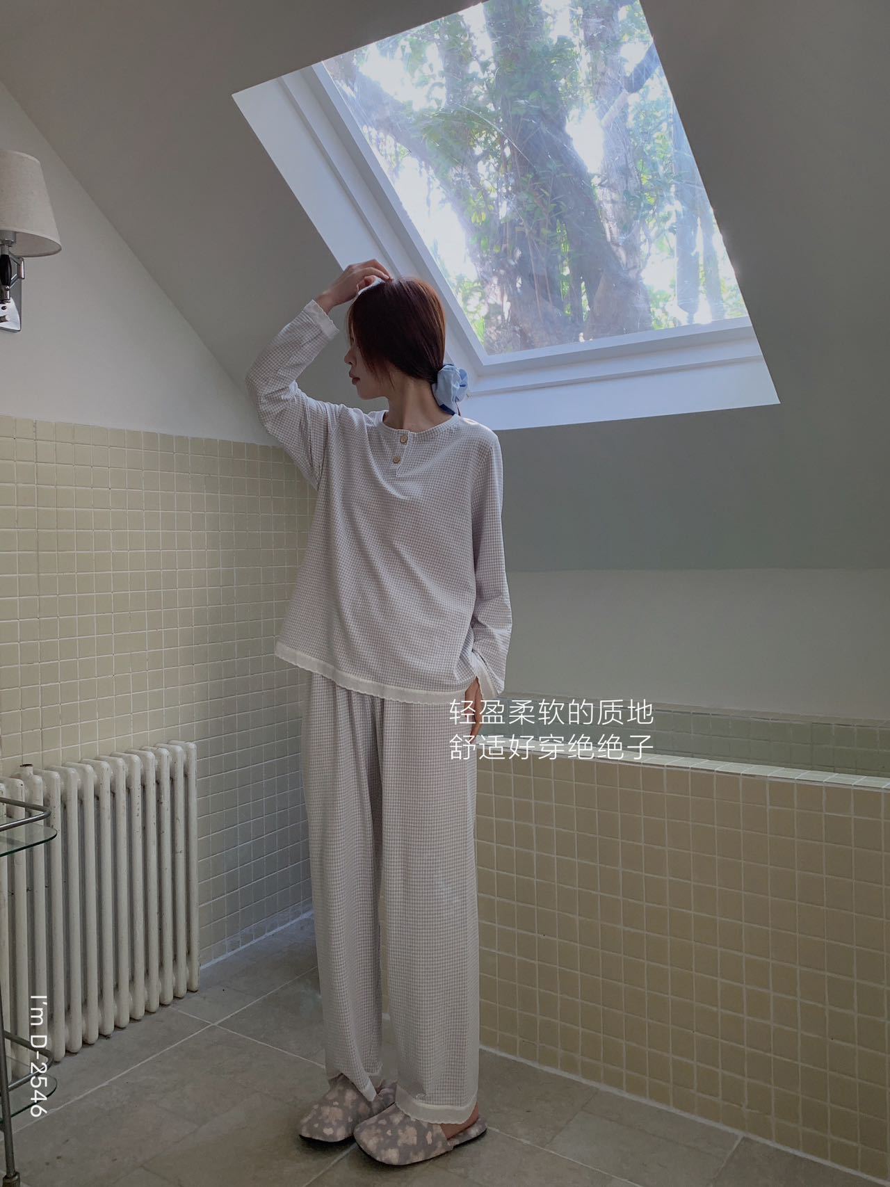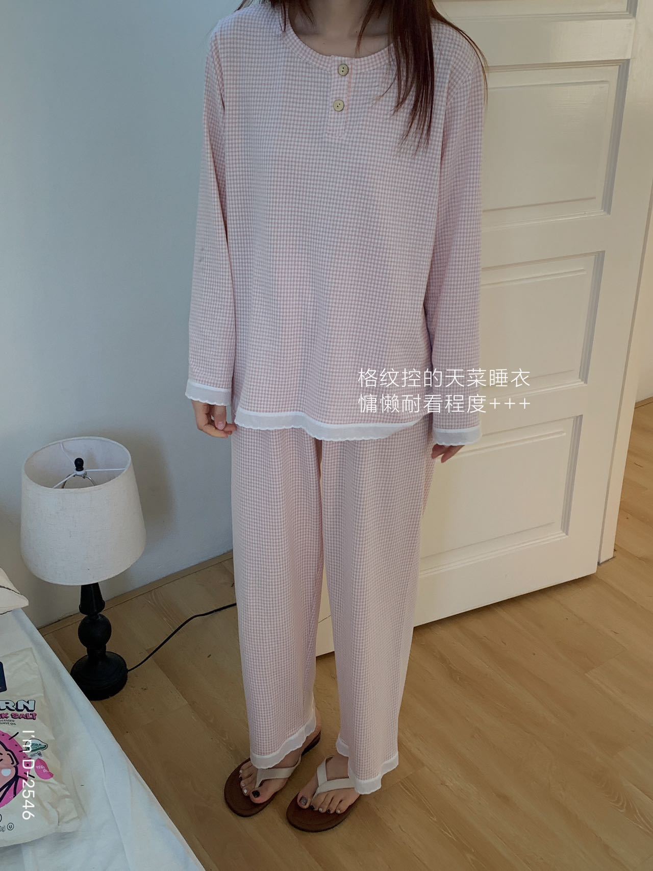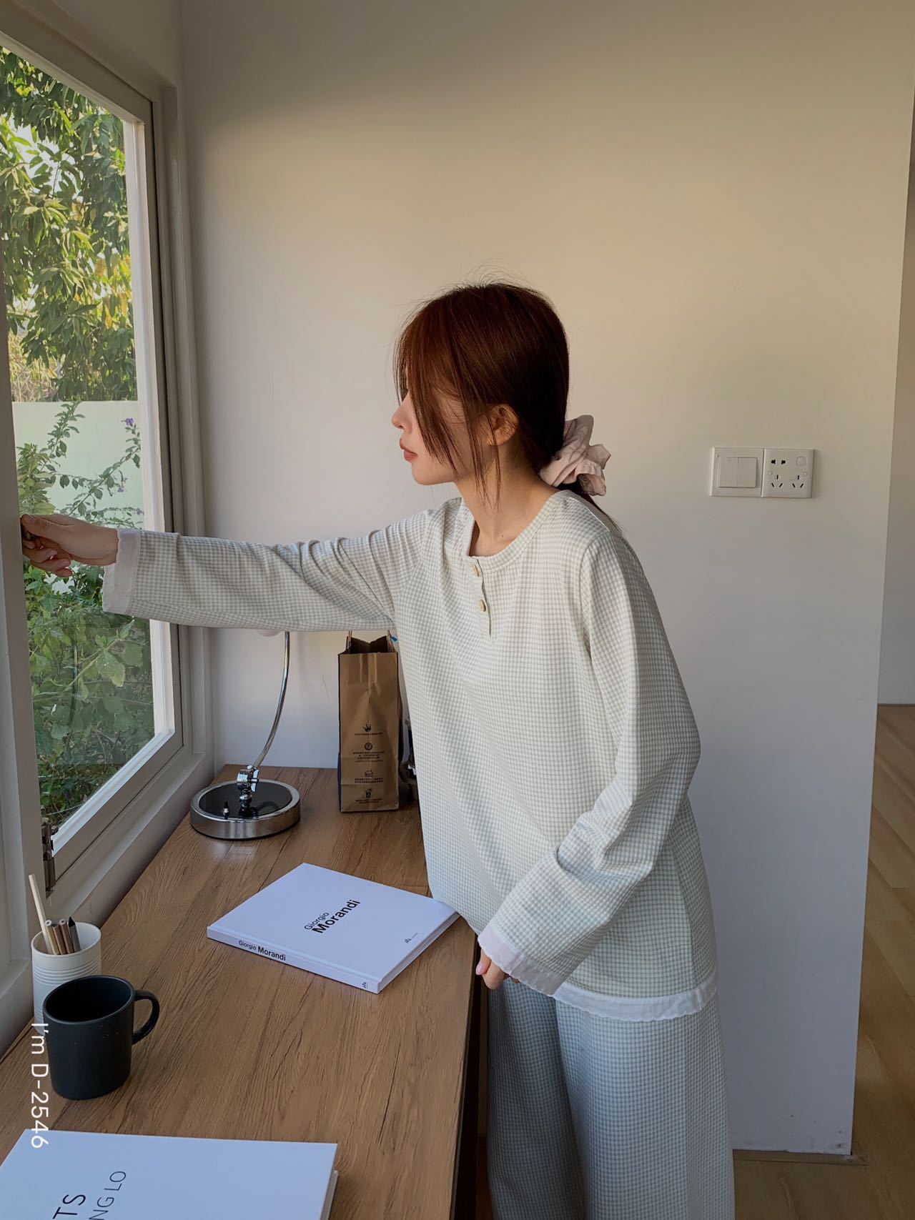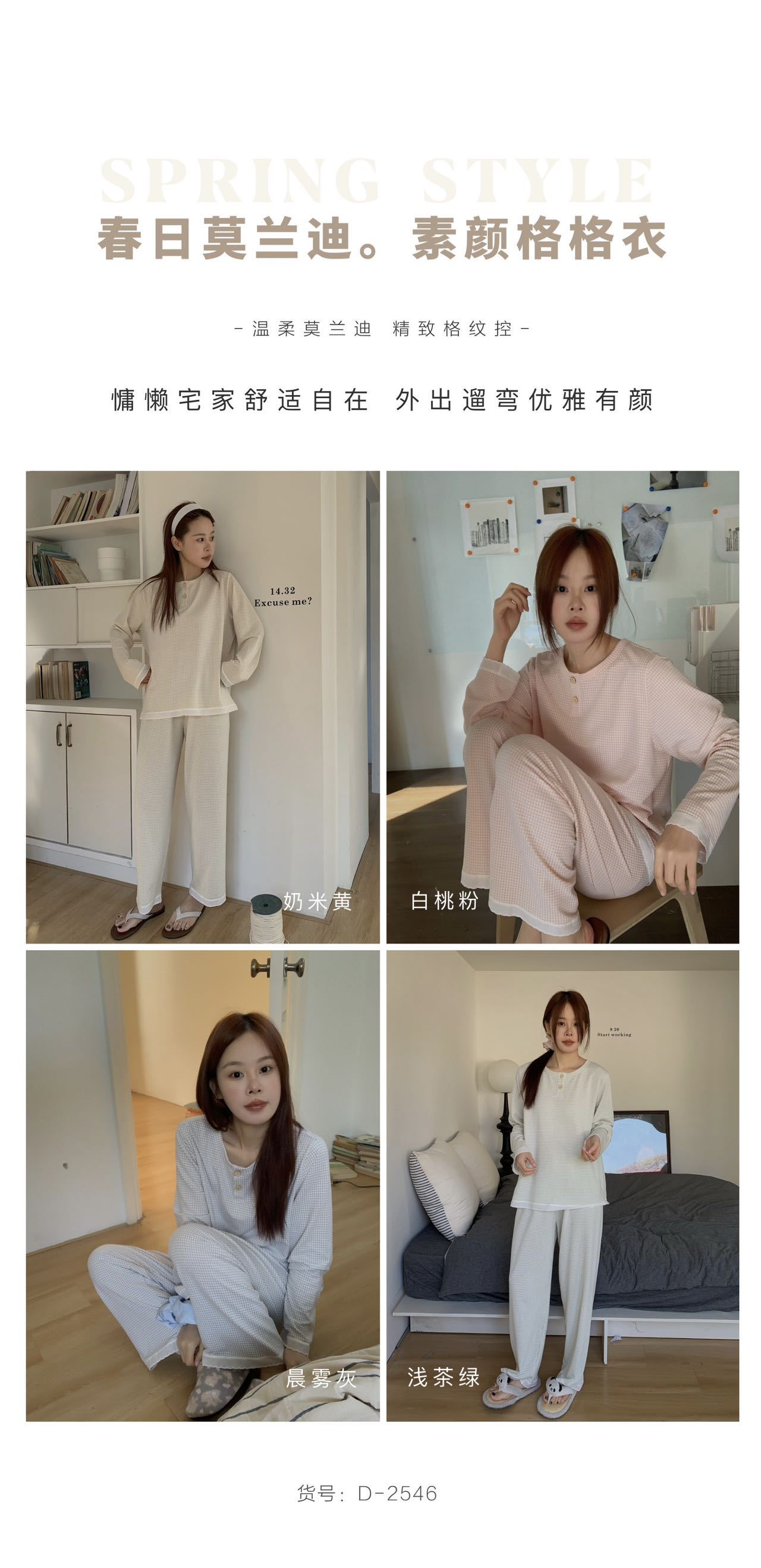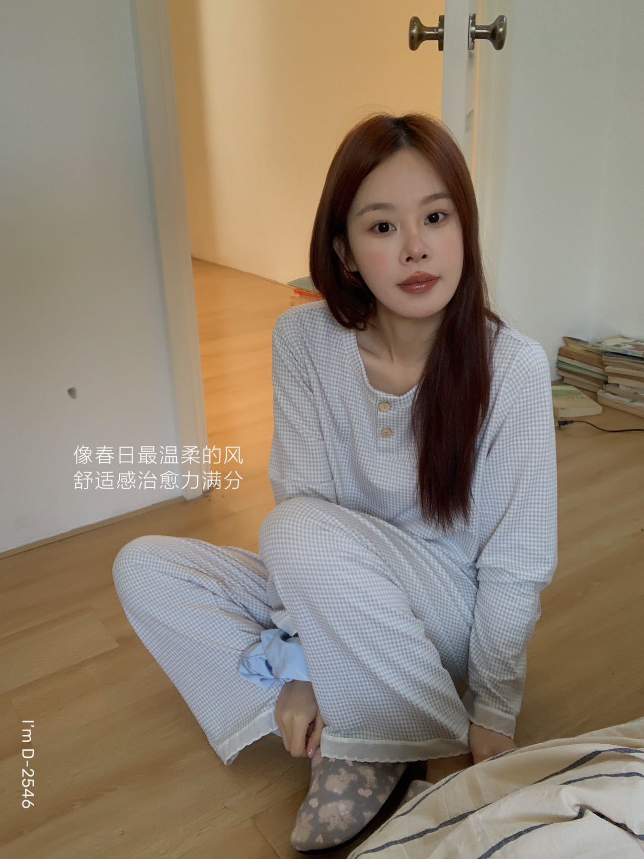 【春日莫兰迪】2025新款素颜格格衣长袖家居服 180g针织棉宽松慵懒休闲两件套装睡衣