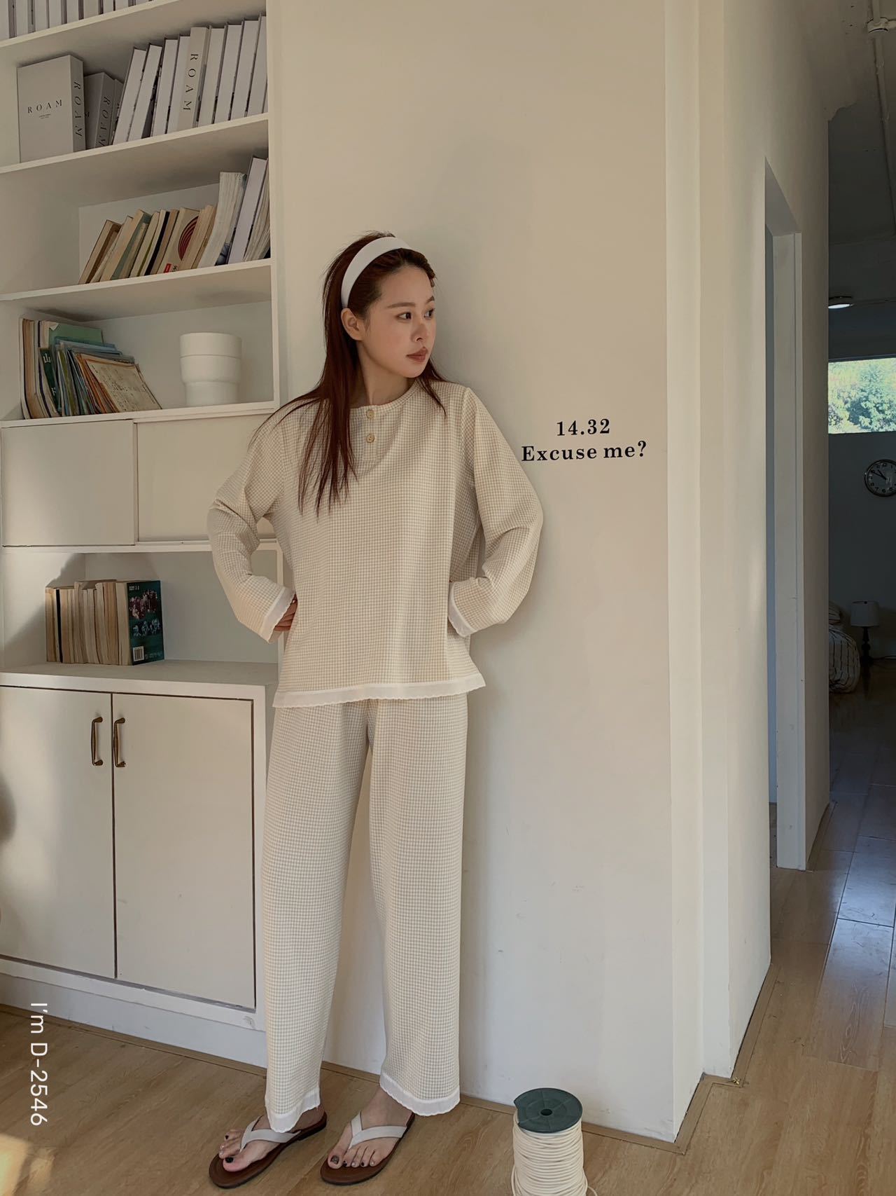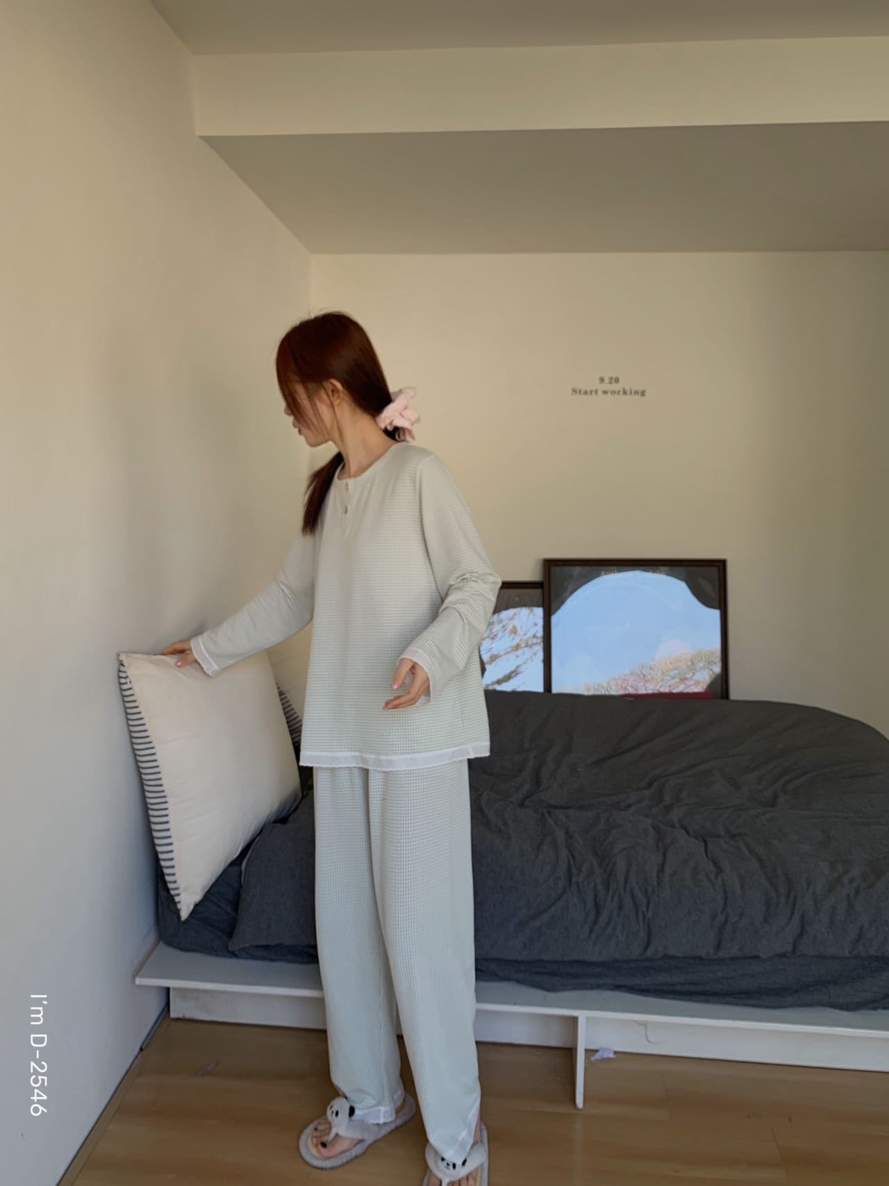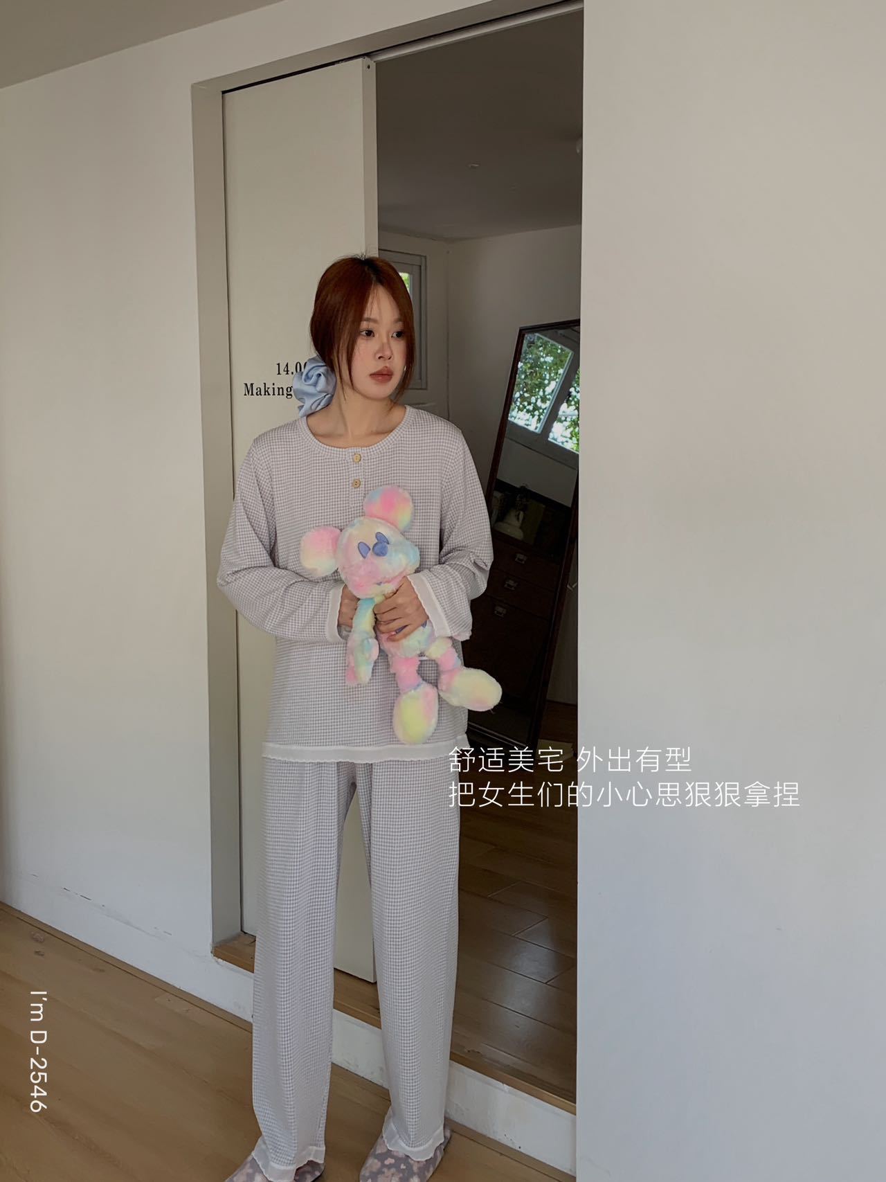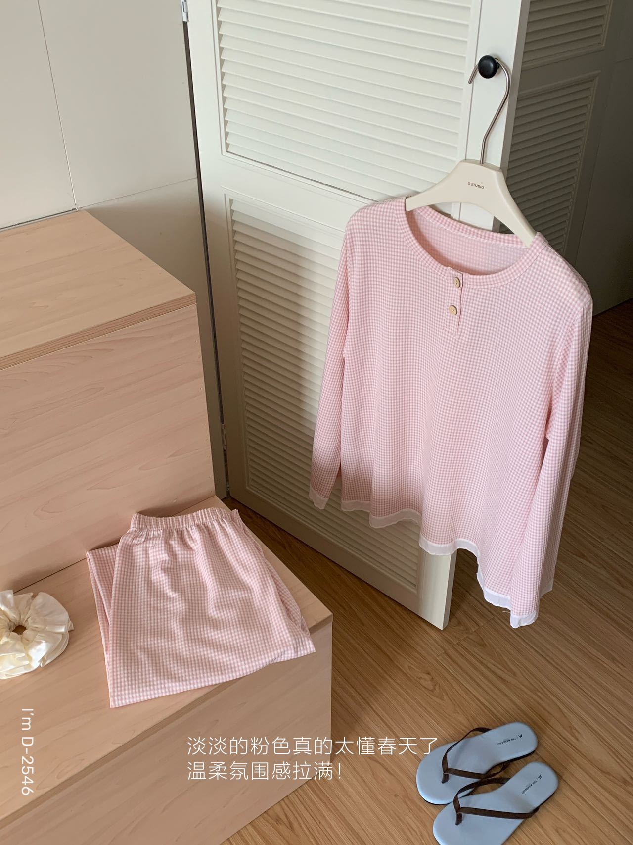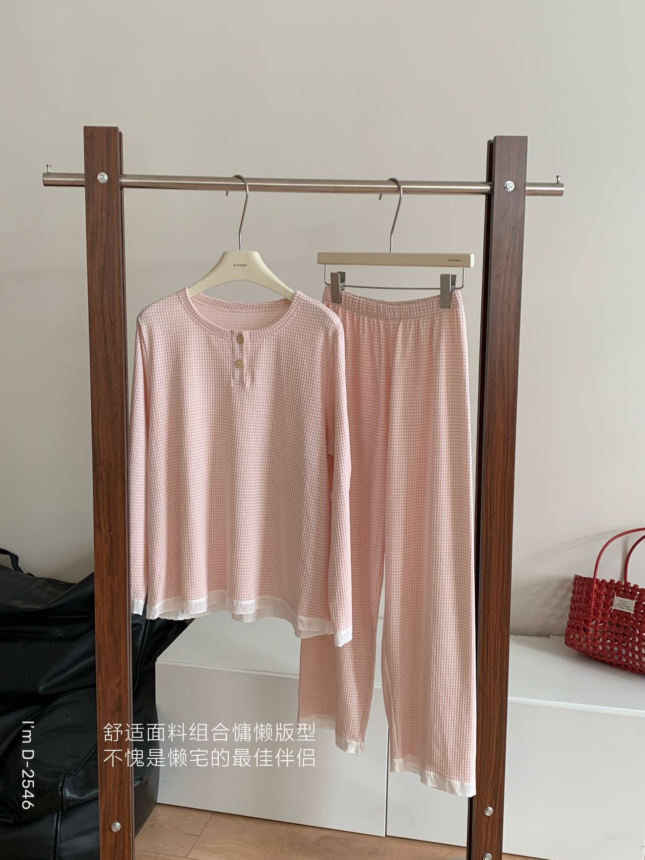 【春日莫兰迪】2025新款素颜格格衣长袖家居服 180g针织棉宽松慵懒休闲两件套装睡衣