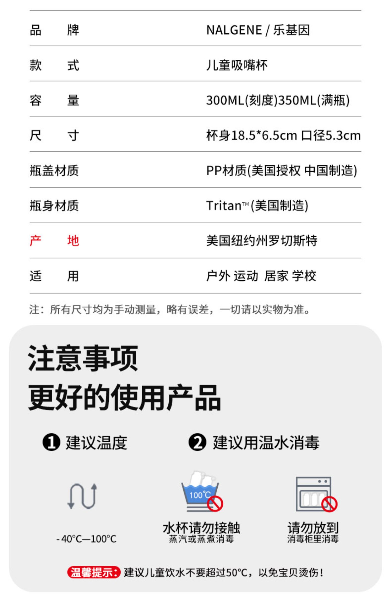 nalgene美国进口宝宝水杯 吸管杯防漏防呛可爱水壶婴幼儿防摔杯子