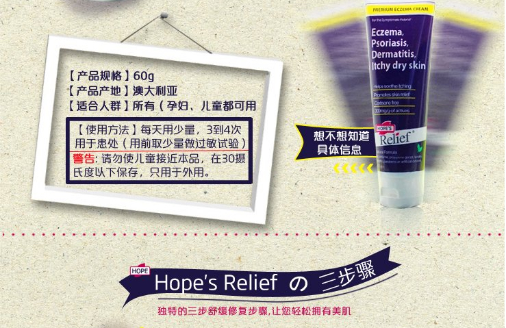 【现货】新包装澳洲 Relief hopes皮炎湿疹牛皮癣特效膏60g 舒缓止痒 120圆通包邮