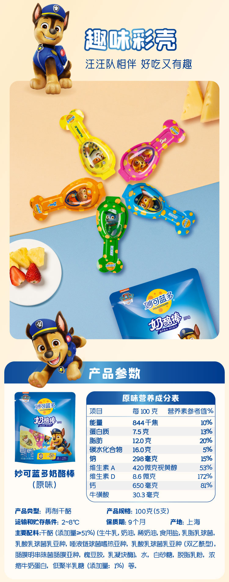 妙可蓝多奶酪棒原味100g,保质期9个月