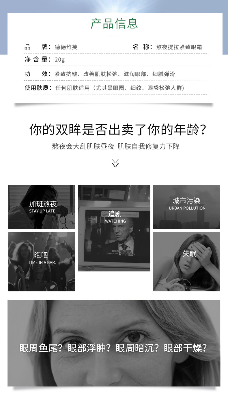 【眼 霜】德德维芙熬夜修护眼霜去脂肪粒淡化黑眼圈细纹提拉紧致 熬夜眼霜 美妆个护