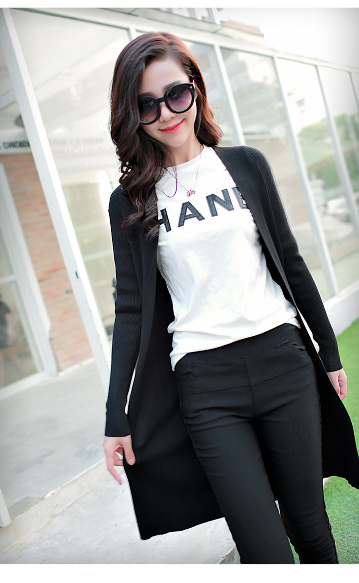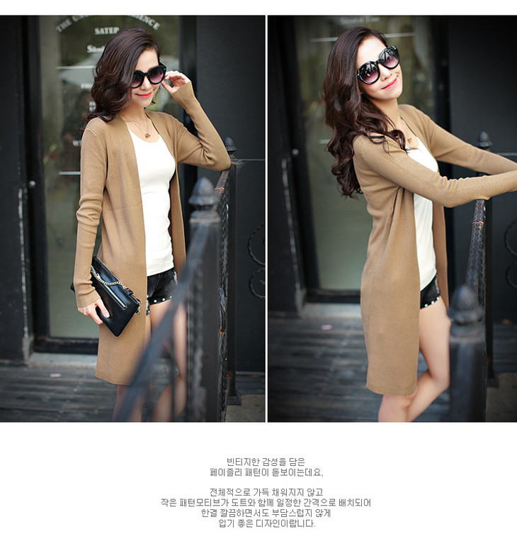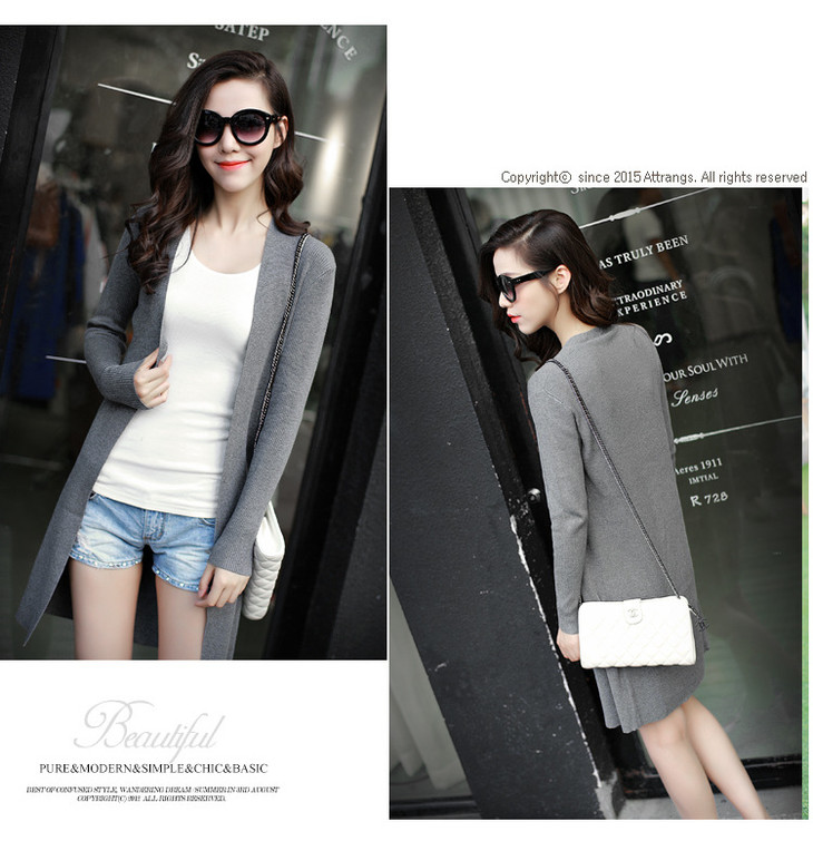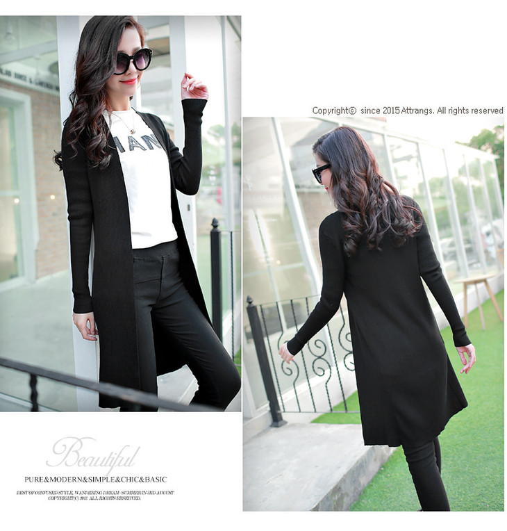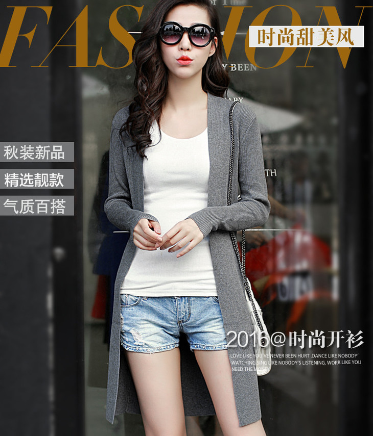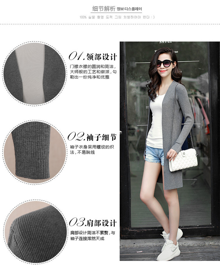 【外套女】秋季女装新品纯色修身百搭针织衫开衫长款长袖外搭女式外套