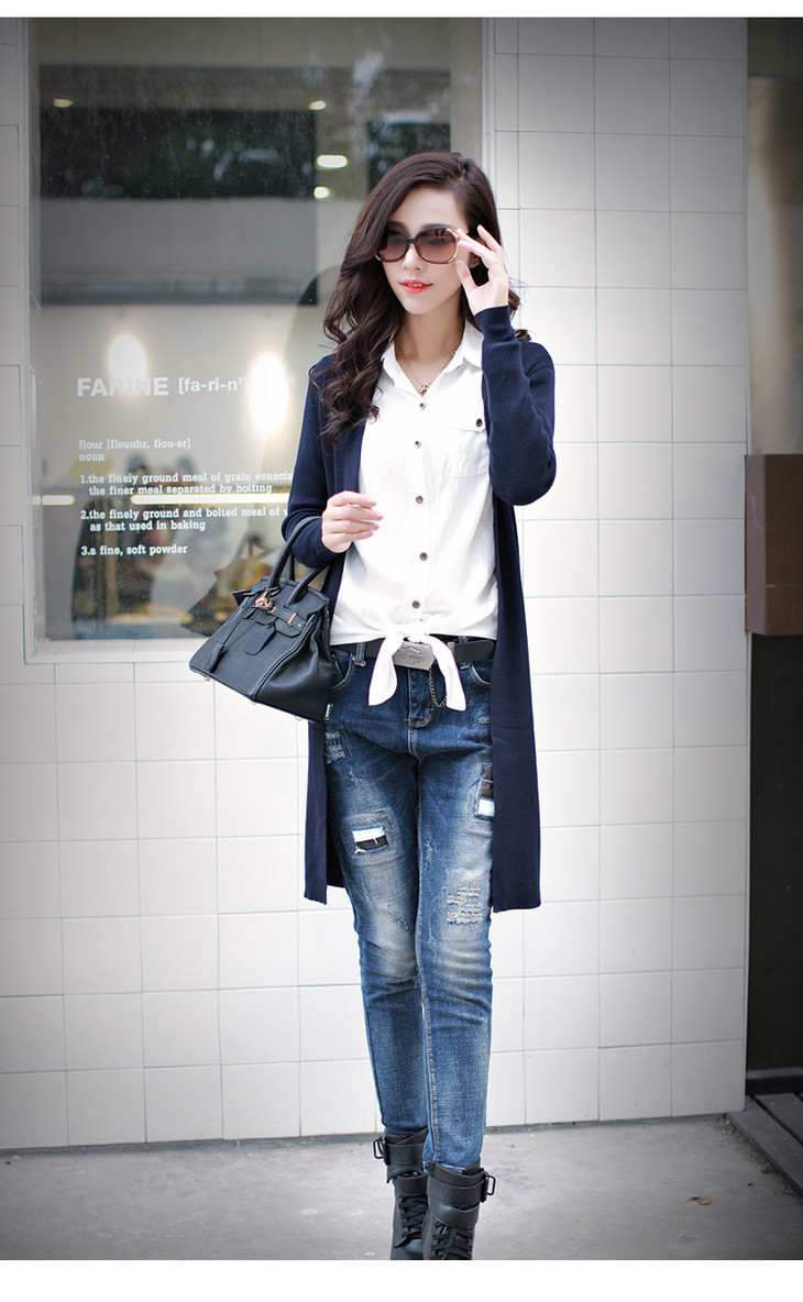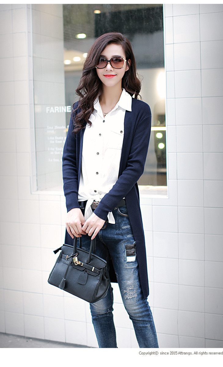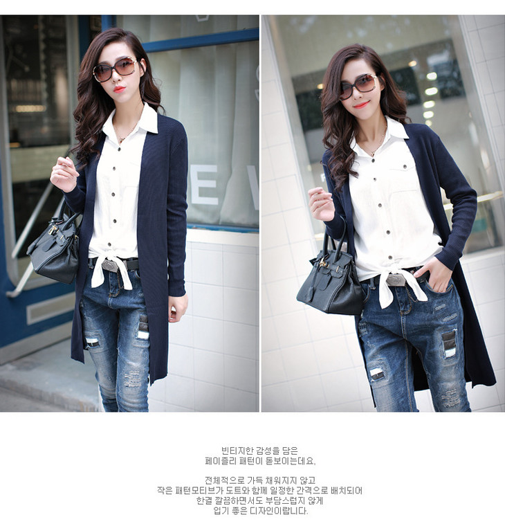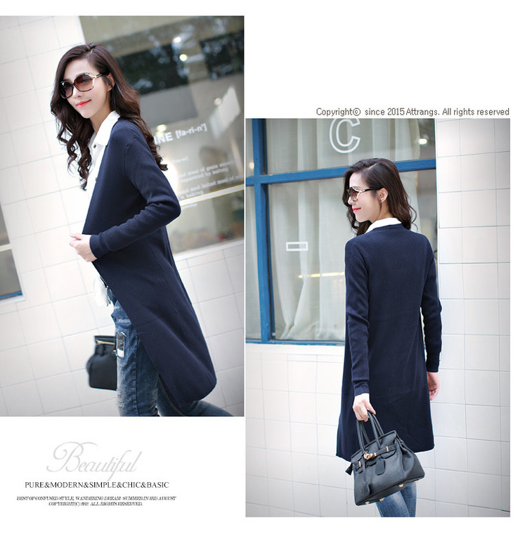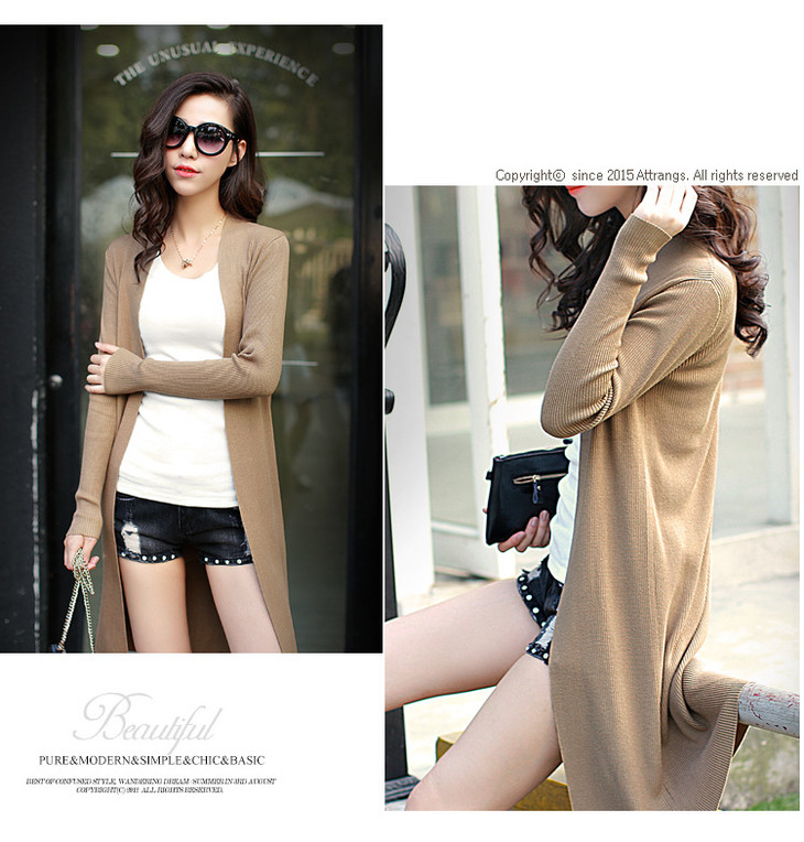 【外套女】秋季女装新品纯色修身百搭针织衫开衫长款长袖外搭女式外套