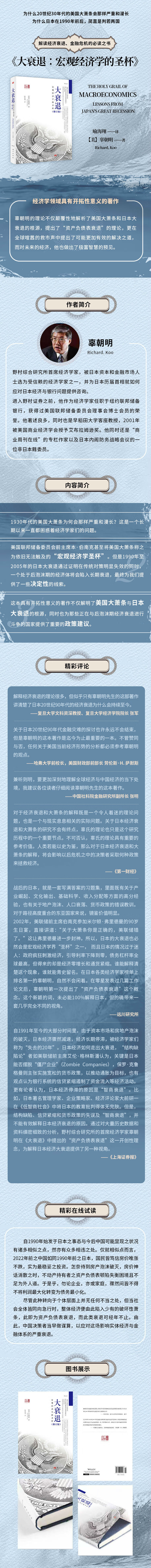 辜朝明的理论不仅颠覆性地解析了美国大萧条和日本大衰退的根源,提出了“资产负债表衰退”的理论,更在全球喧嚣的救市声中提出了可能更加有效的解决之道,而对未来的经济,他也做出了极富智慧的预见。本书是解读经济衰退、金融危机的必读之书,众多经济学家提及经济衰退,必提及本书。