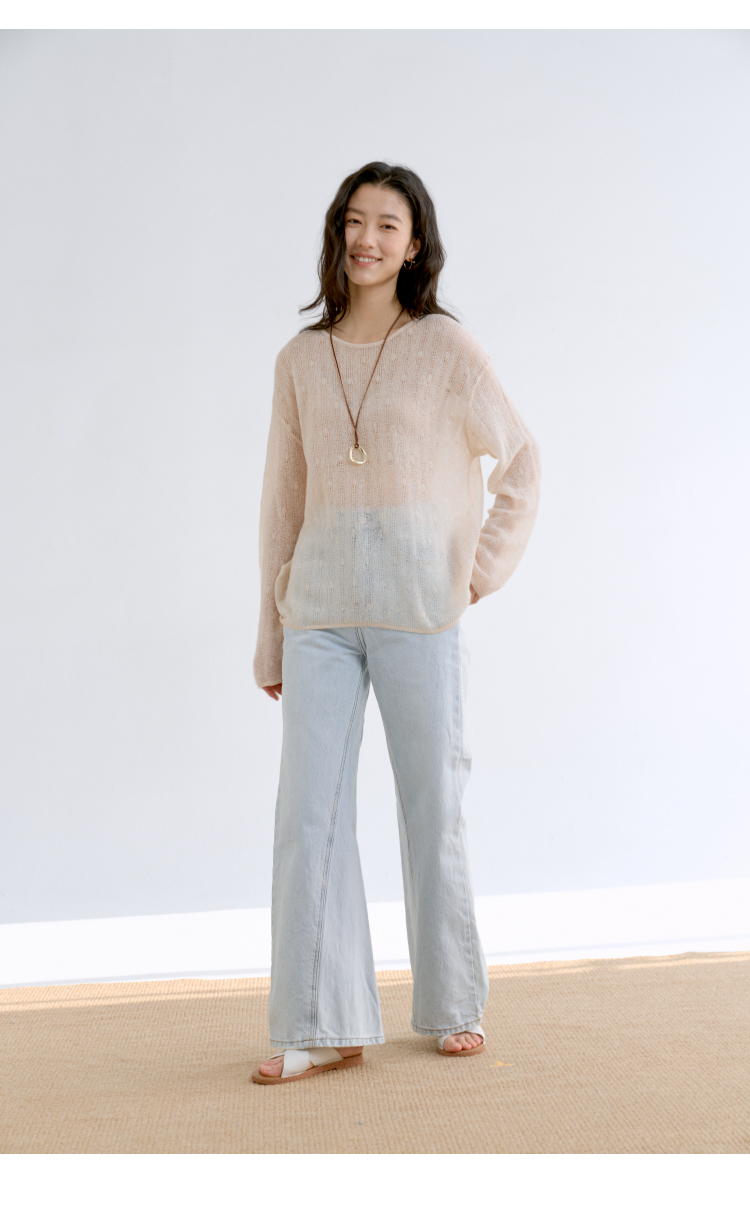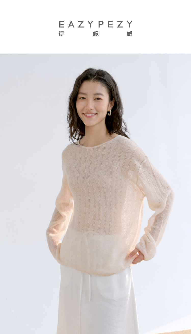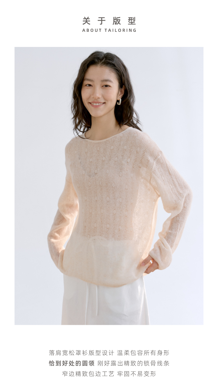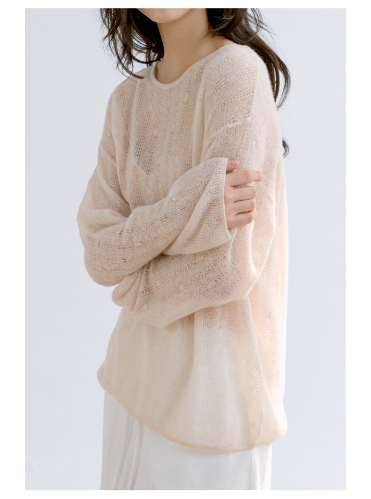 云雾·牦牛绒羊毛镂空长袖针织罩衫