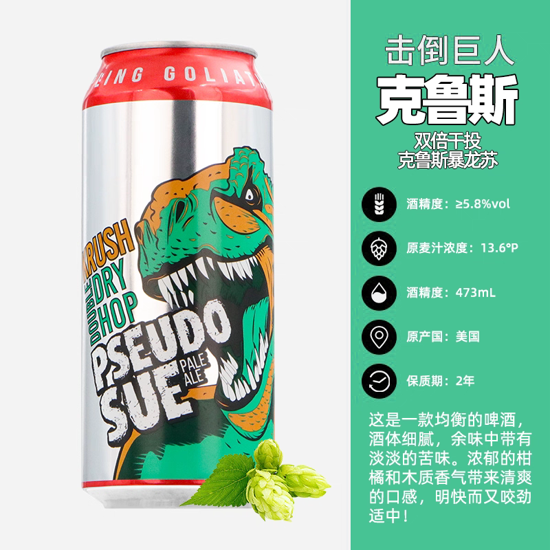 【冷库储存】美国击倒巨人DDH双倍干投克鲁斯暴龙苏浑浊IPA啤酒 5.8%vol 473ml