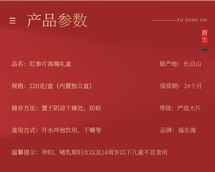 福东海 长白山红参220克/瓶送礼礼盒