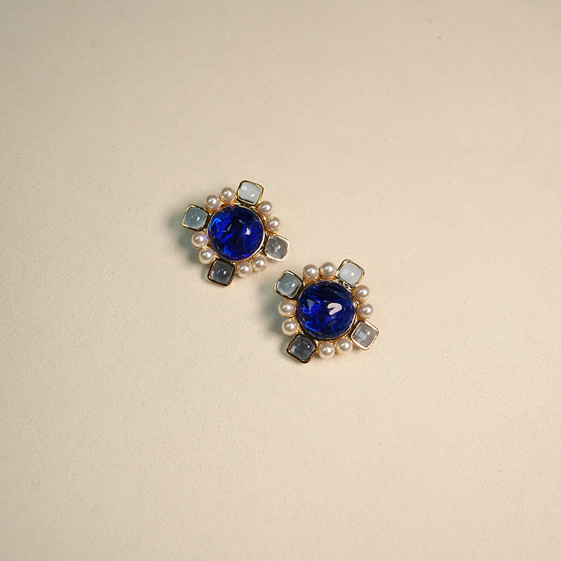 北京仓|Gripoix Paris-Byzantium-蓝色 琉璃 耳夹(无需耳洞)[法国设计师]