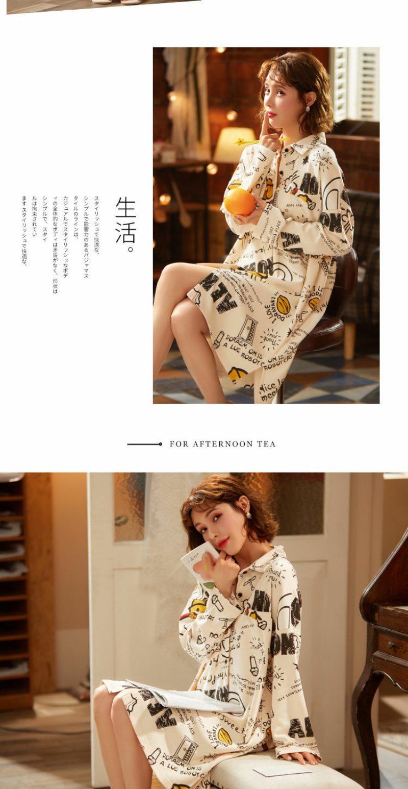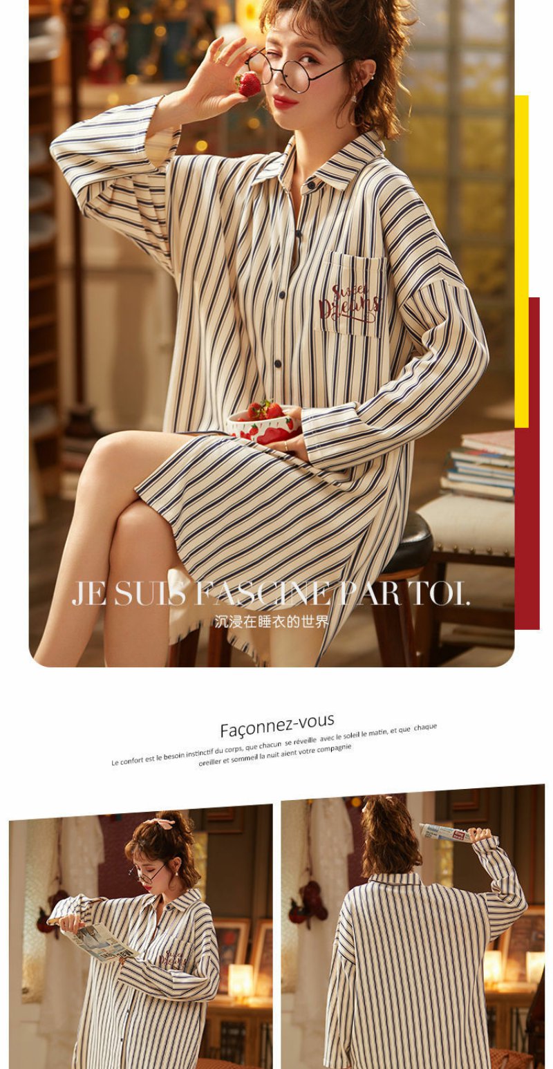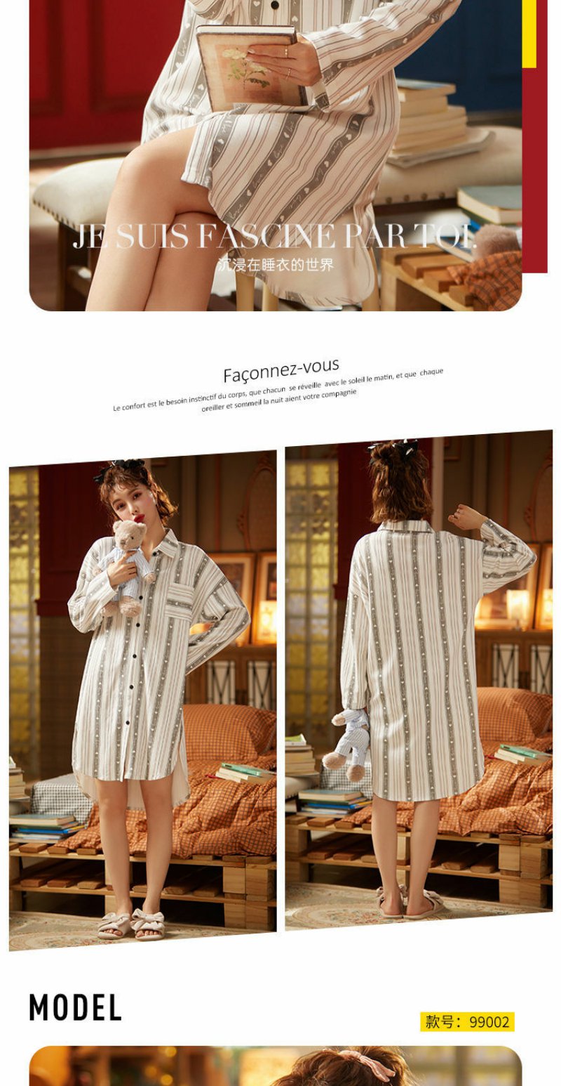 衬衫睡裙女春秋季纯棉长袖韩版开衫连衣裙秋冬长款性感宽松家居服