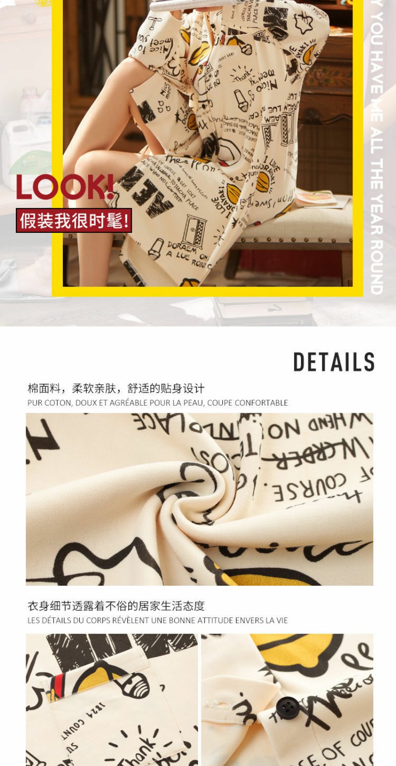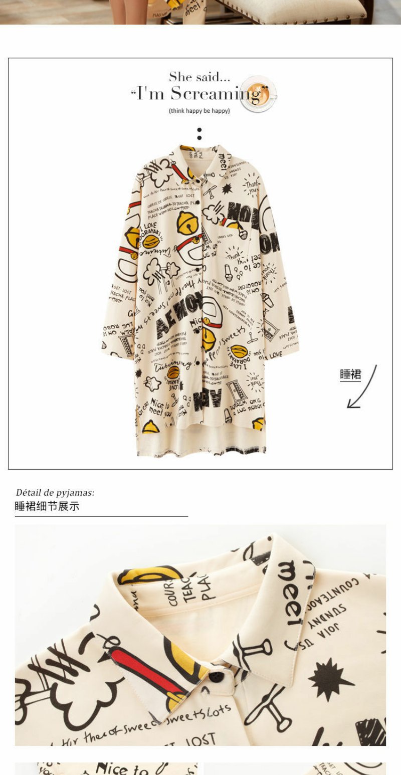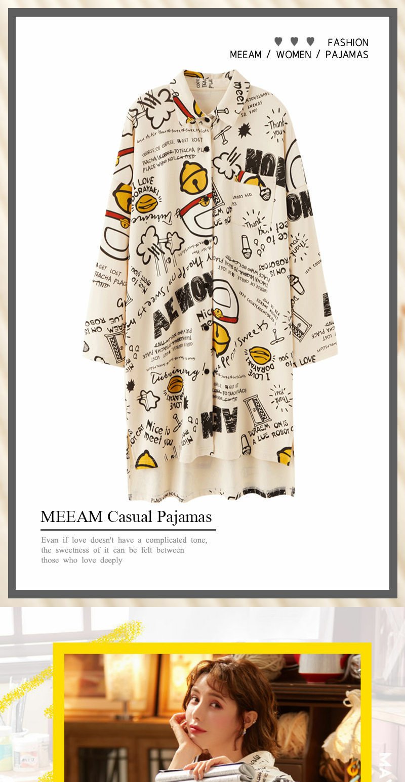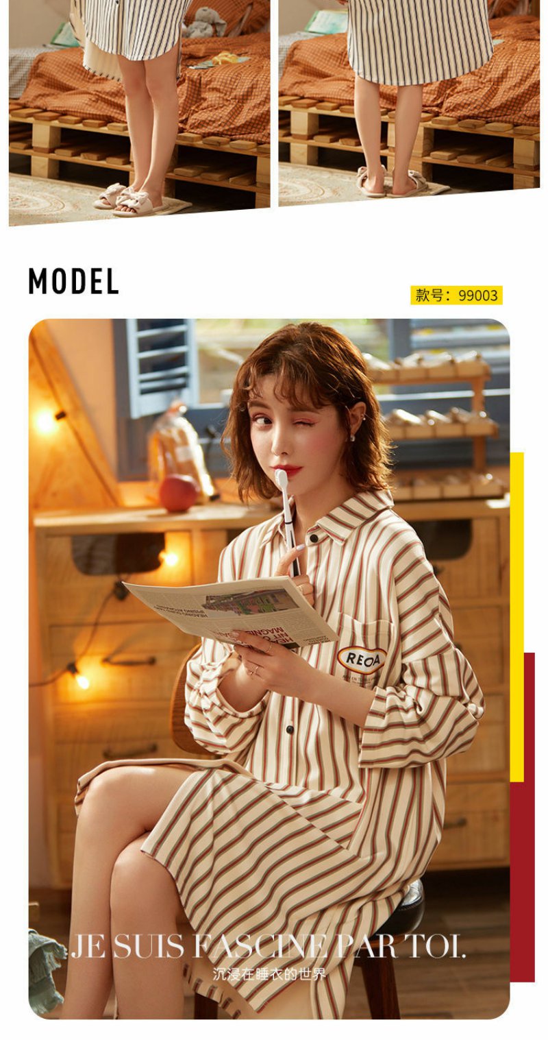 衬衫睡裙女春秋季纯棉长袖韩版开衫连衣裙秋冬长款性感宽松家居服