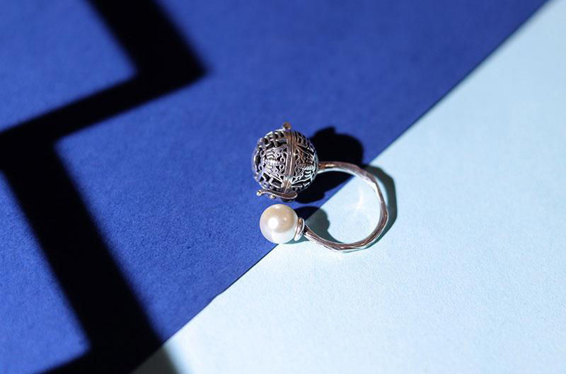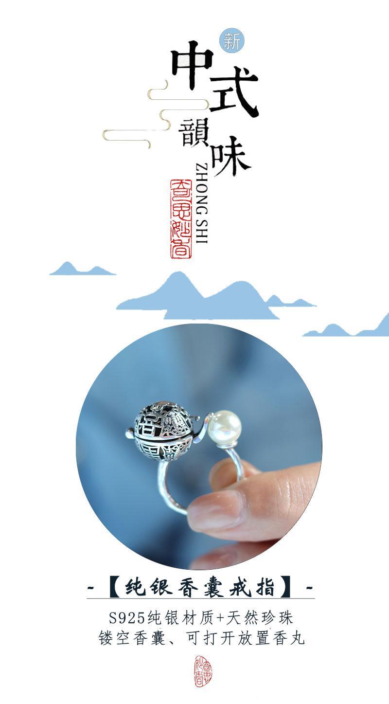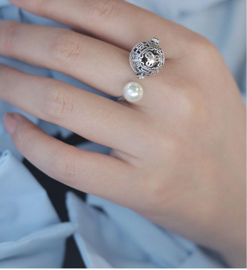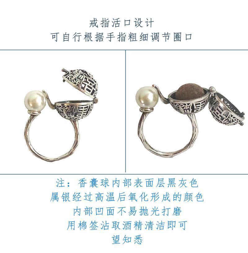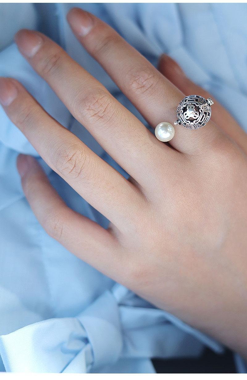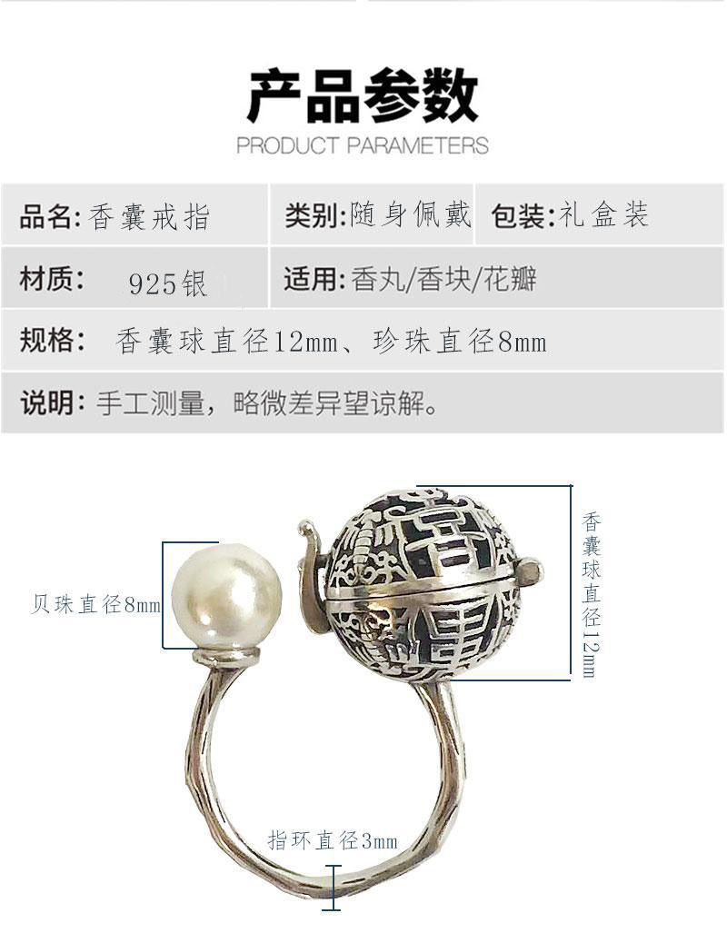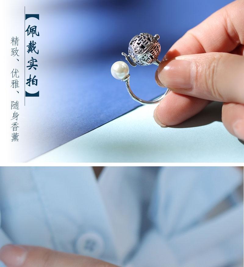S925香囊球珍珠戒指镂空随身佩戴香丸球持久淡香可打开香球