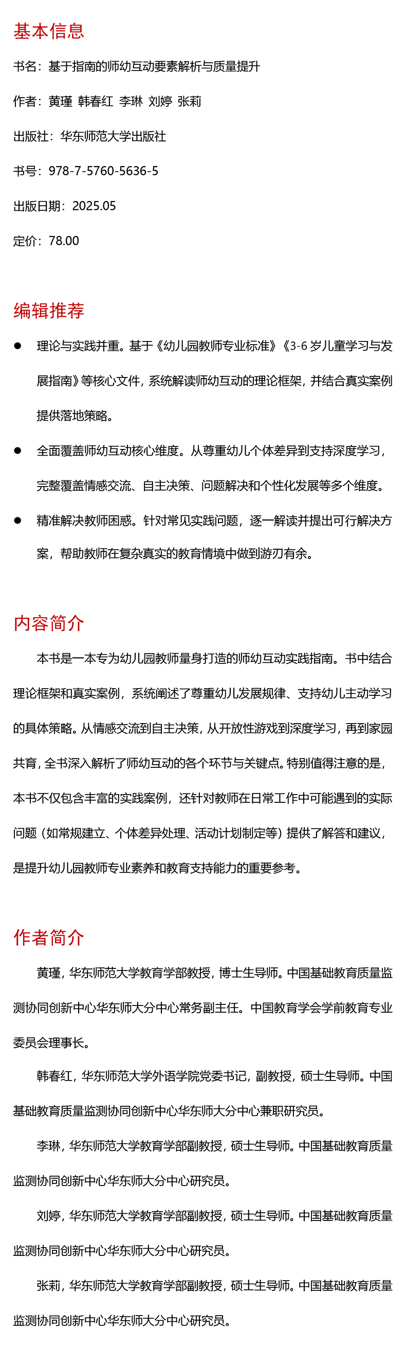 基于指南的师幼互动要素解析与质量提升 师幼互动实践指南 幼儿发展 幼儿教师教育