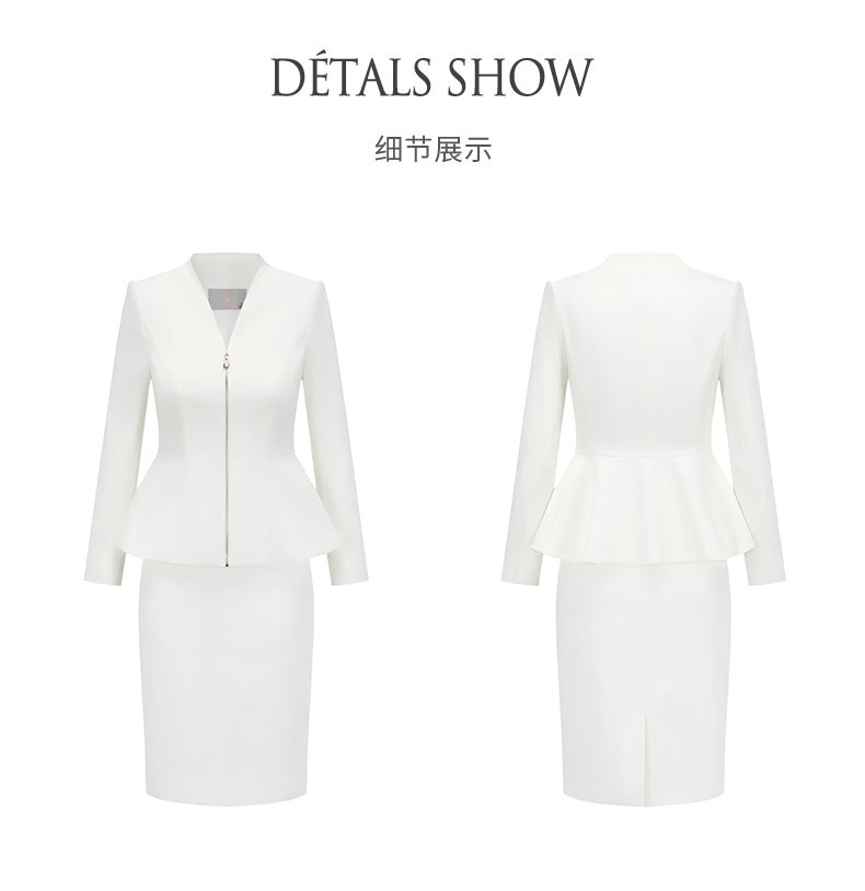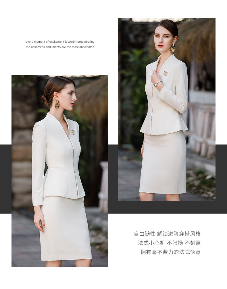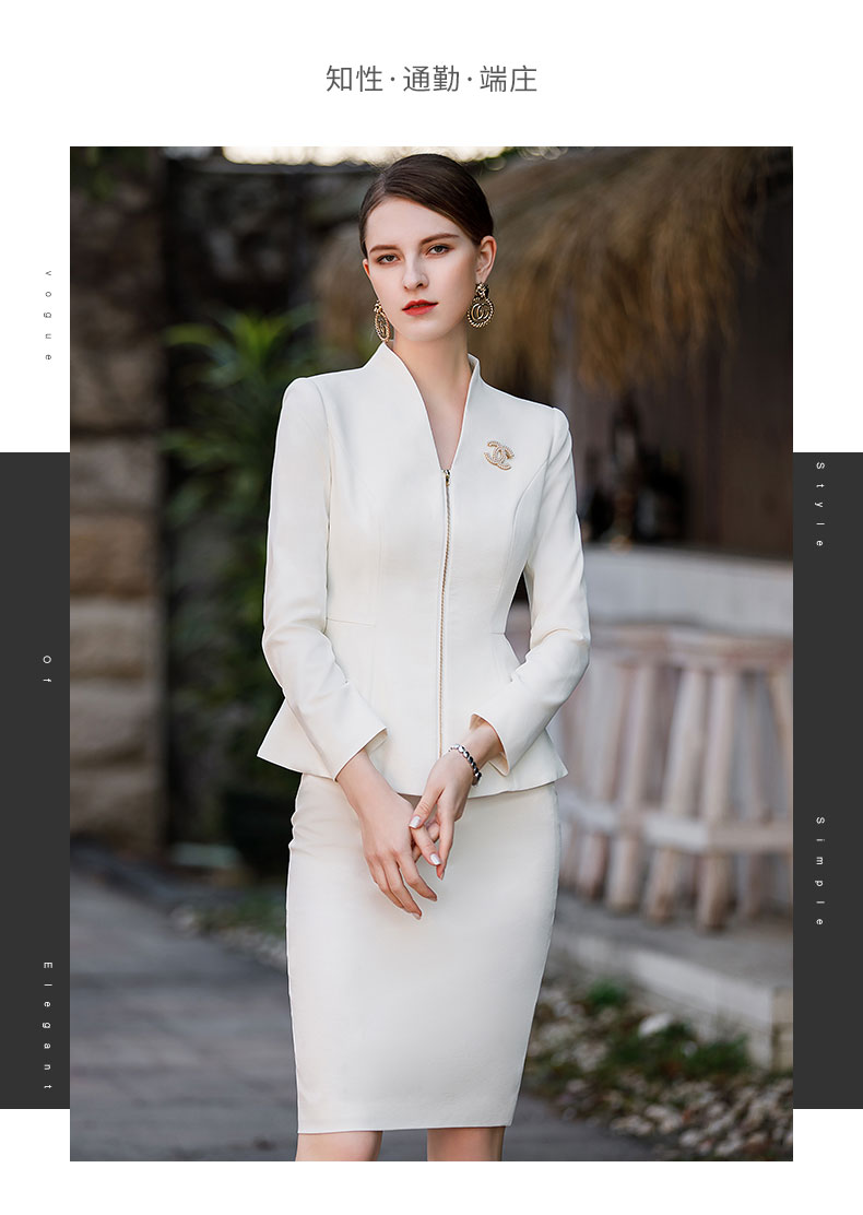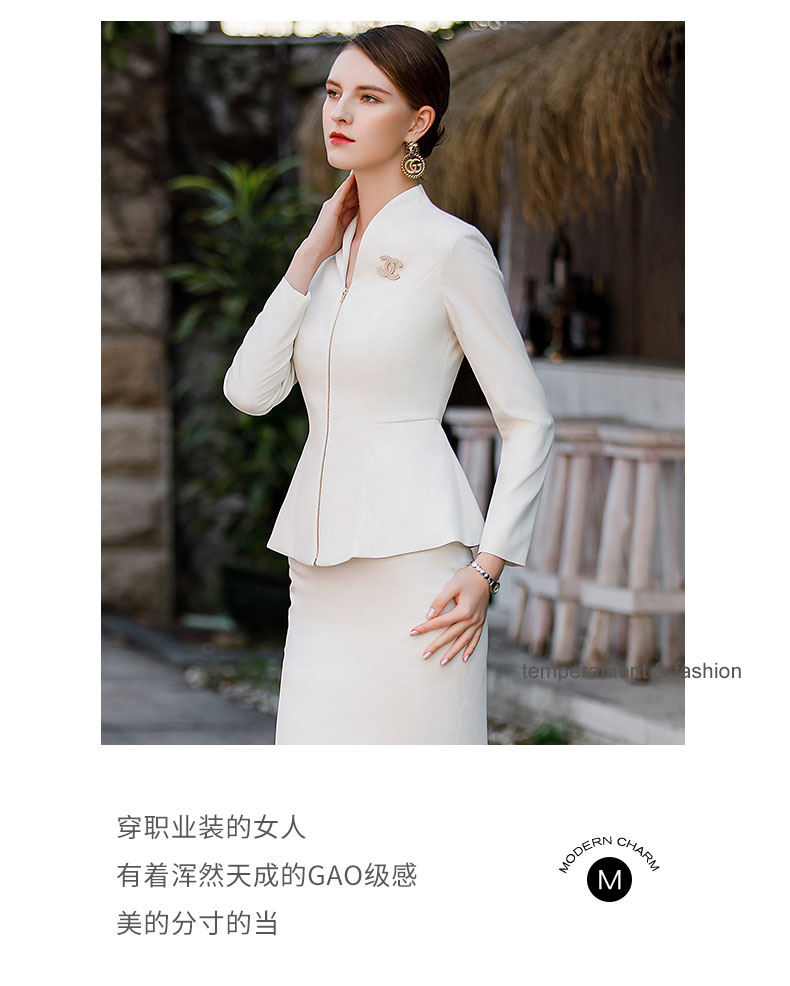 AD职业气质工作服女2023春款高级感拉链无领西装套装商务接待工装