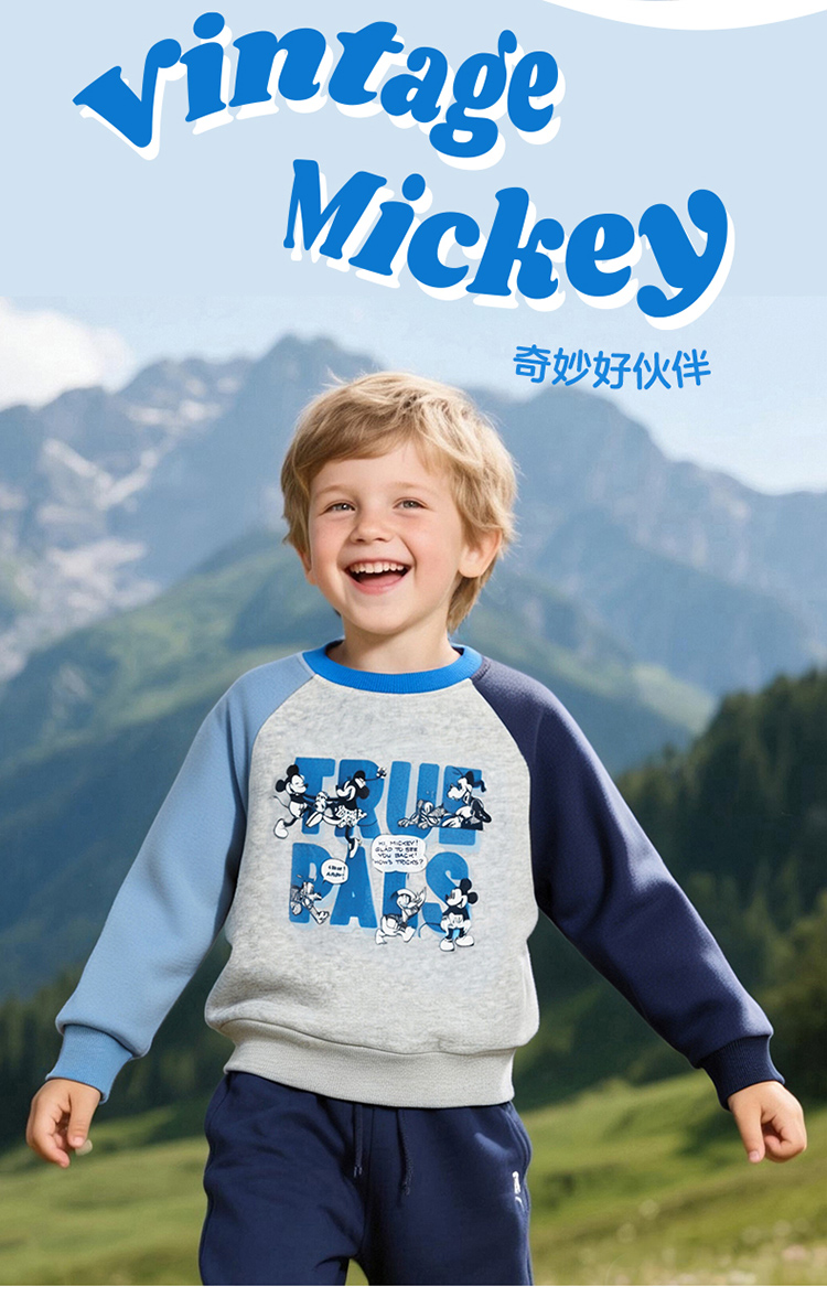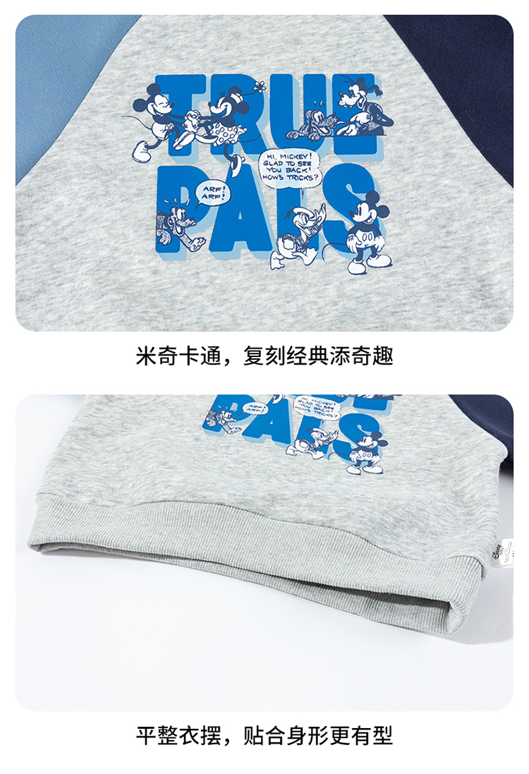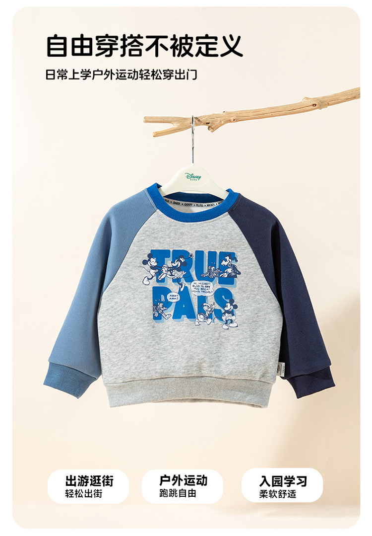 迪士尼2025春秋新款男童卫衣活力撞色插肩袖上衣中小童运动休闲卫衣ZD3ES019*