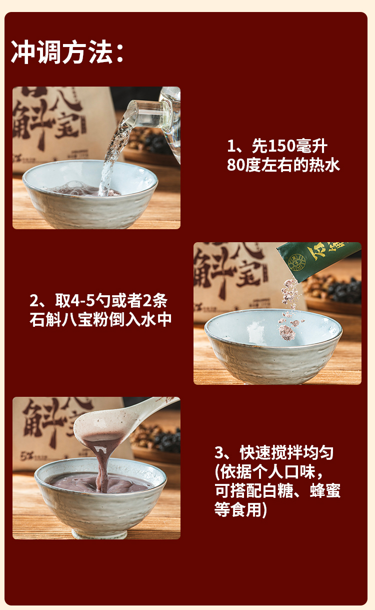2.冲泡后有粘稠结块现象属于正常,搅拌均匀即可食用。