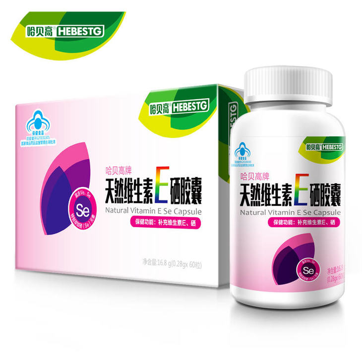 哈贝高牌天然维生素E硒胶囊 0.28g/粒*60粒 买2送1同款