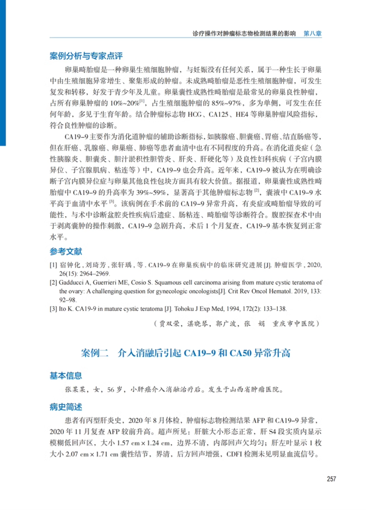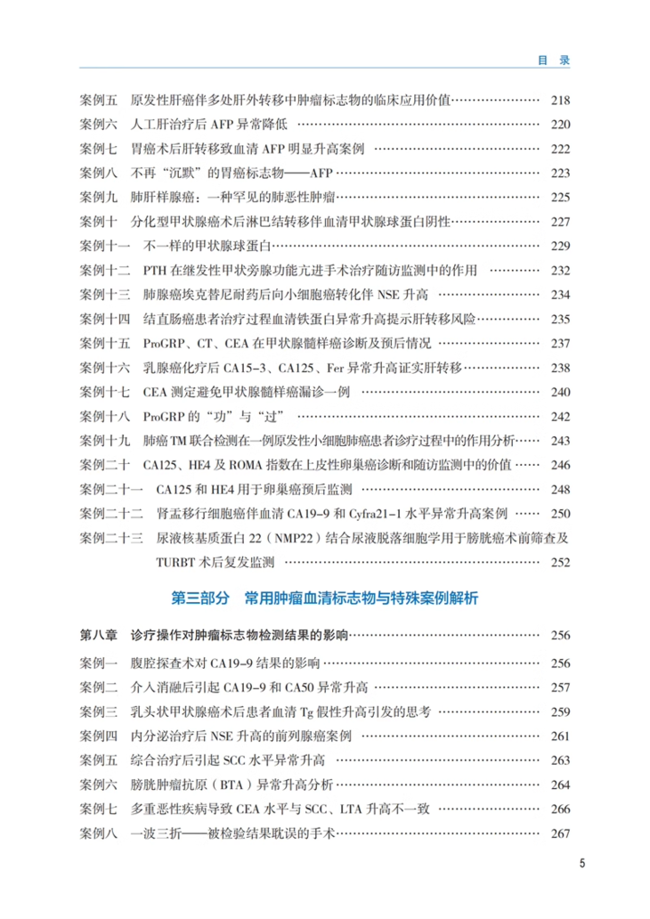 肿瘤标志物对肿瘤的早期诊断、病情进展、疗效监测及预后评估具有重要价值。本书精选全国范围内肿瘤标志物临床实践案例270例,旨在通过对真实案例的收集,给检验医师和临床医生更多参考,帮助他们在临床工作中排除各种因素对肿瘤标志物结果的影响,减少临床误判误诊率,指导检验师与临床工作者做出正确的病情分析。