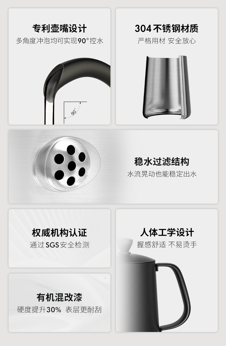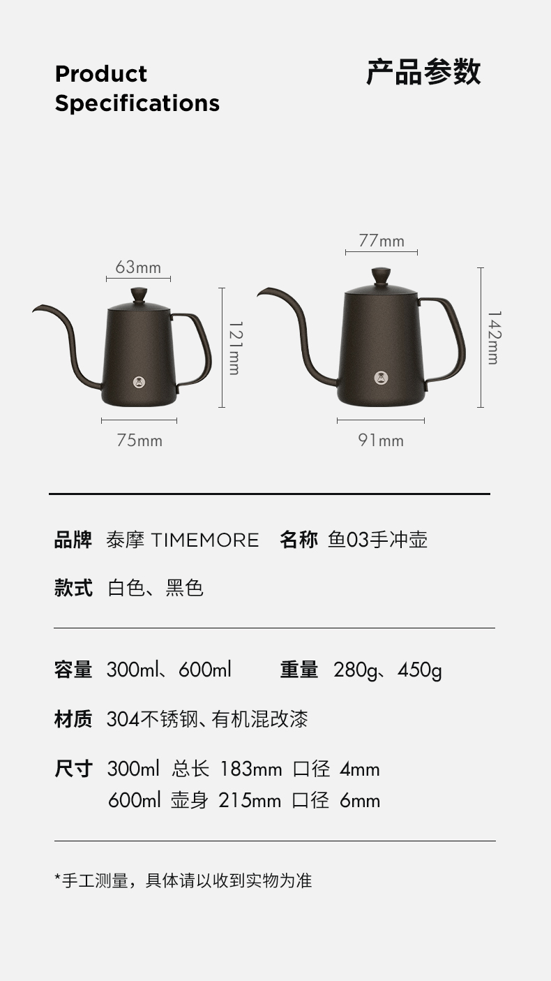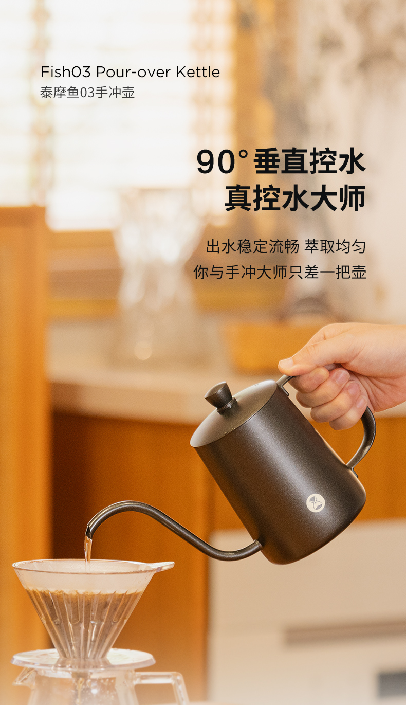 泰摩 鱼三手冲壶 鱼3挂耳冲泡壶 304不锈钢滴漏式家用长嘴咖啡壶