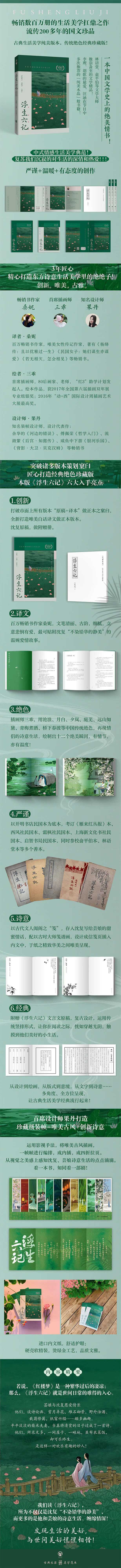 《浮生六记》,薄薄一册,流动两百年,是清代文人沈复写的一本自传体散文,也是他写给妻子陈芸的绝美情书。其以真言述深情,浑然天成、独树一帜,而深受后世文人之推崇,自晚清至今,已流传一百余年,且成为古典生活美学之范本!