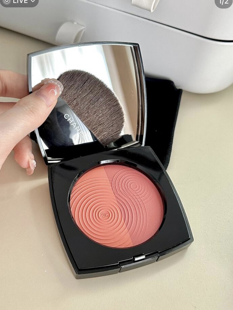 腮红表面饰以双C标志与波纹浮雕图案,仿若水花溅落后泛起的涟漪,致意海洋世界。