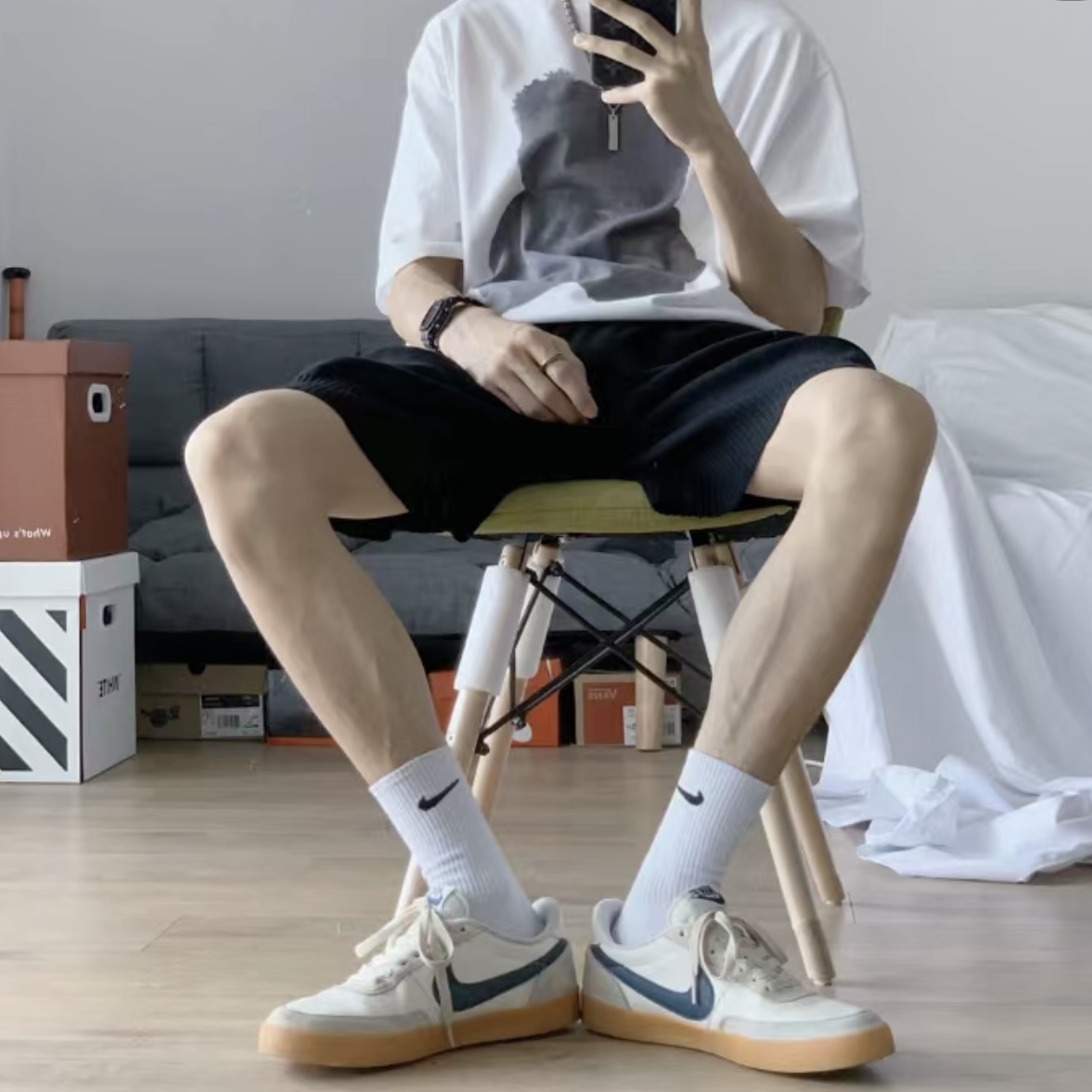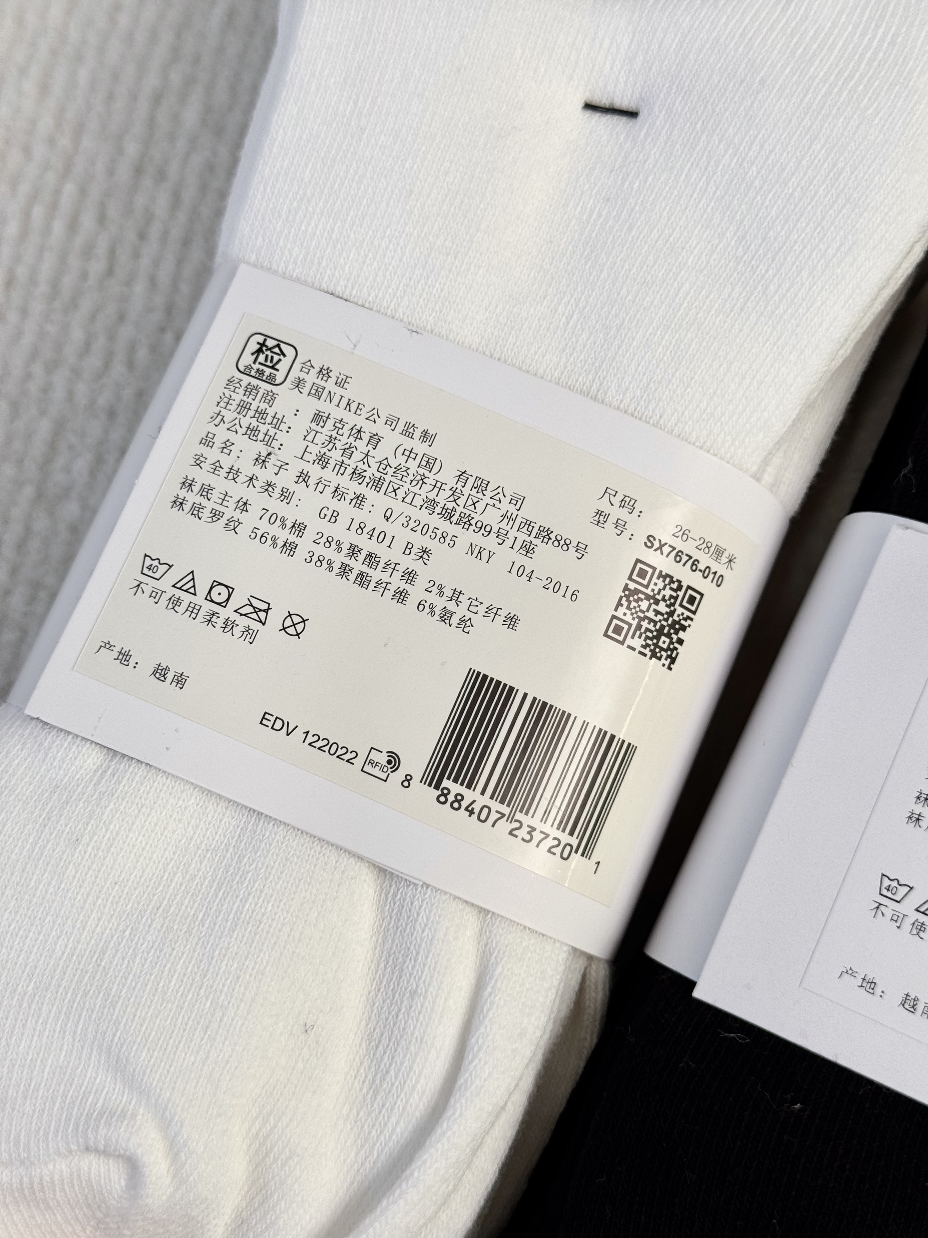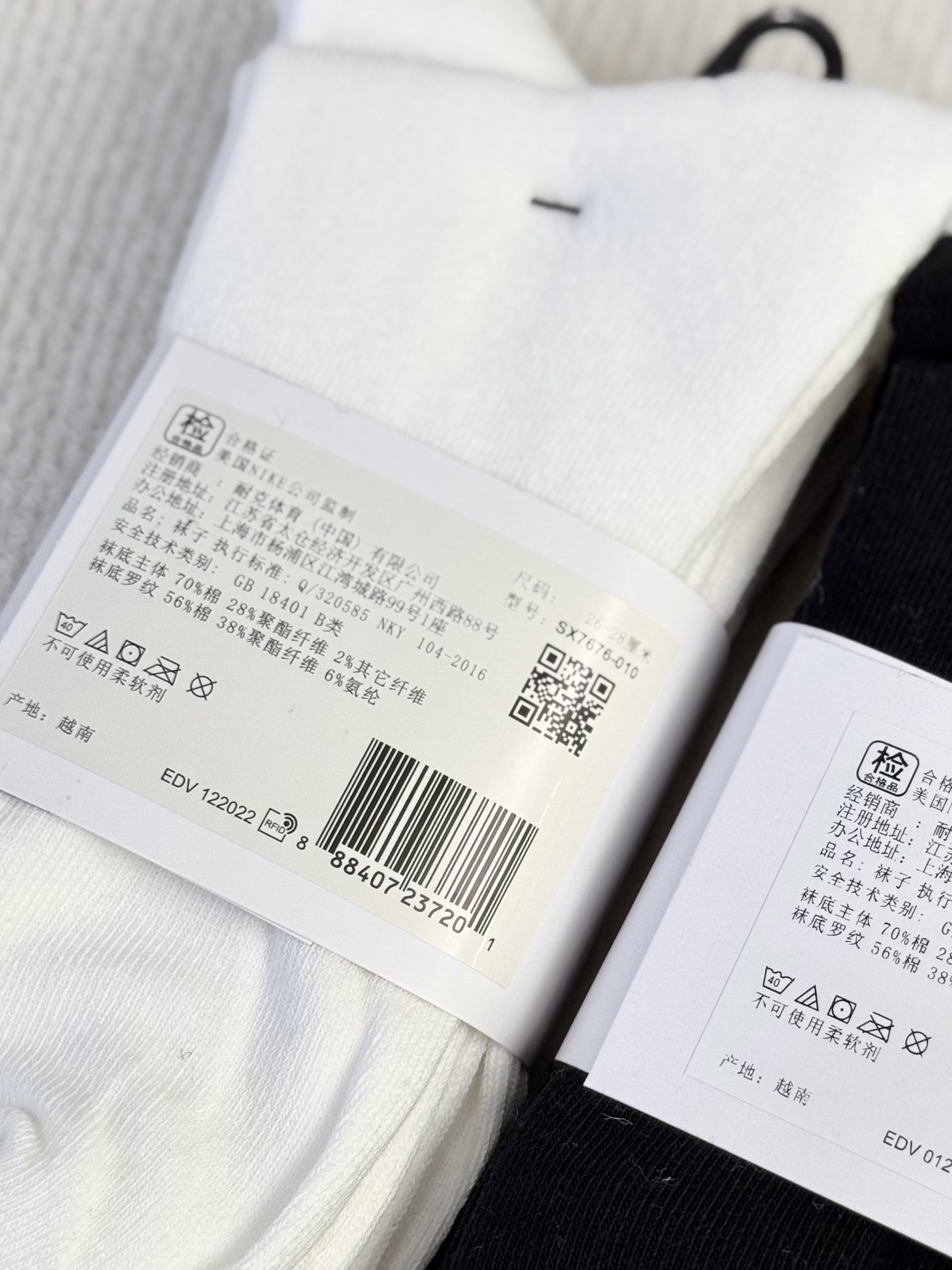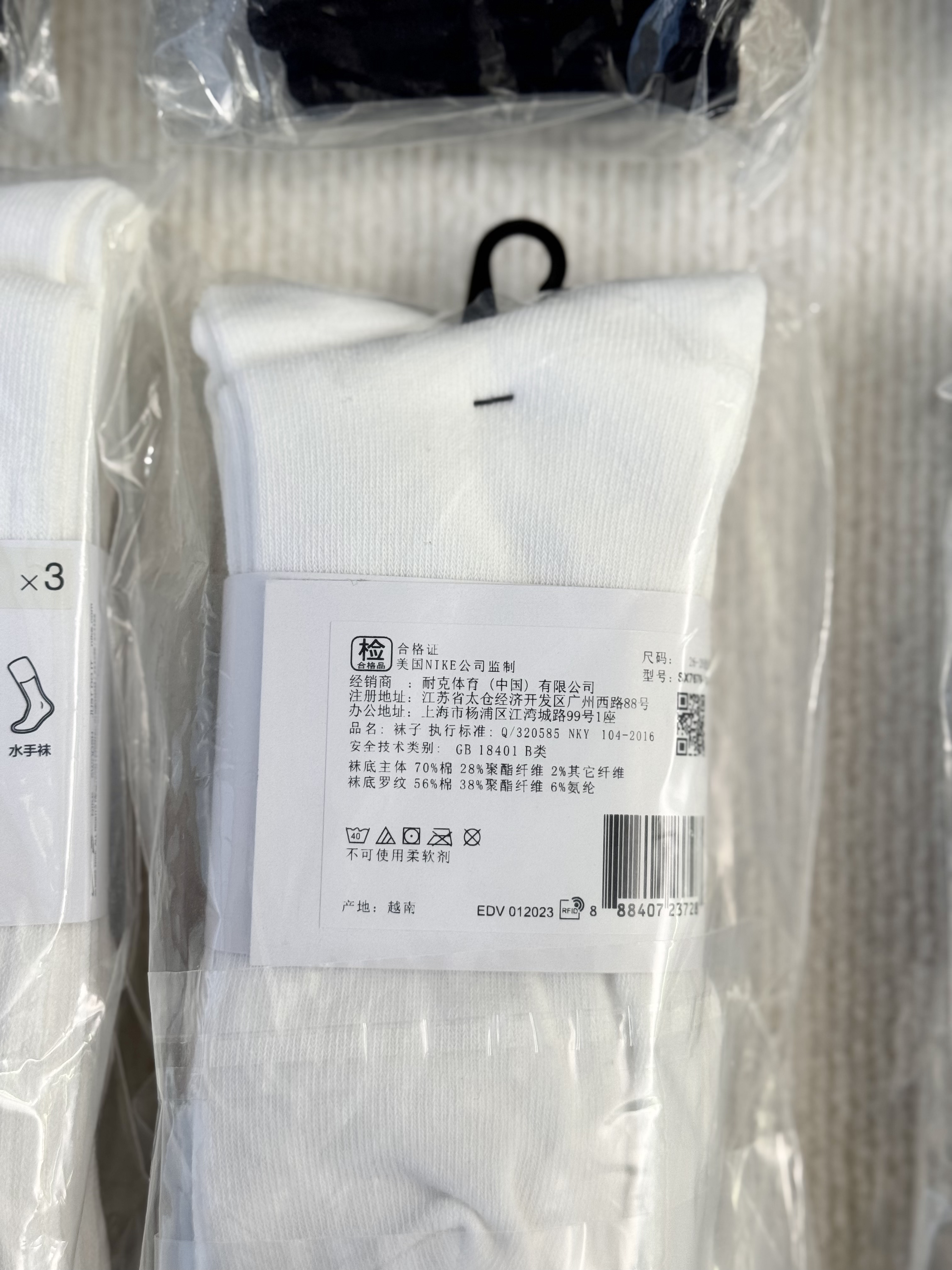一卡三双 越南产~nk棉质水手袜高帮袜长筒运动袜 经典简约百搭长筒袜袜子 水手袜
