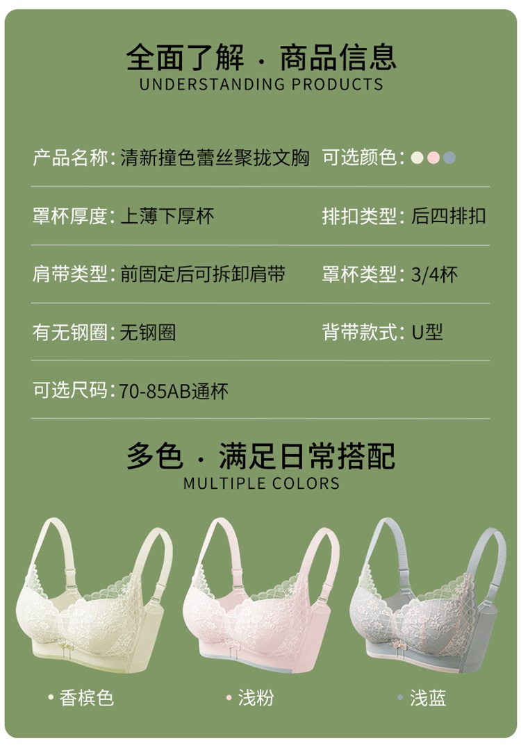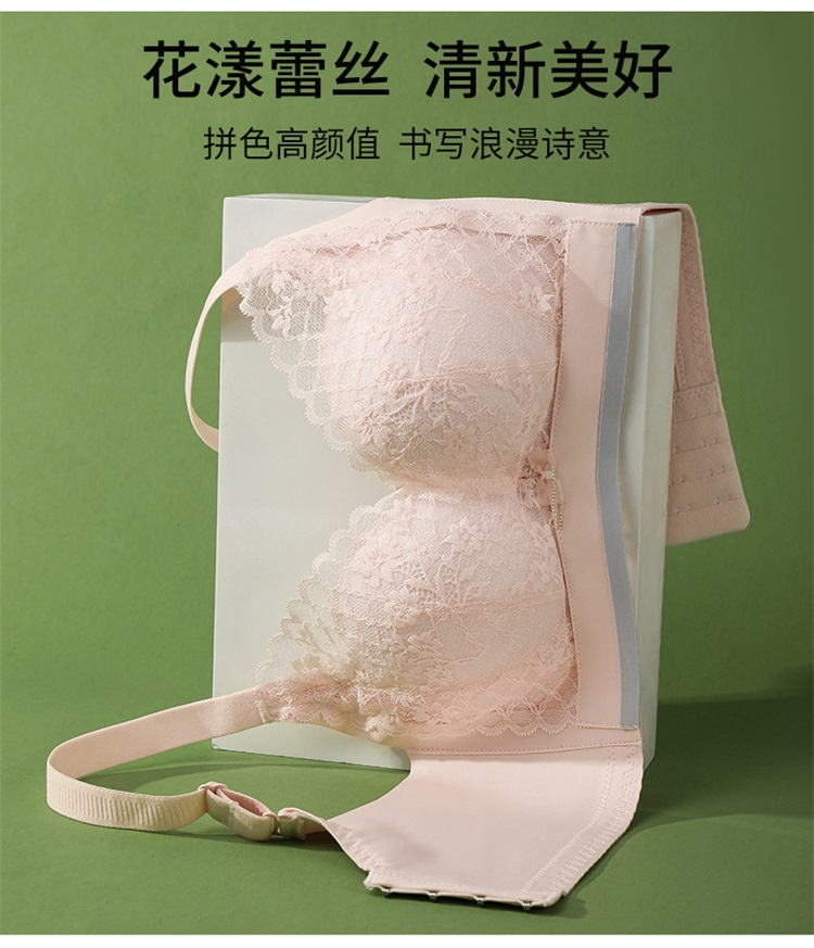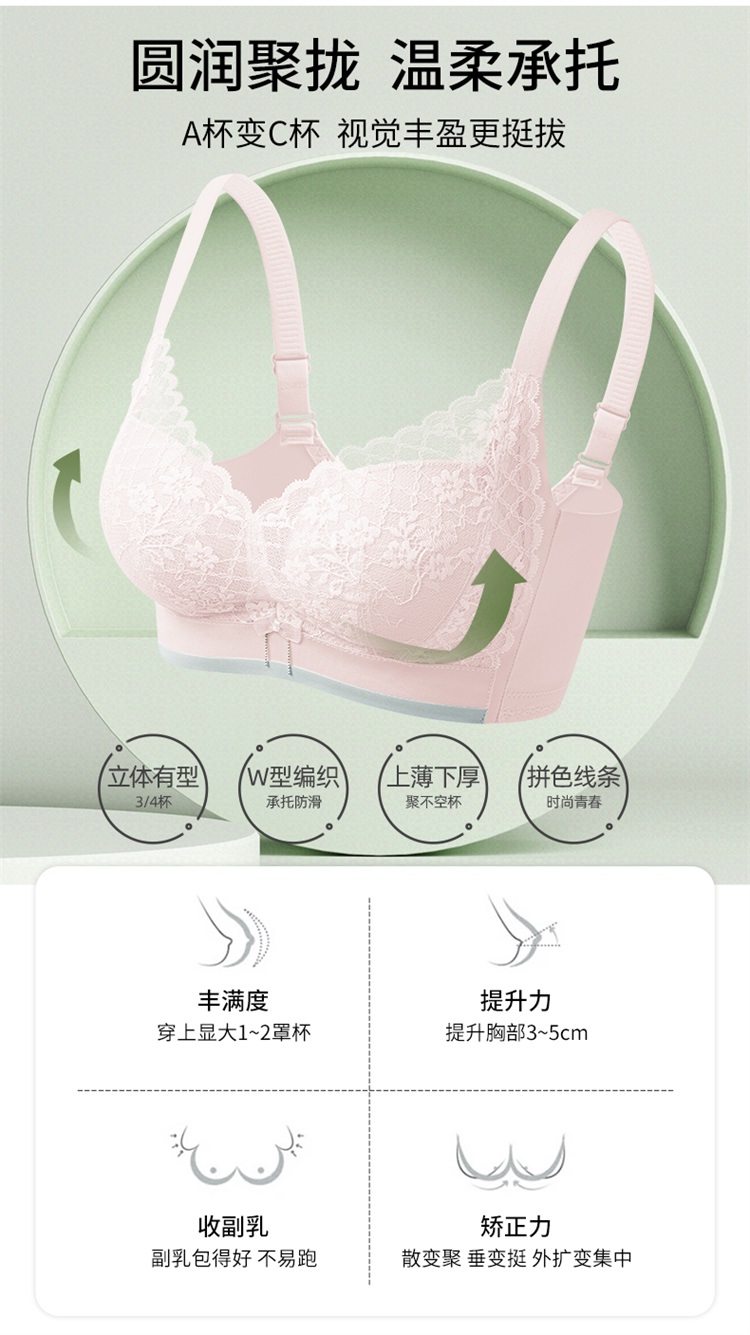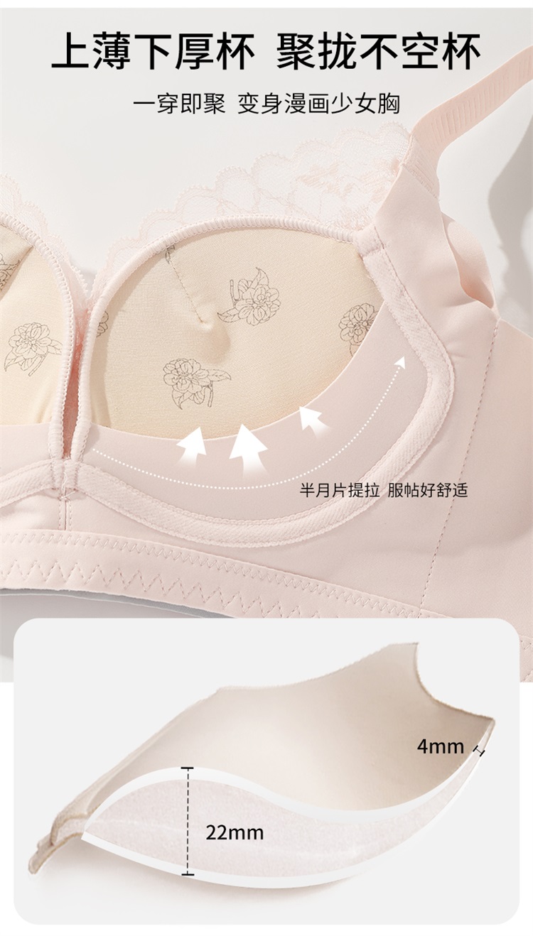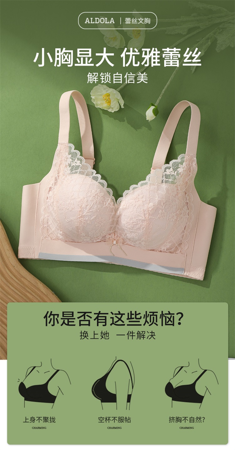 雅黛丽内衣女蕾丝聚拢小胸显大上薄下厚杯收副乳无钢圈高颜值文胸