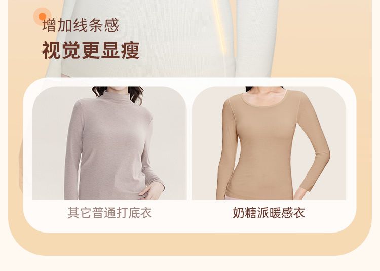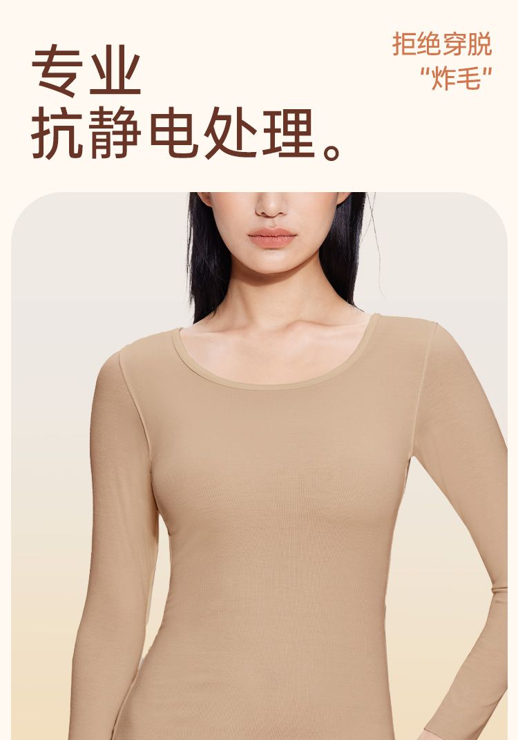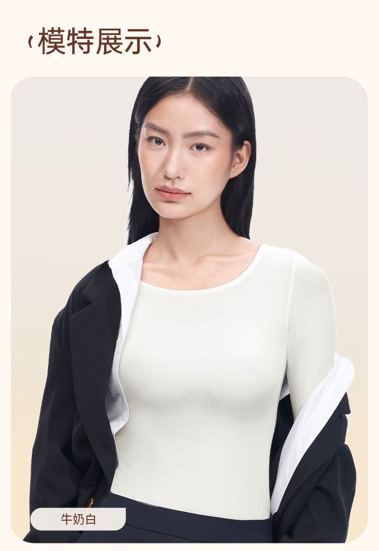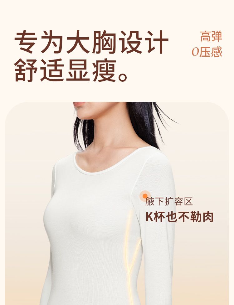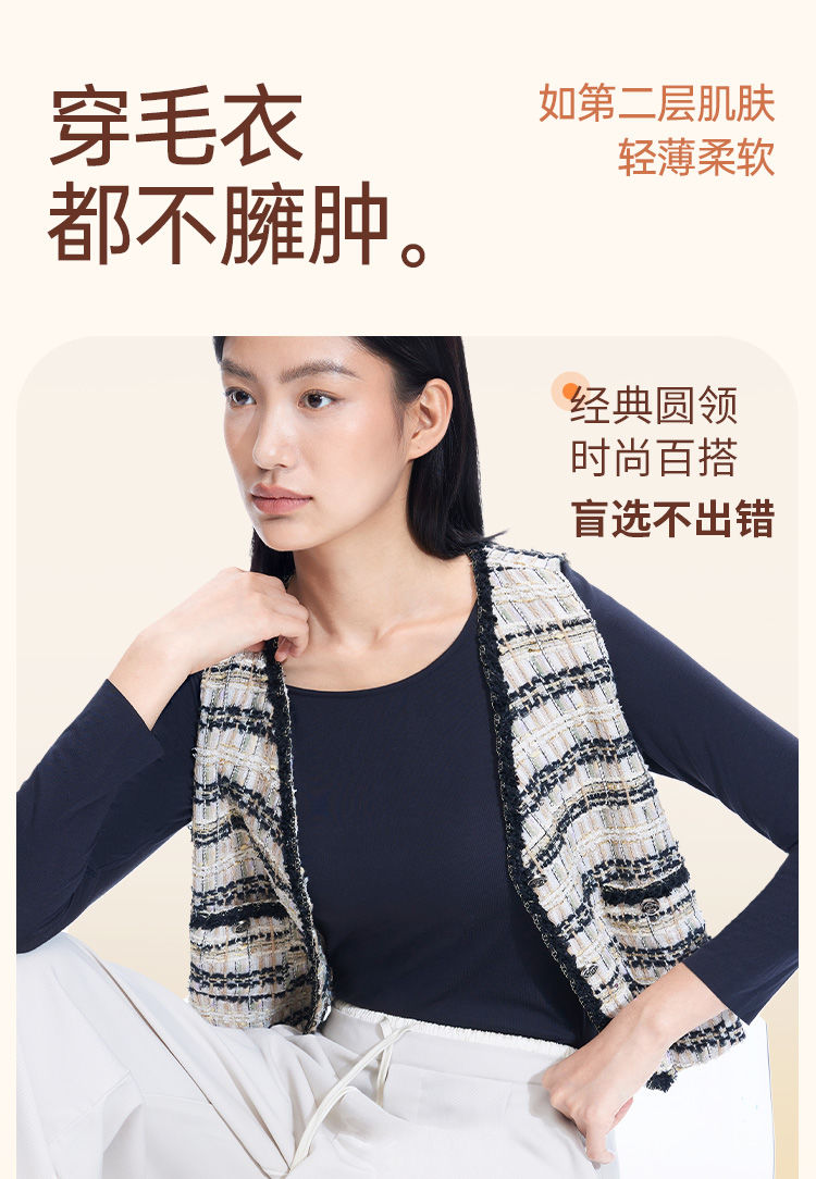 【特惠】(暖感衣圆领打底衣)奶糖派暖感衣大胸保暖轻暖防静电吸湿打底衣上装秋冬内搭秋衣女士