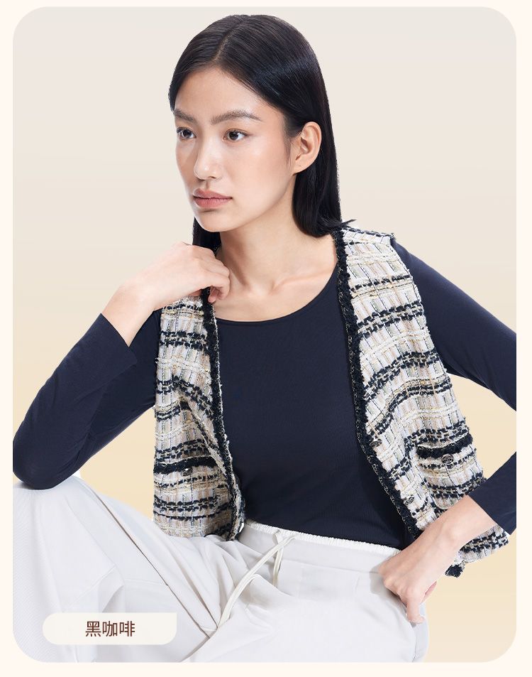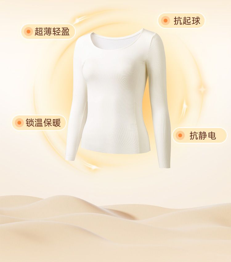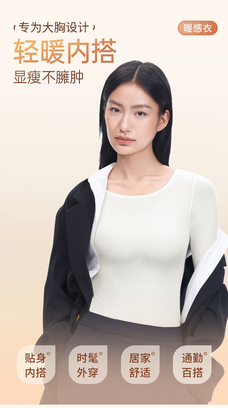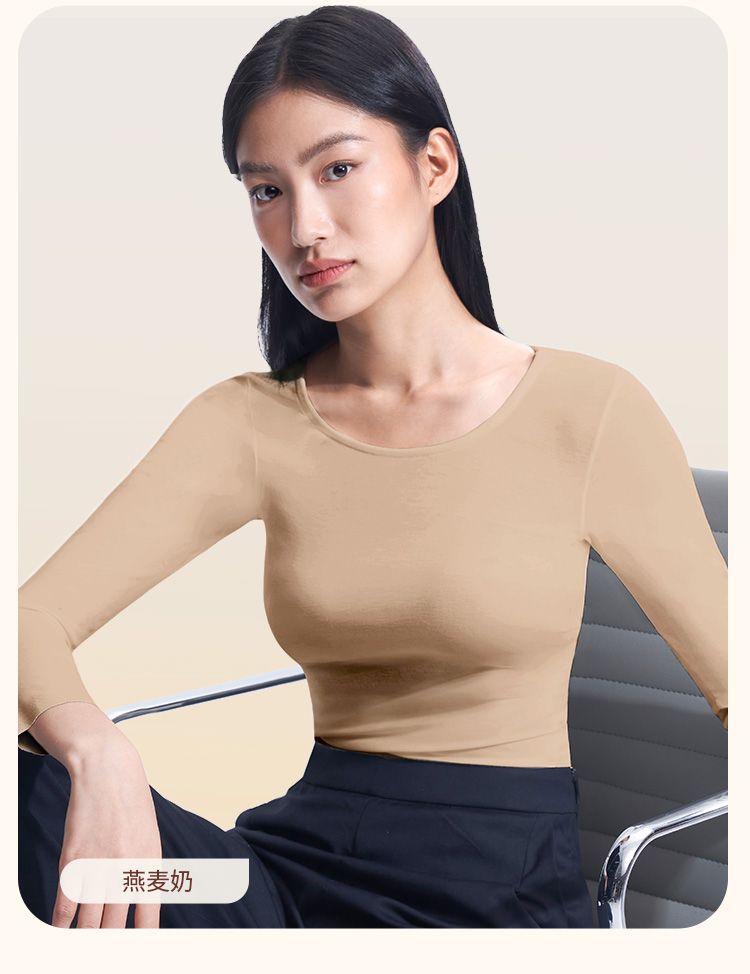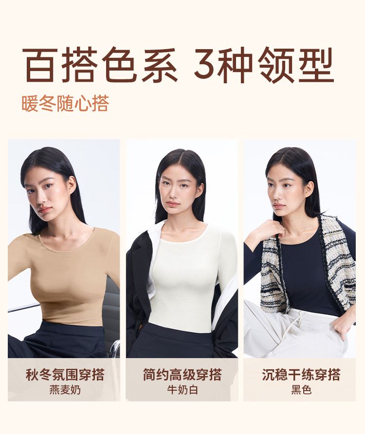 【特惠】(暖感衣圆领打底衣)奶糖派暖感衣大胸保暖轻暖防静电吸湿打底衣上装秋冬内搭秋衣女士