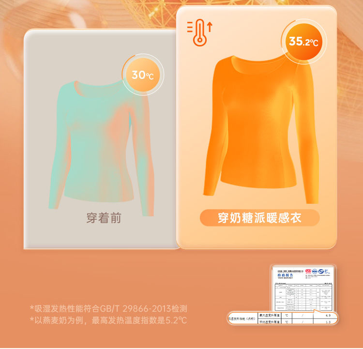 奶糖派暖感衣大胸保暖轻暖防静电吸湿打底衣上装秋冬内搭秋衣女士