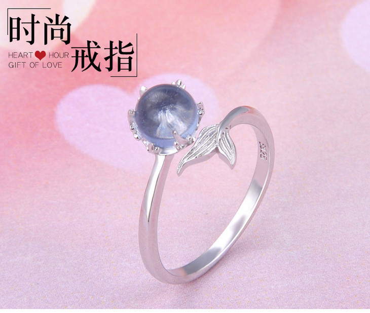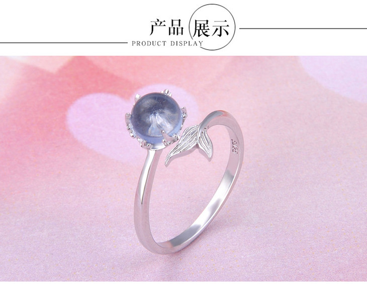 【首饰】s925纯银戒指简约镶水晶戒指开口 时尚潮流