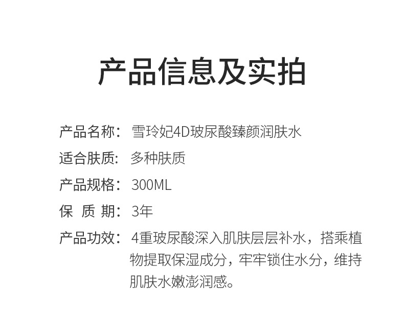 【美妆个护 】雪玲妃4D玻尿酸臻颜润肤水300ml补水保湿滋润肌肤化妆品