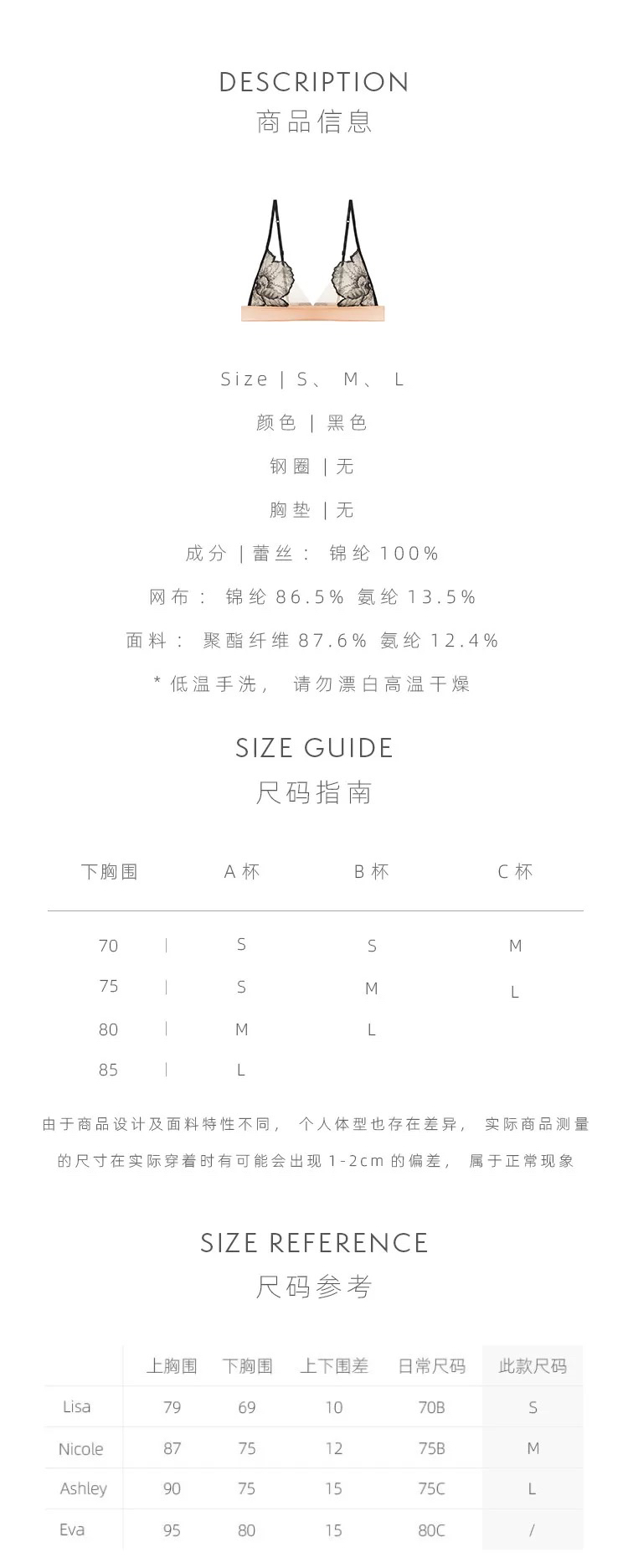 Her Senses|极织 12B152NN 列维斯蕾丝三角杯 [ 黑BK01 ]