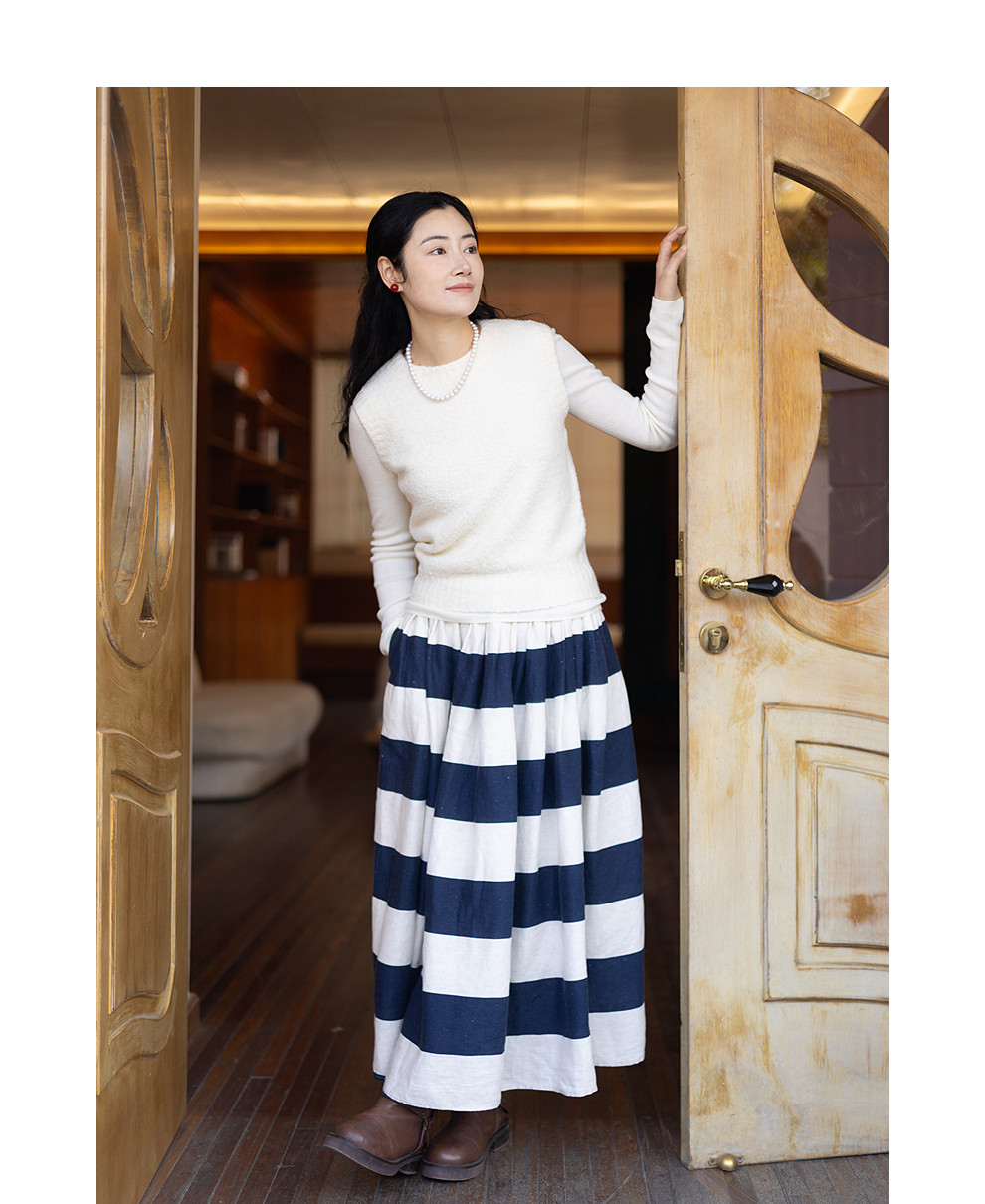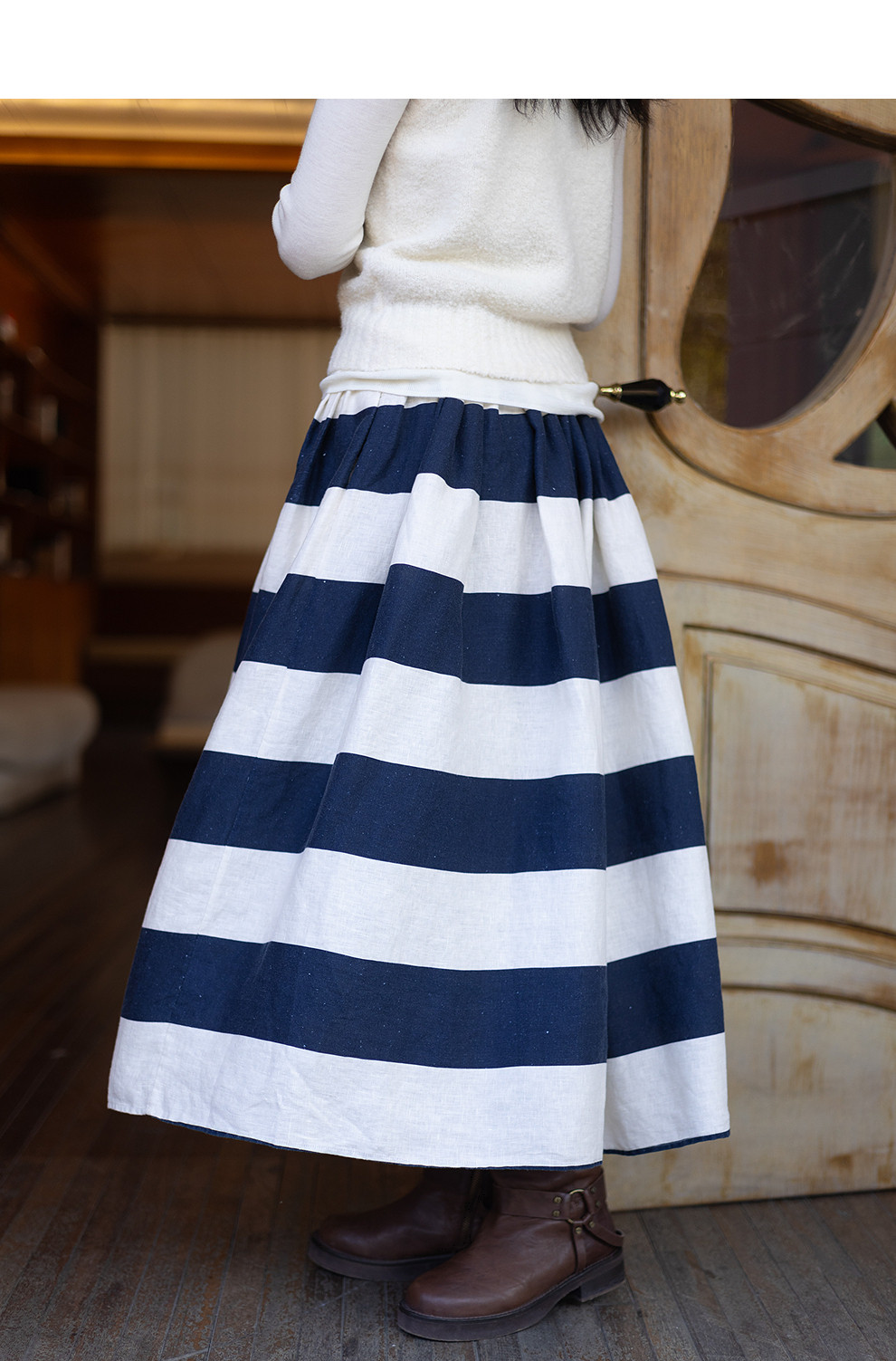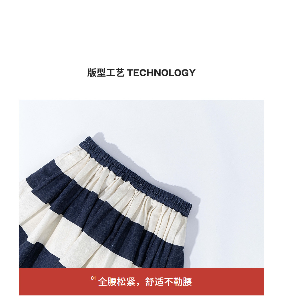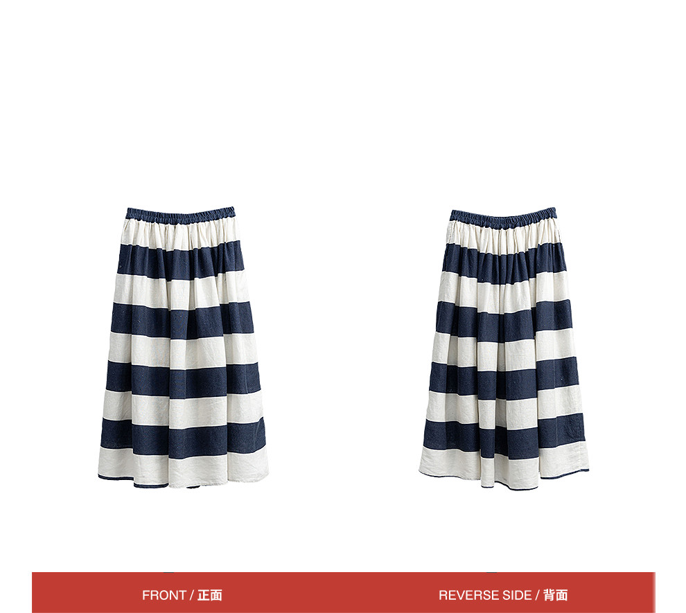 绽放005朵/海的痕迹·蓝白条纹撞色半身长裙女2026新款百搭半身裙