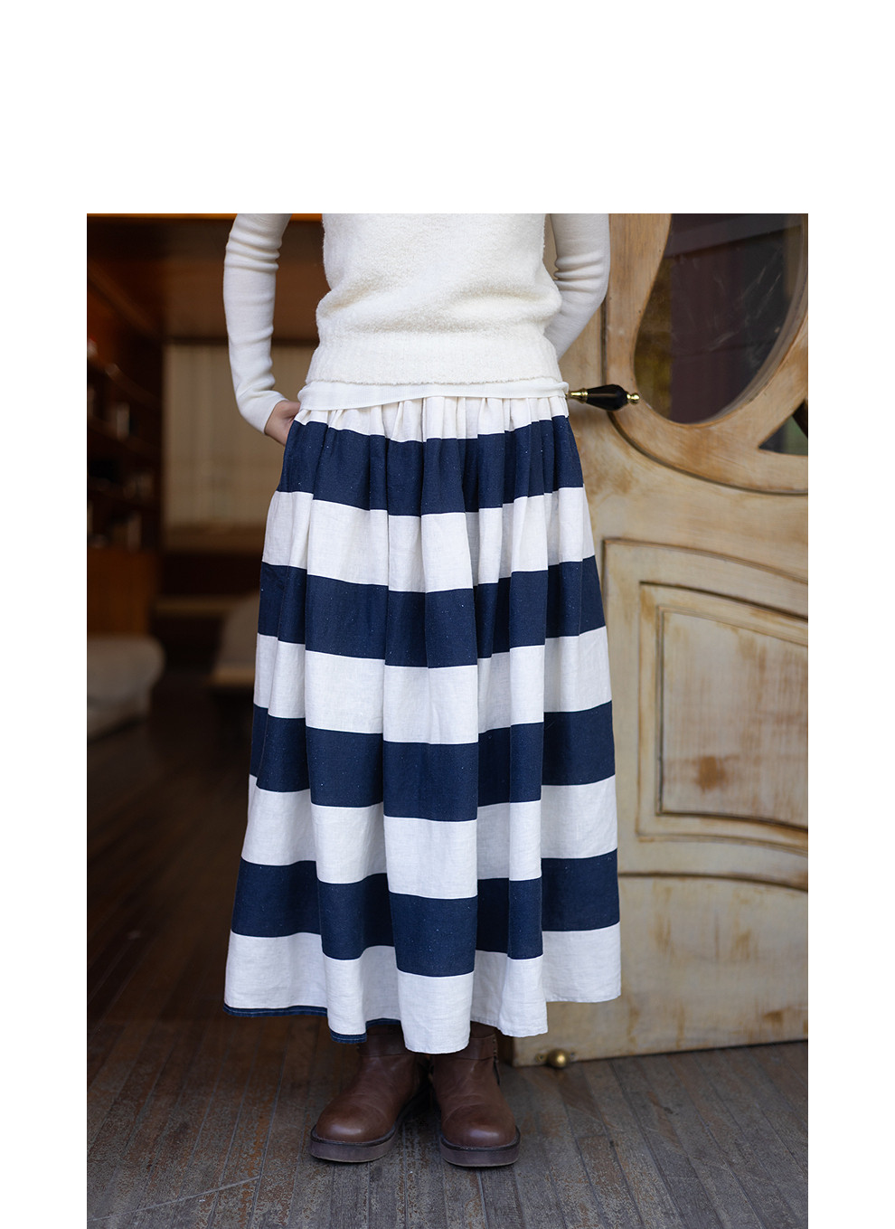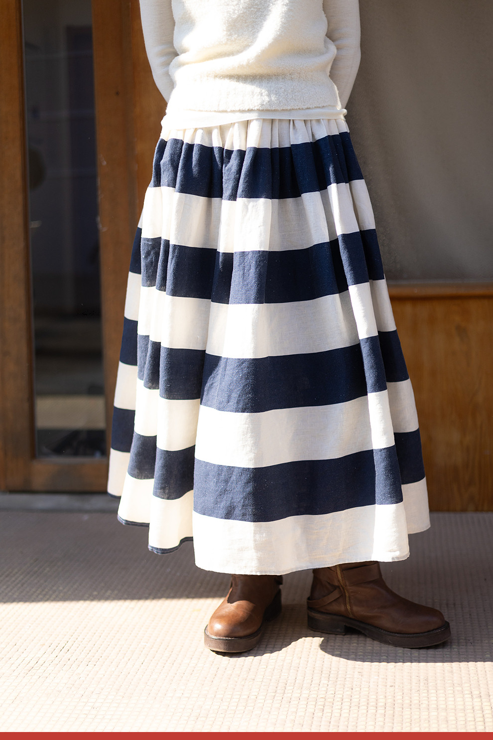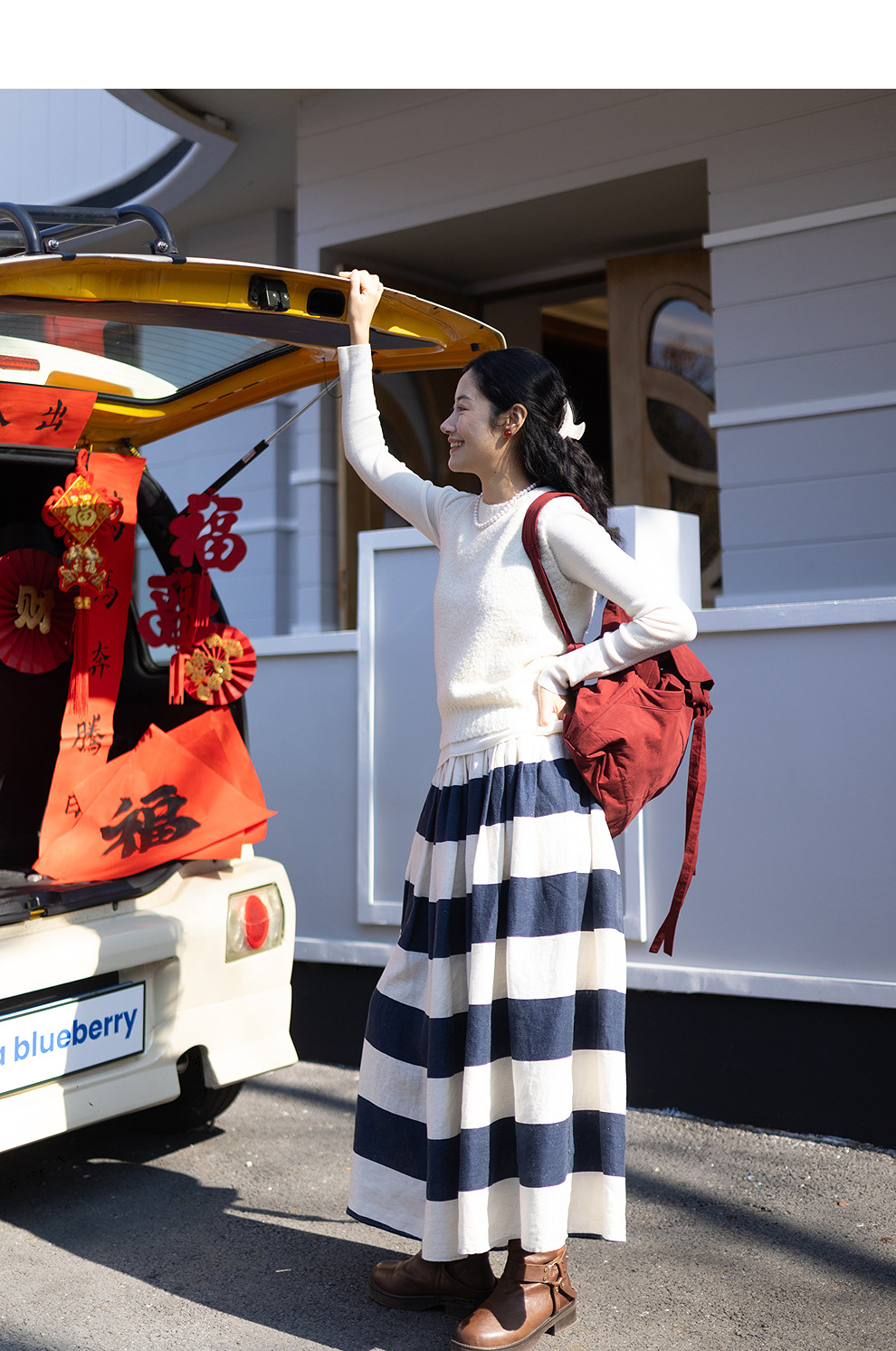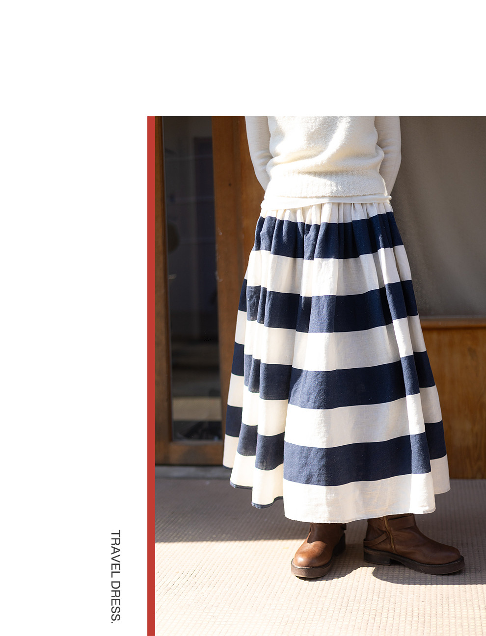 绽放005朵/海的痕迹·蓝白条纹撞色半身长裙女2026新款百搭半身裙
