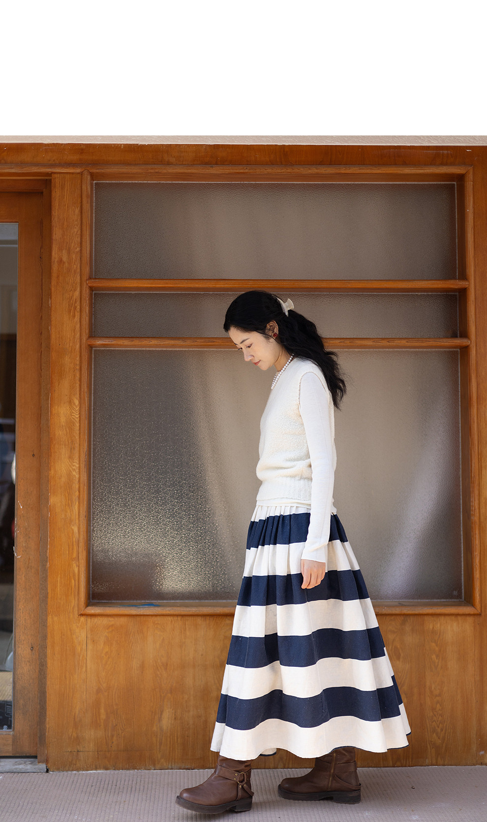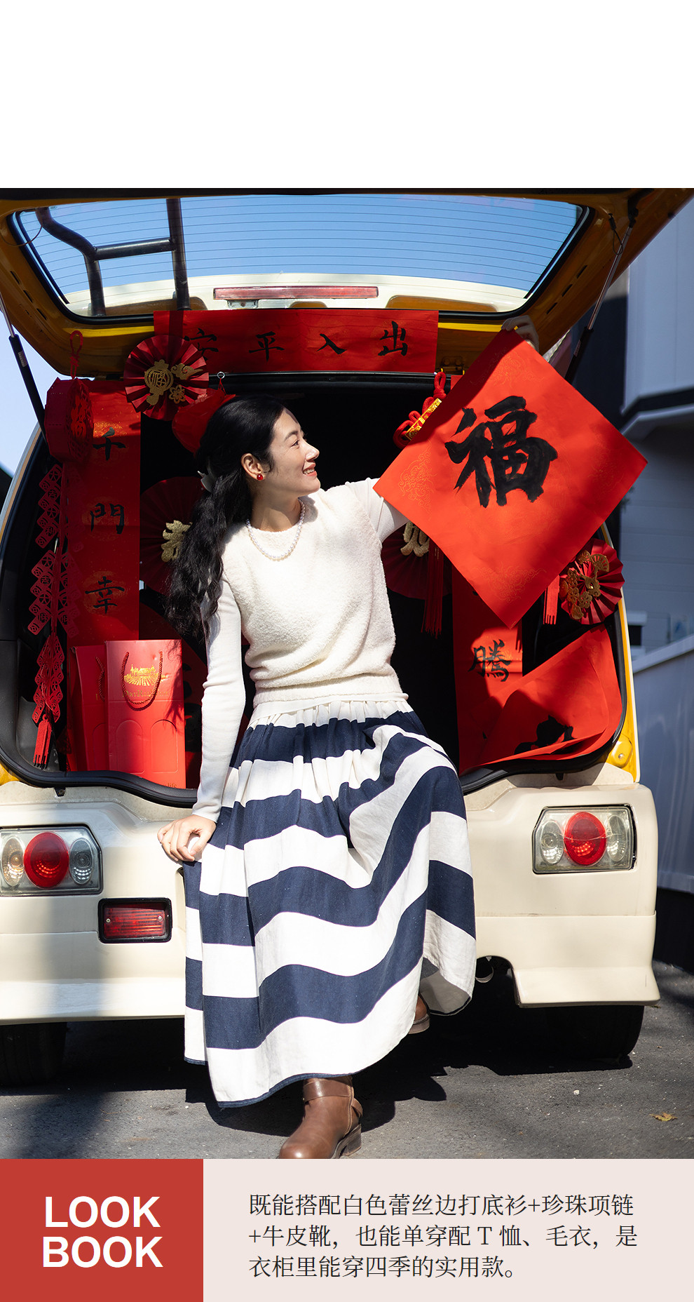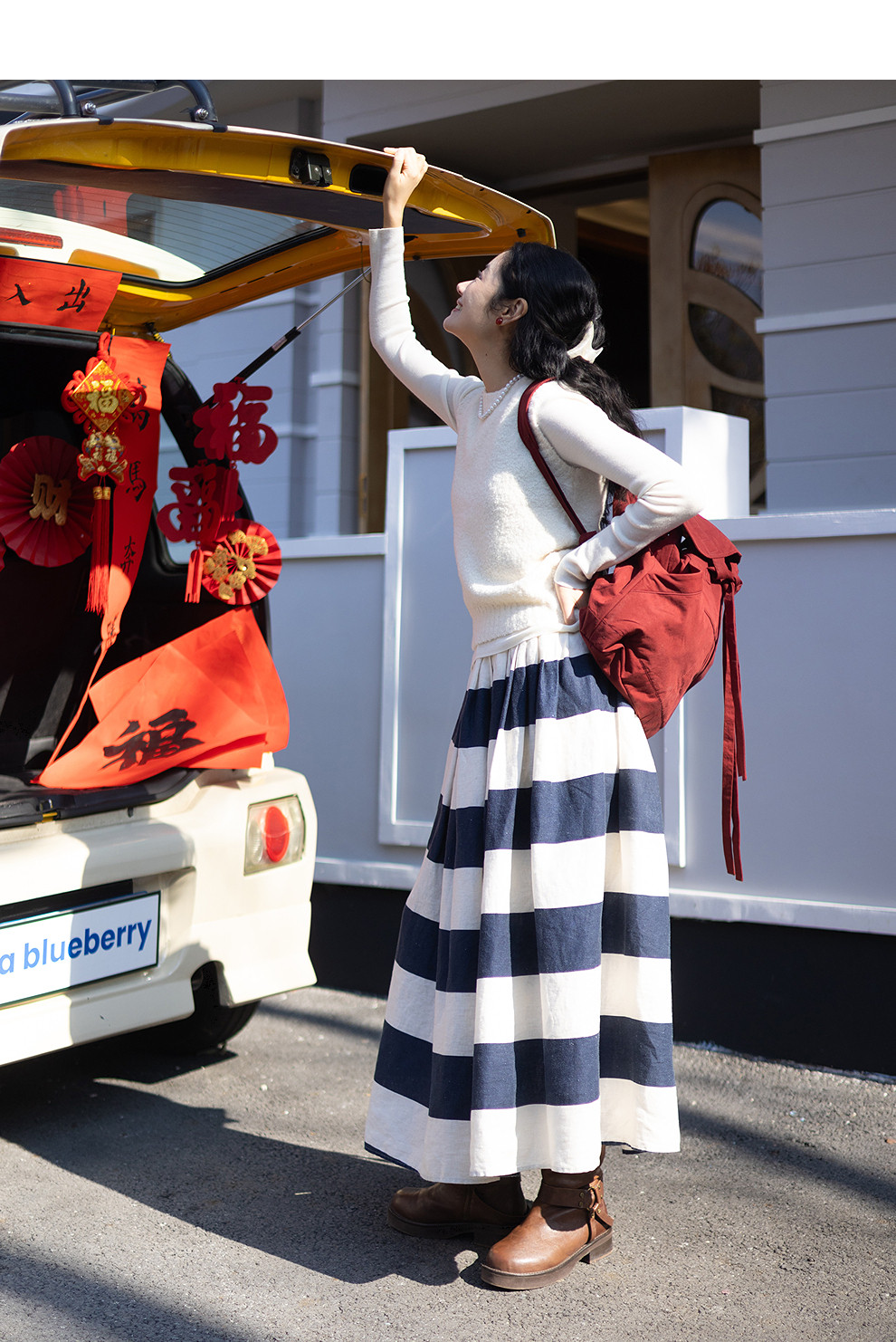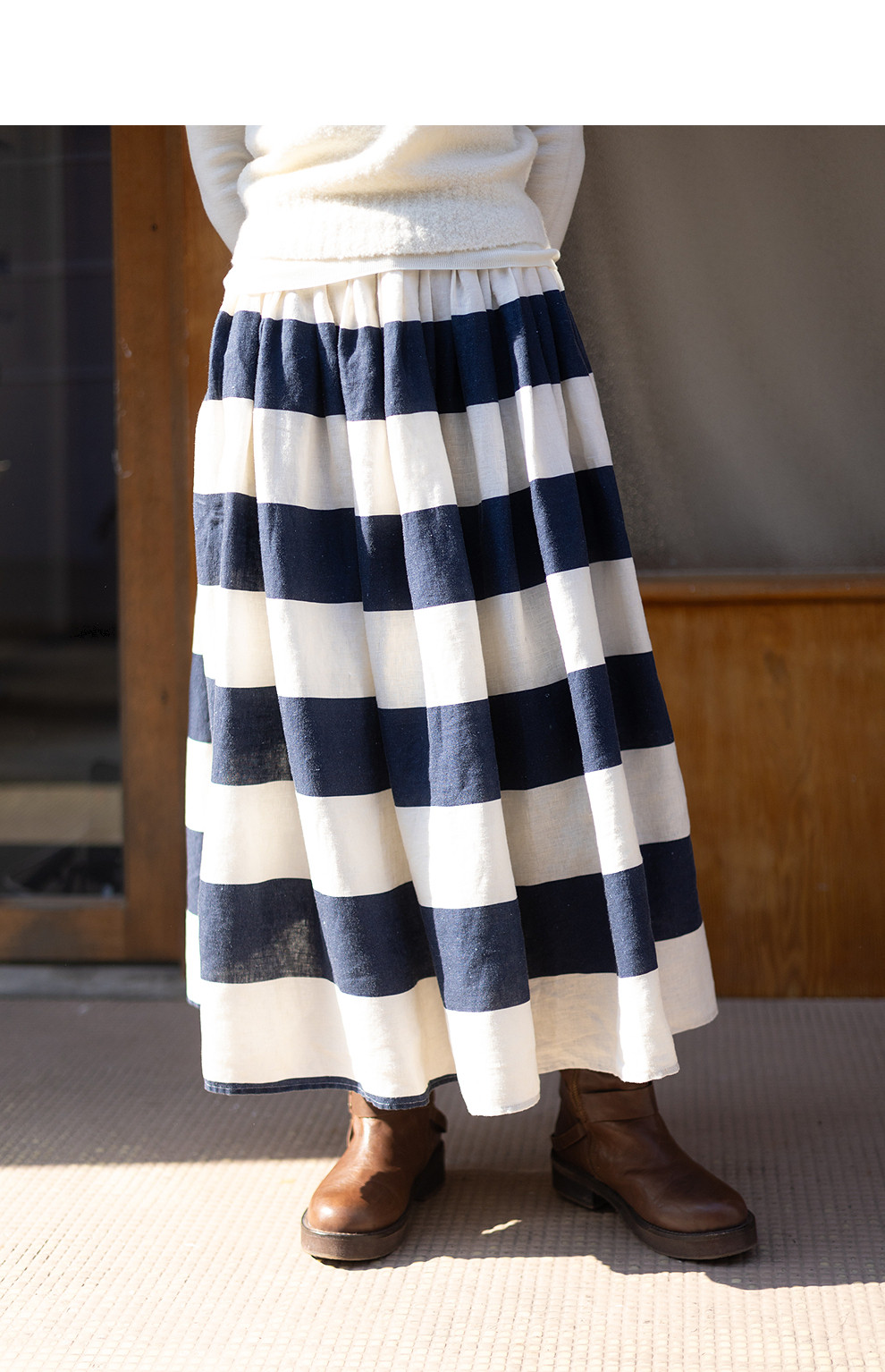 绽放005朵/海的痕迹·蓝白条纹撞色半身长裙女2026新款百搭半身裙