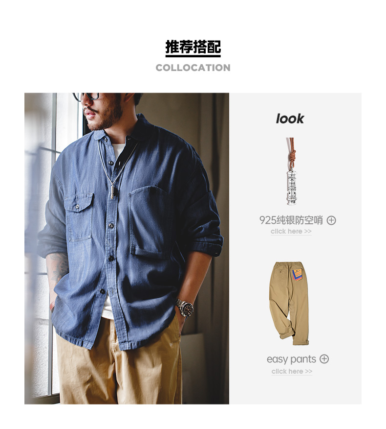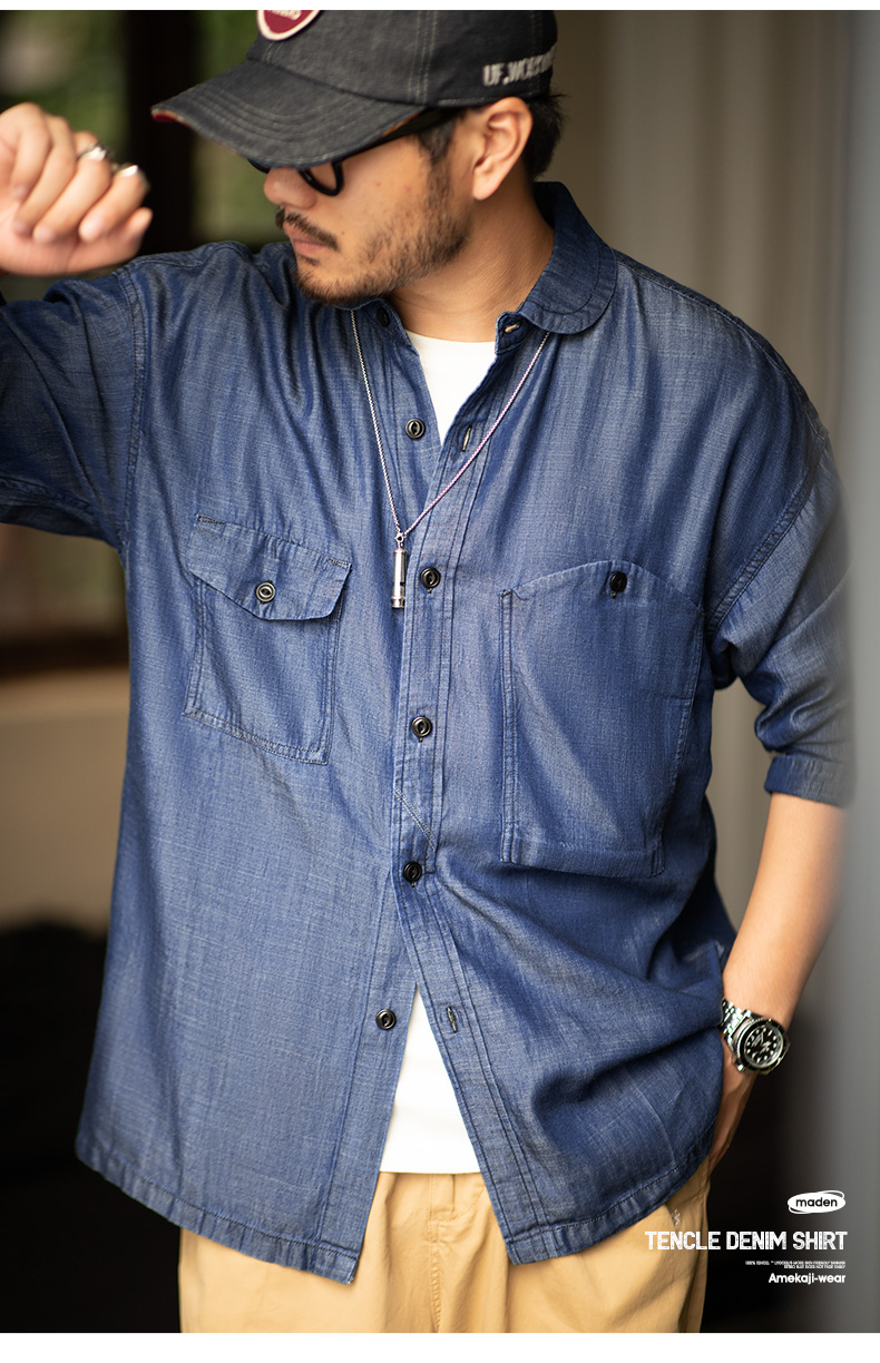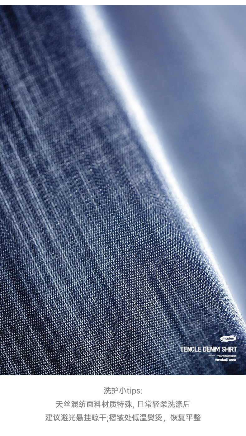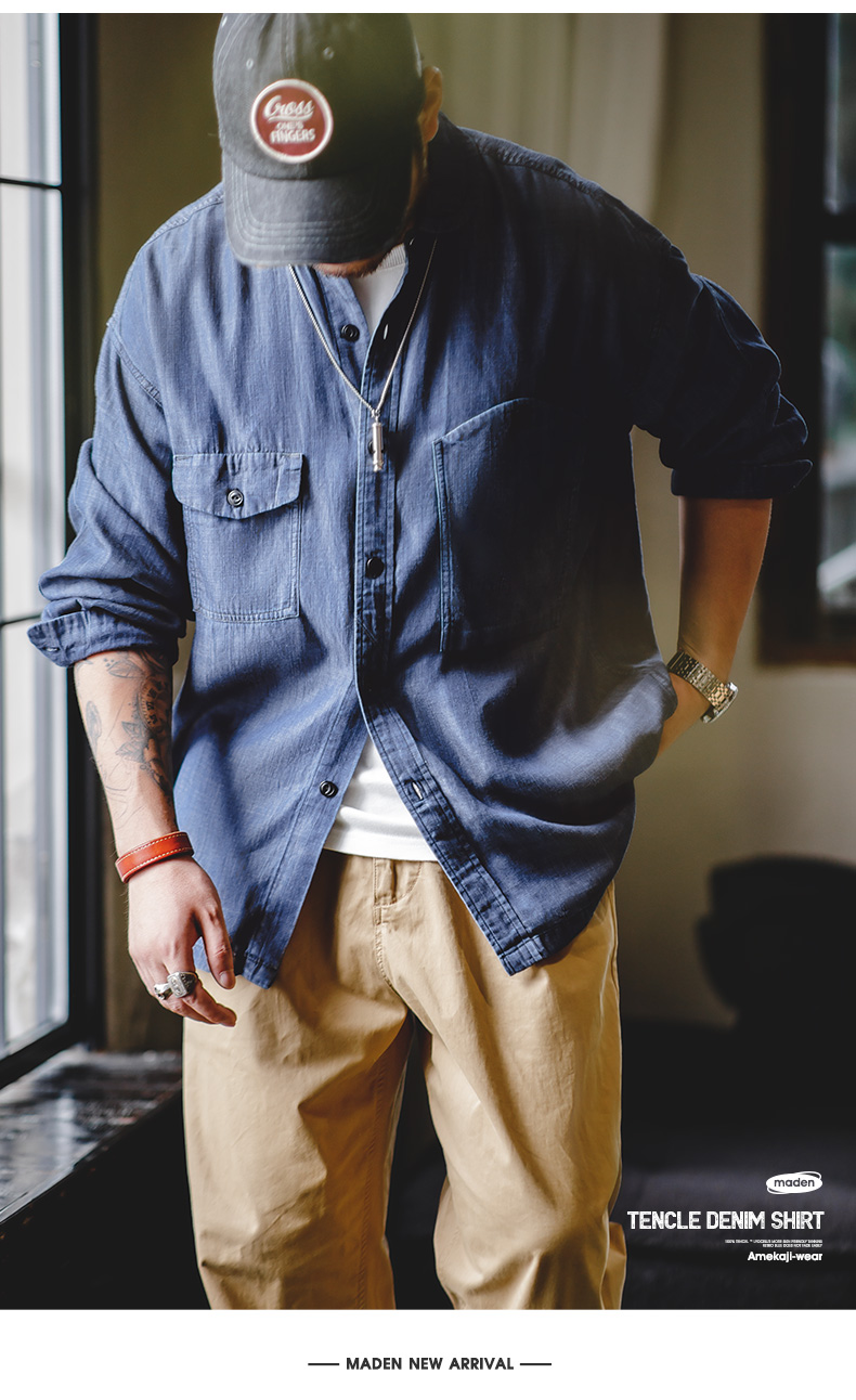 工装优选 美式复古天丝牛仔衬衫丹宁莱赛尔长袖CPO衬衣外套男士秋