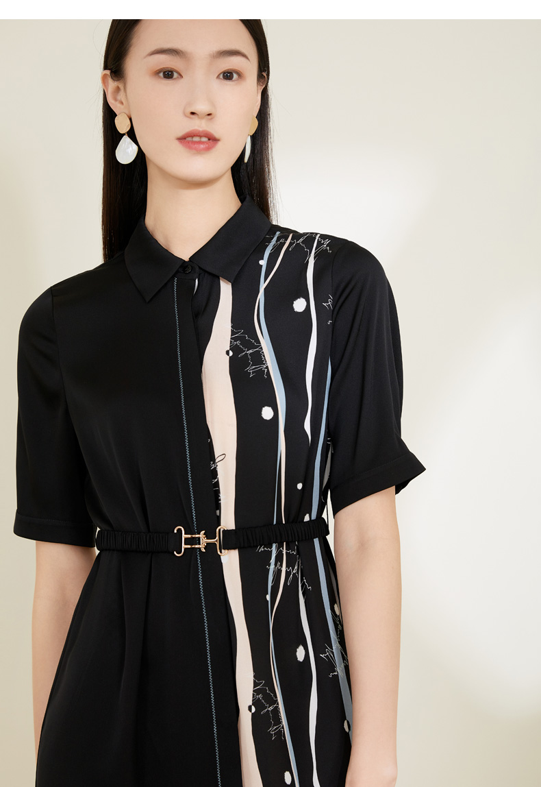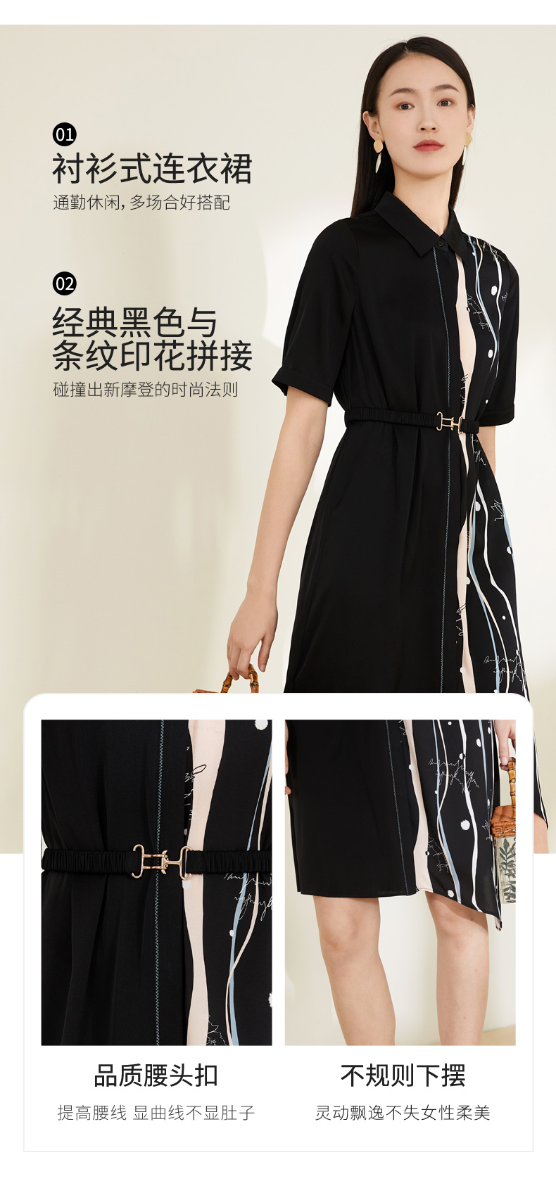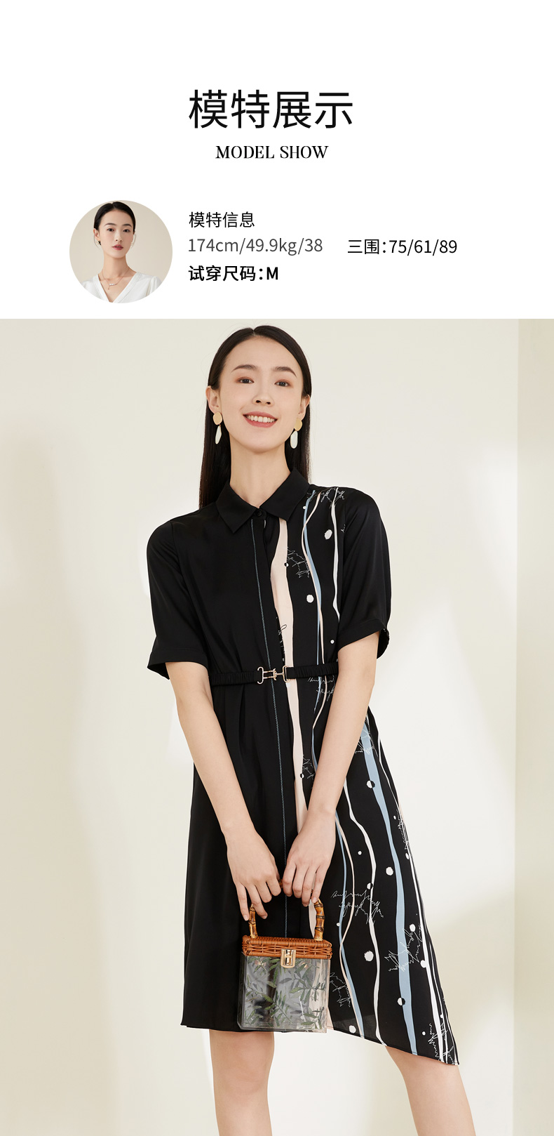 玳莎19mm弹力双乔绉印花真丝拼接连衣裙2022新款高级感气质中长款腰带设计感裙子 CB35103