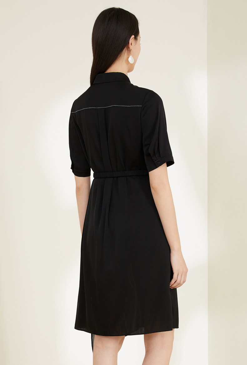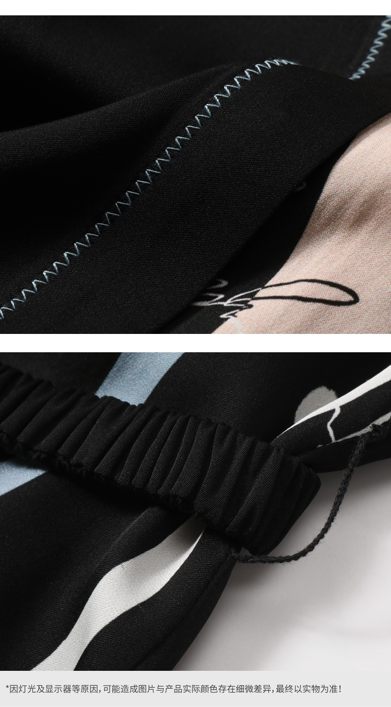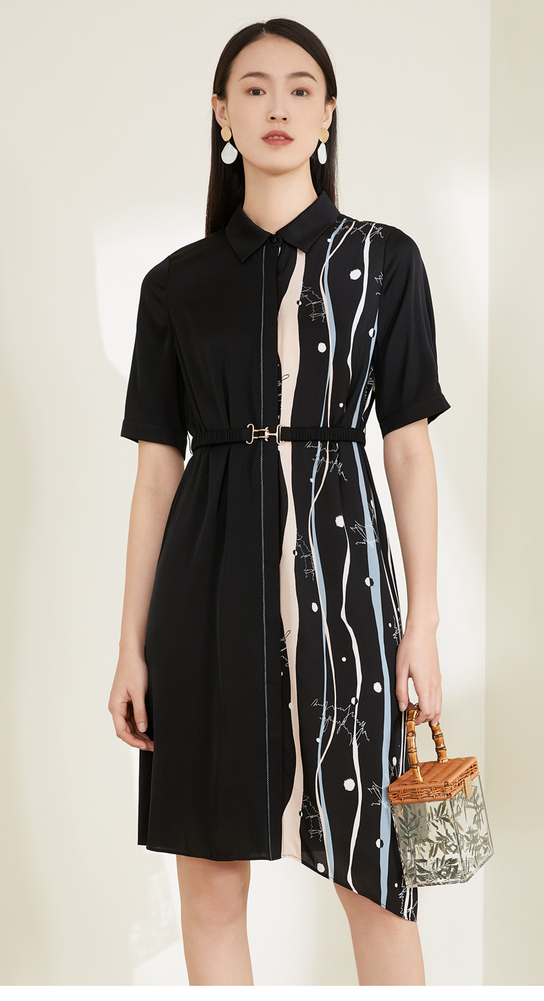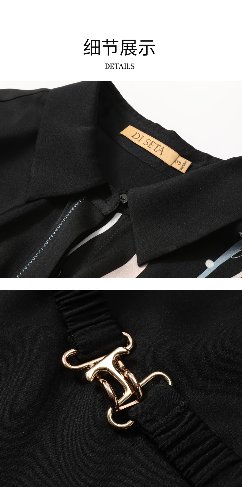 玳莎19mm弹力双乔绉印花真丝拼接连衣裙2022新款高级感气质中长款腰带设计感裙子 CB35103