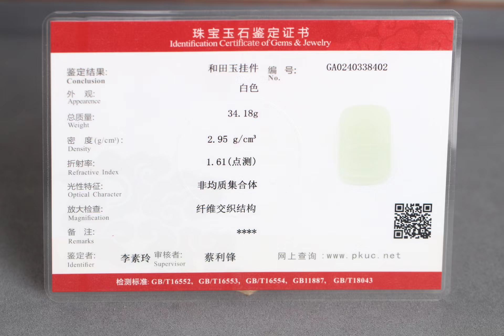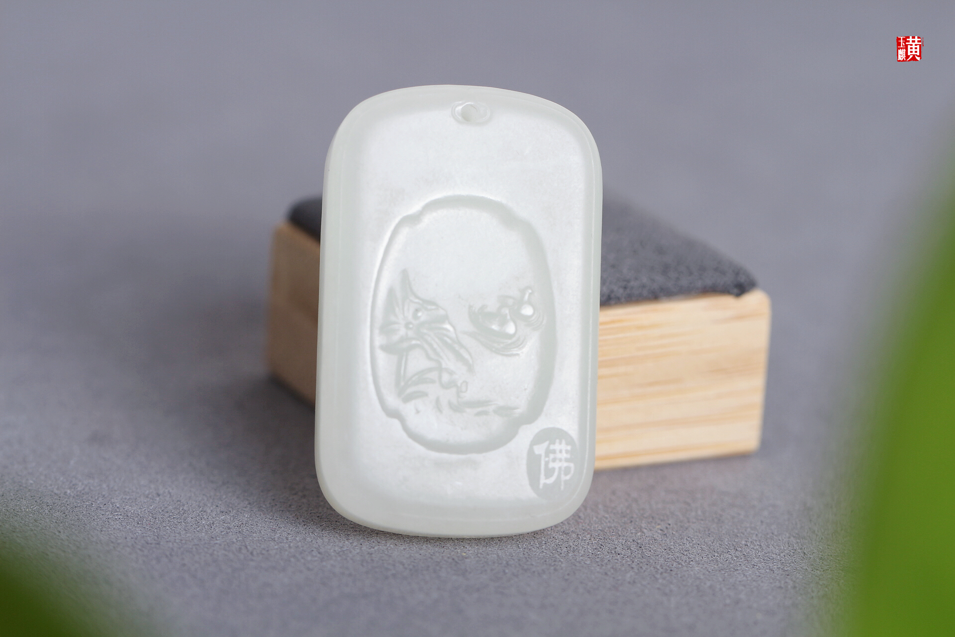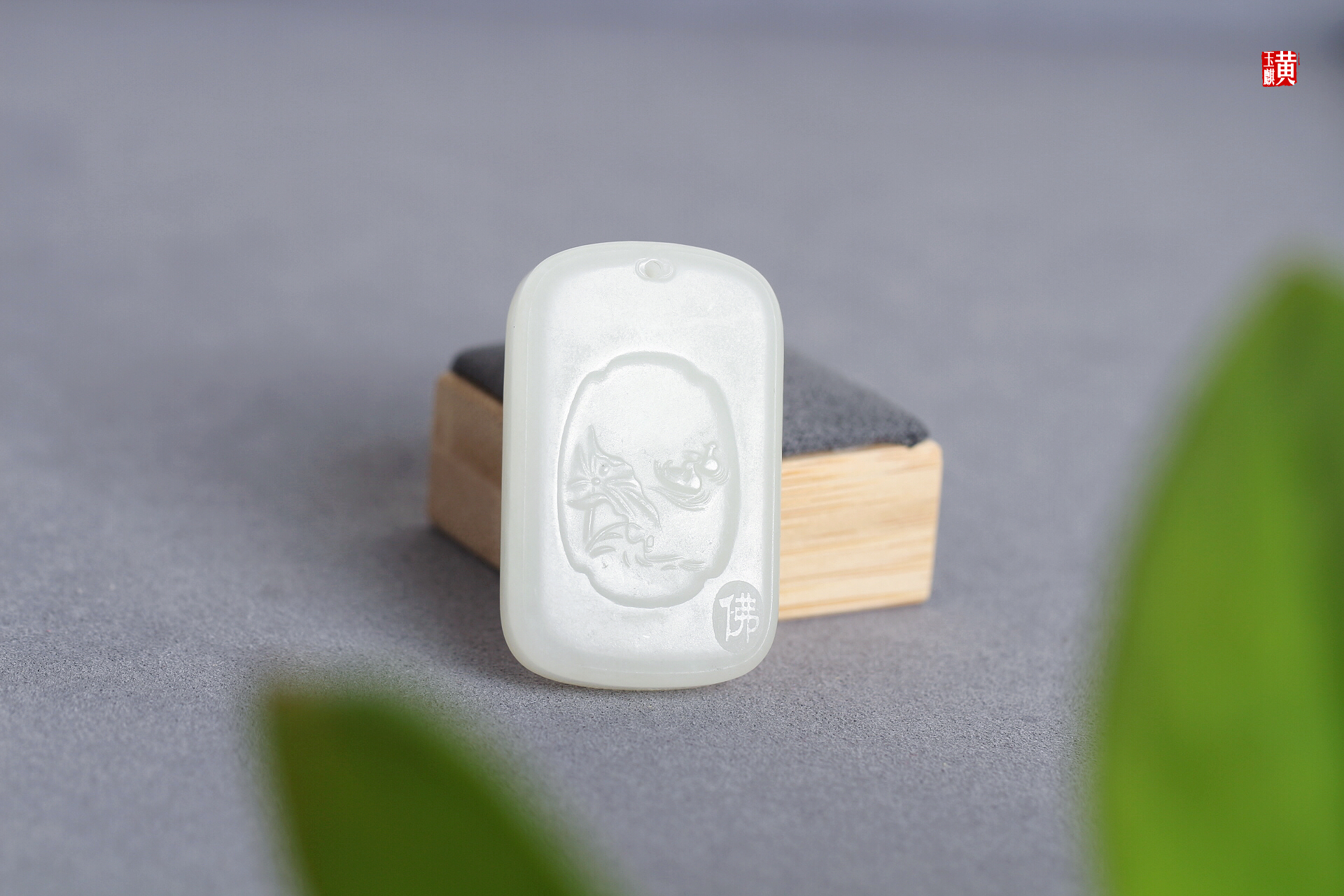 和田白玉【欢喜弥勒佛】吊坠, 配精美挂绳
