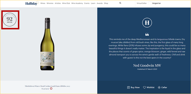 荣获James Halliday 92分&“特别价值奖”、Bob Campbell 2024年6月蕞佳十大干白;