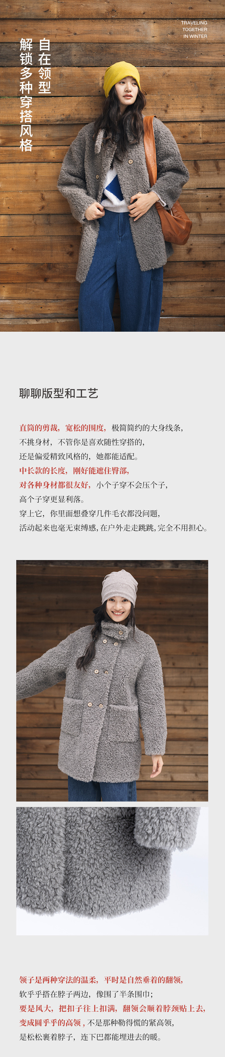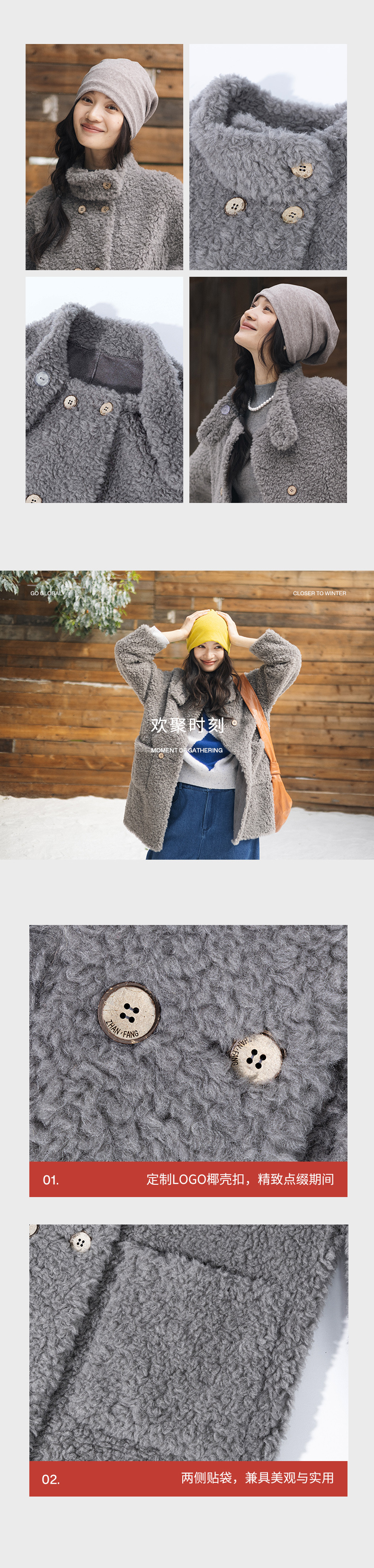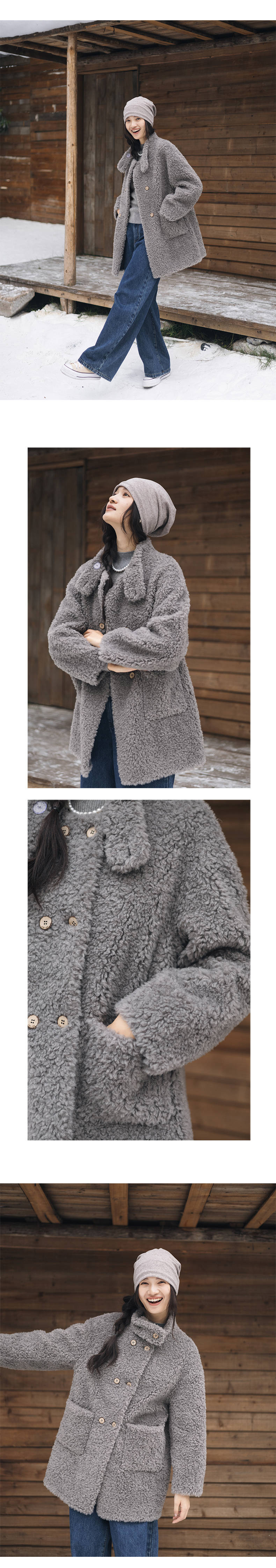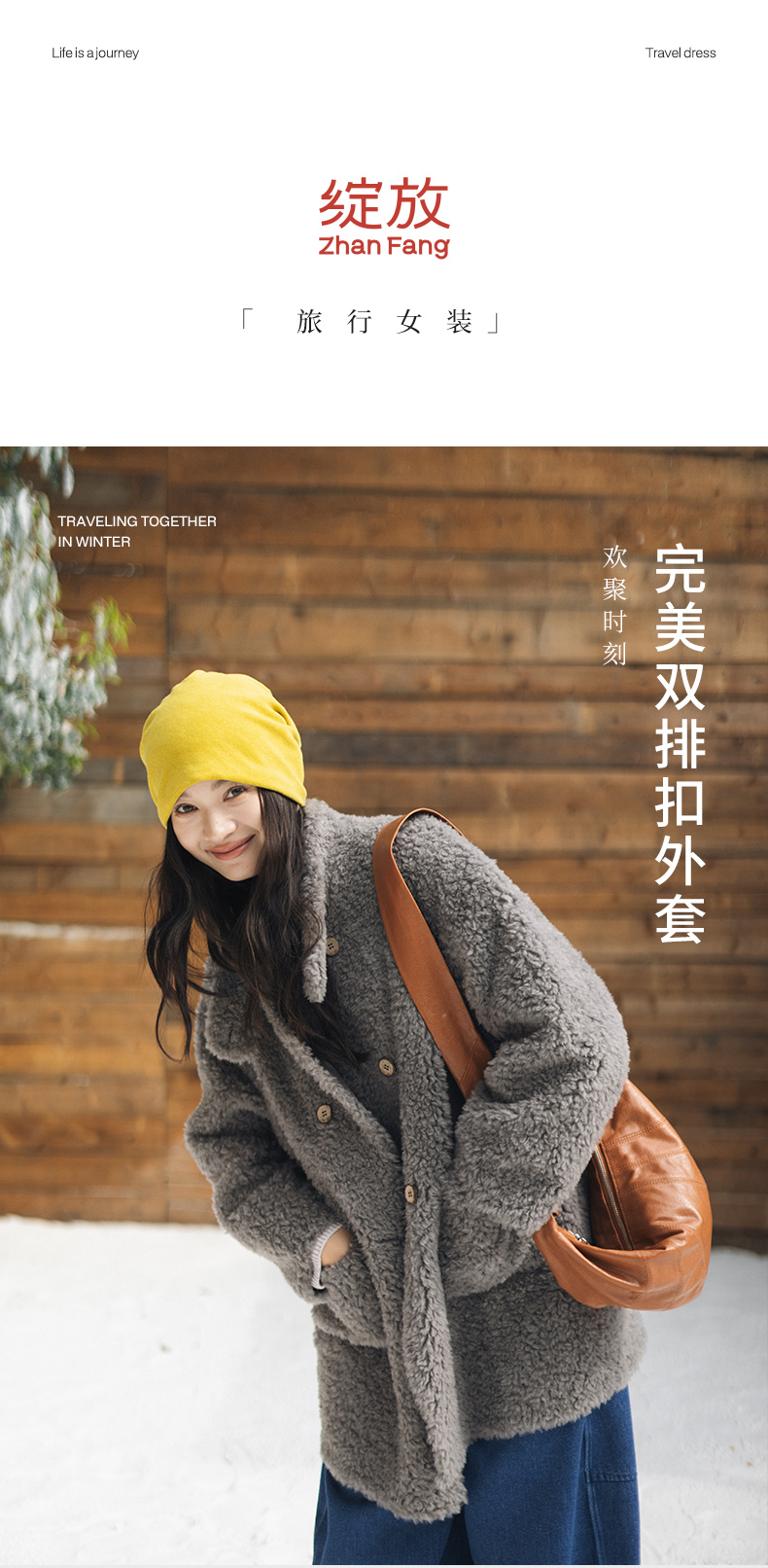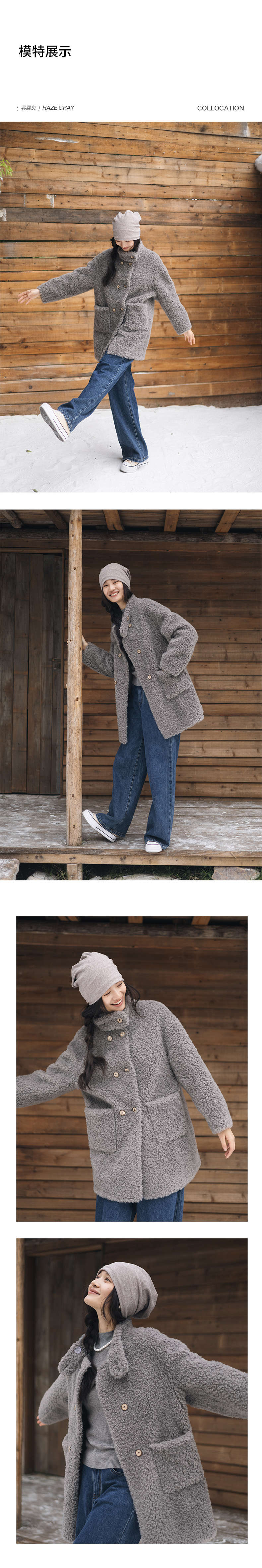绽放826朵/完美双排扣外套·羊羔毛立领双排扣一手长加厚外套女