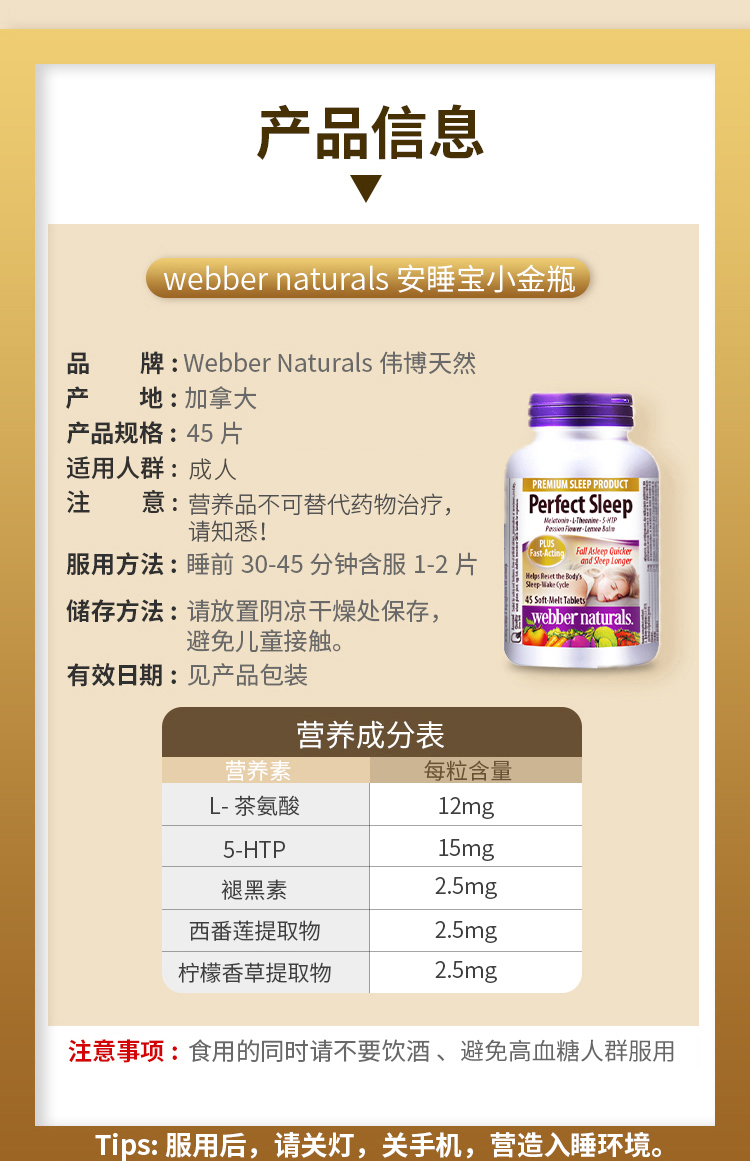 【跨境加拿大原装进口】Webber Naturals伟博天然金安睡宝45粒(SKU9033)