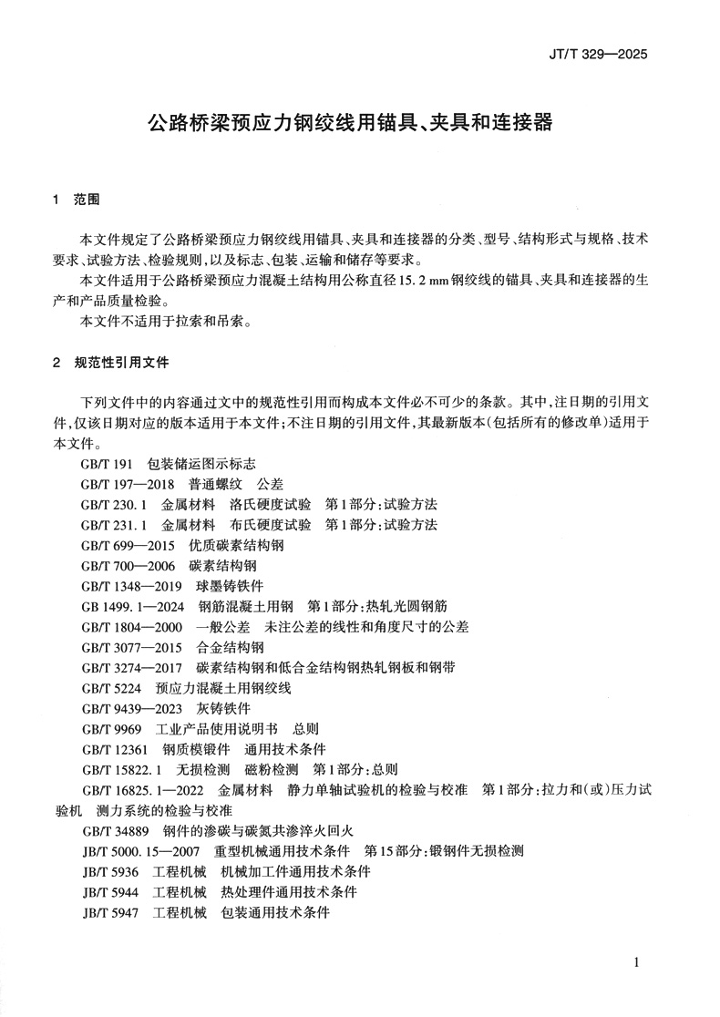 JT/T 329-2025公路桥梁预应力钢绞线用锚具、夹具和连接器