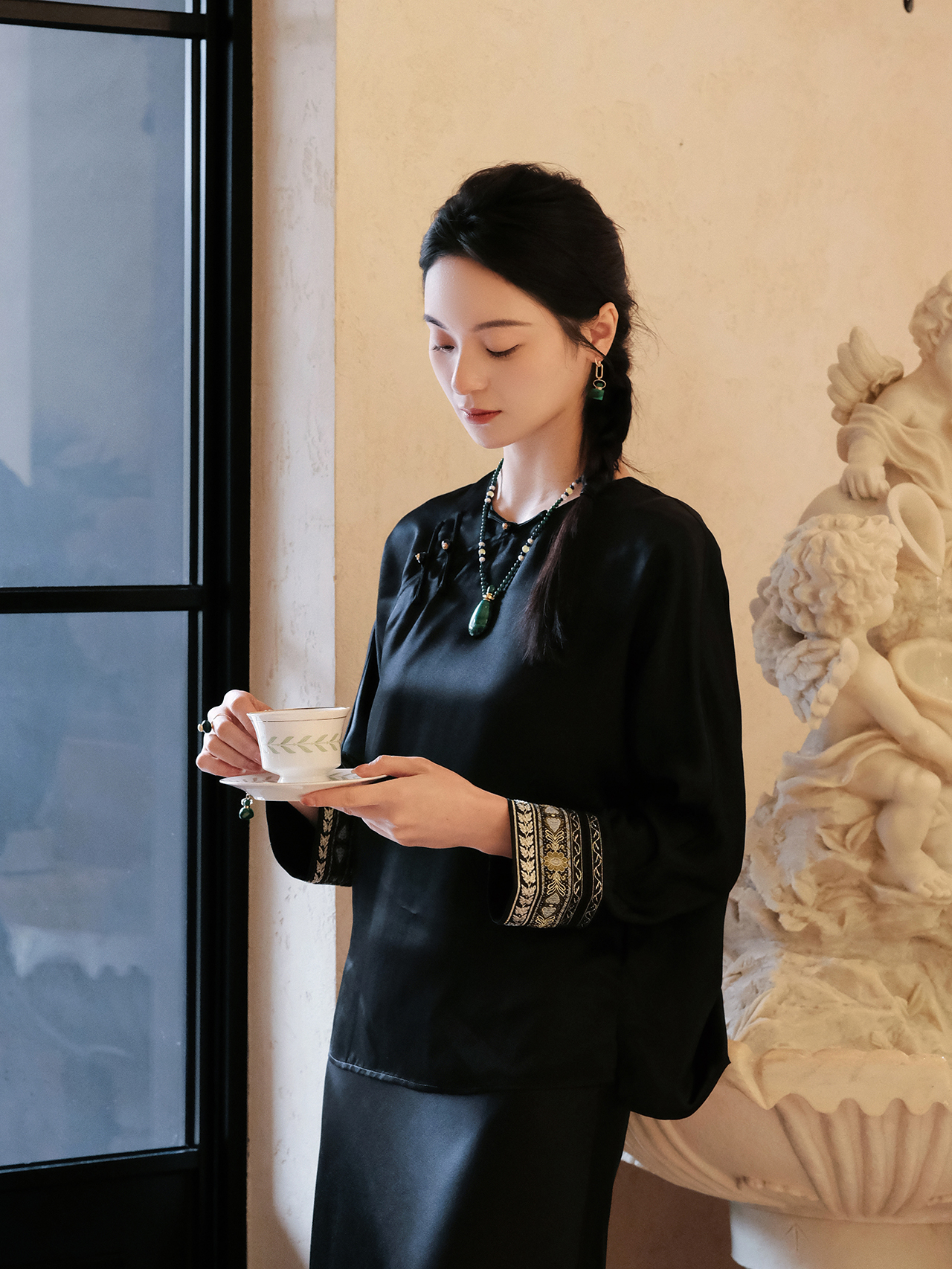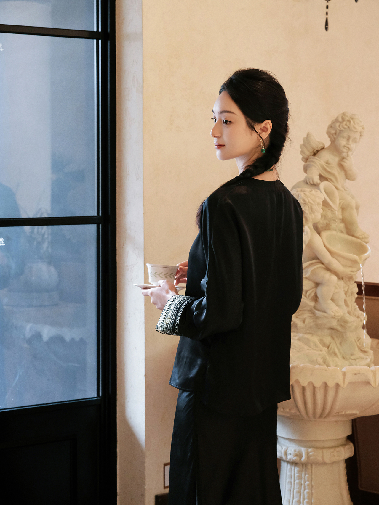 盛唐婧 |双面穿凤戏牡丹真丝外套