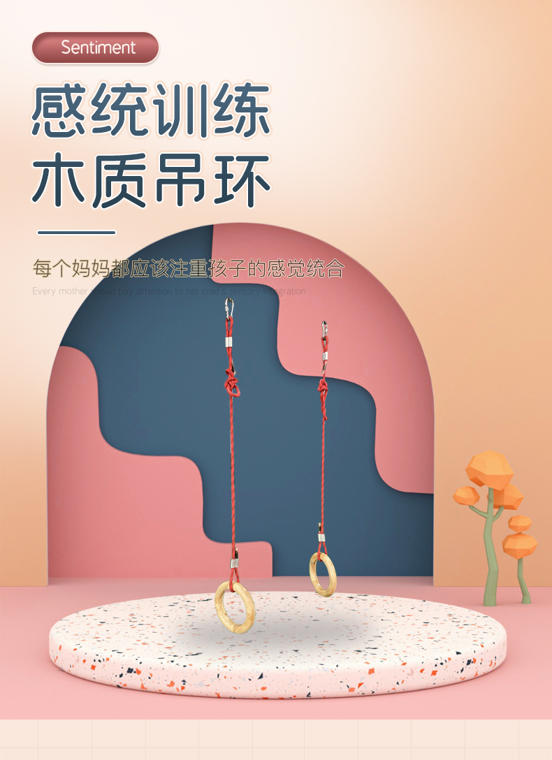 木质吊环秋千组儿童感统康复训练器材悬挂吊缆教具配件家用悬吊器