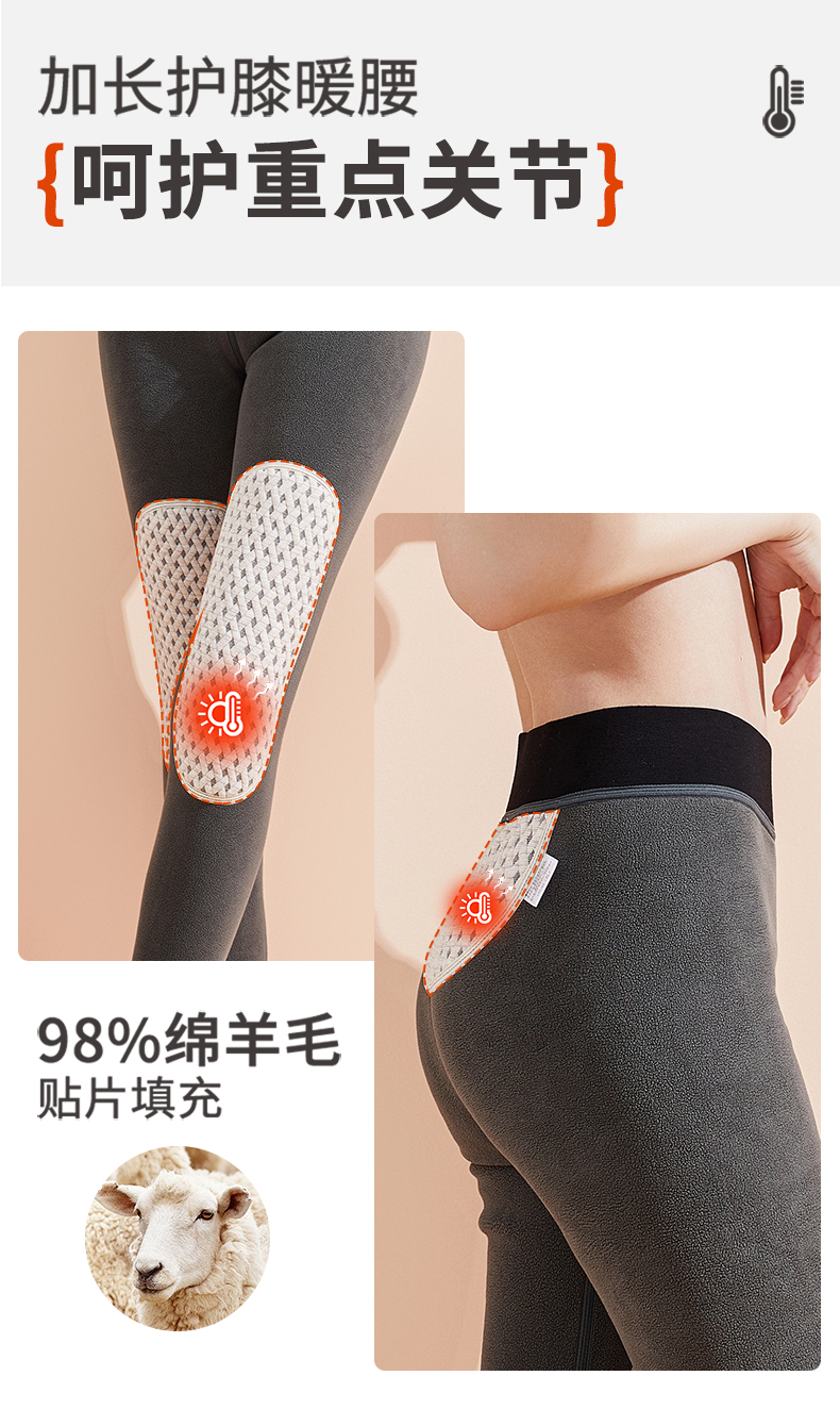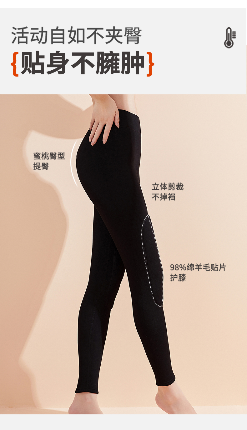 雅黛丽保暖裤加绒加厚含绵羊毛贴片护膝护腰打底裤2024新款秋冬季