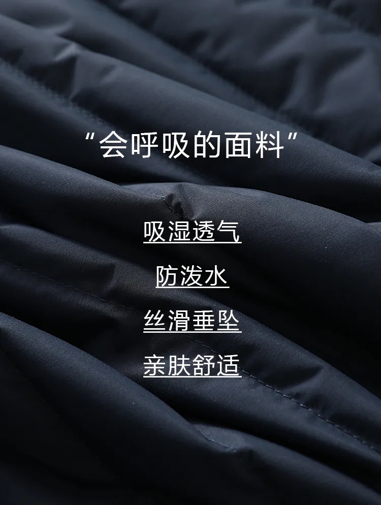轻盈的鸭绒填充,搭配弹力面料的拼接结构,让你活动自如