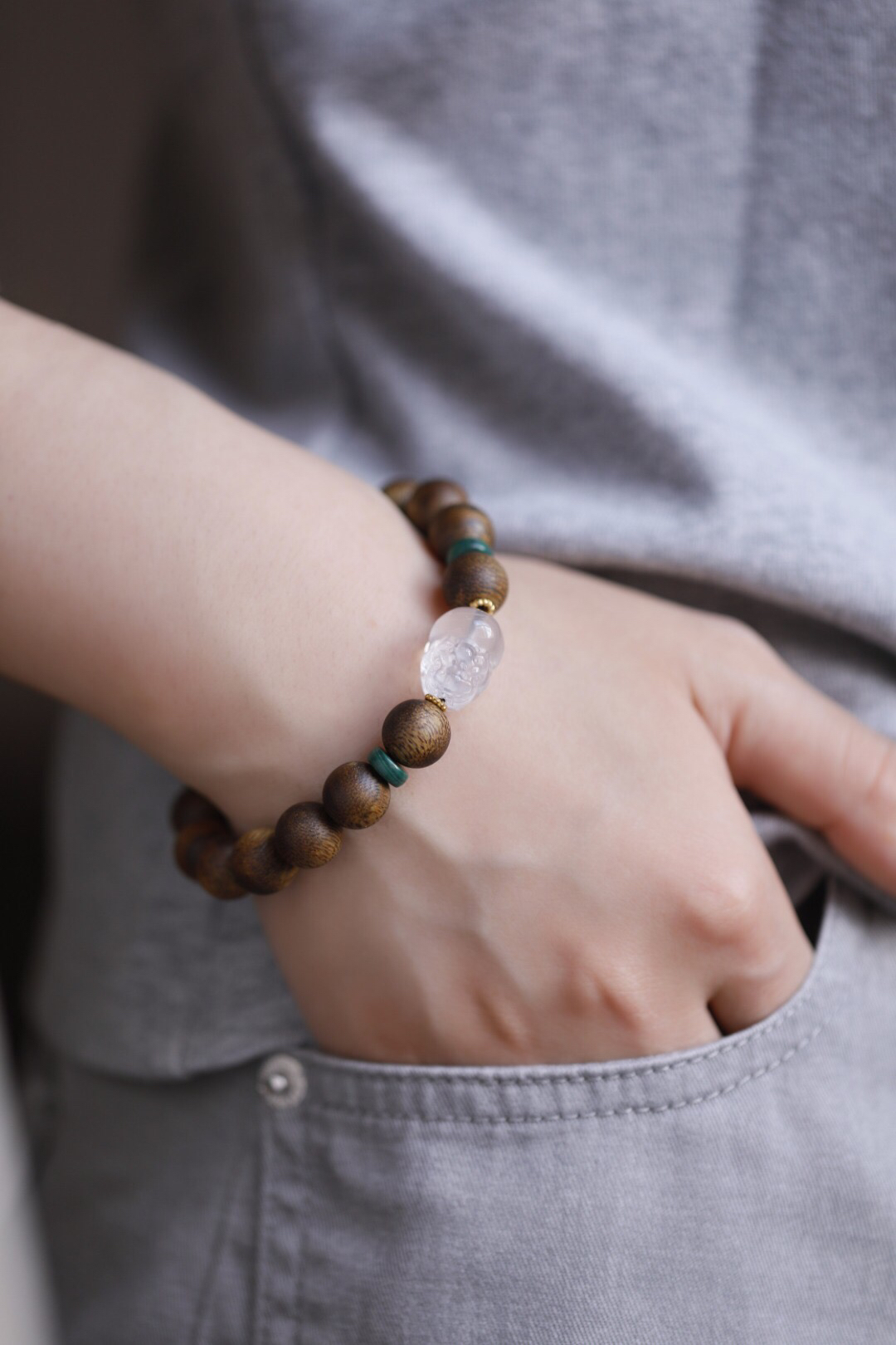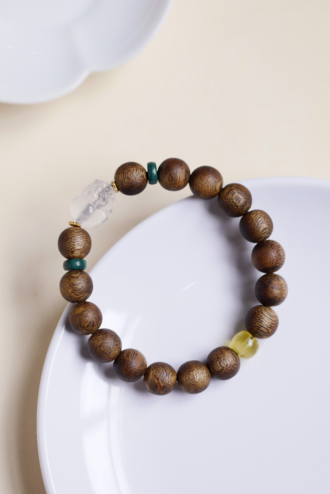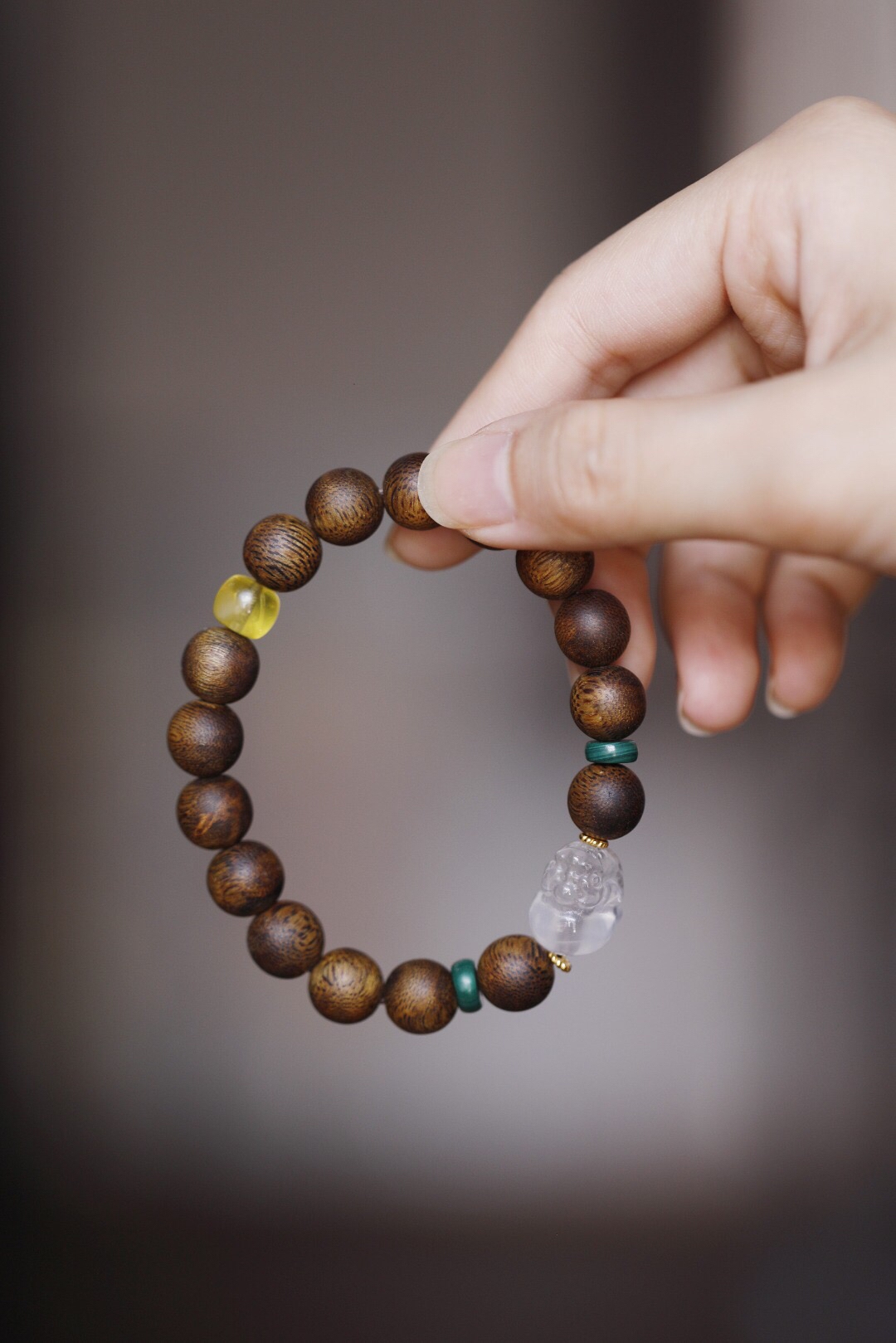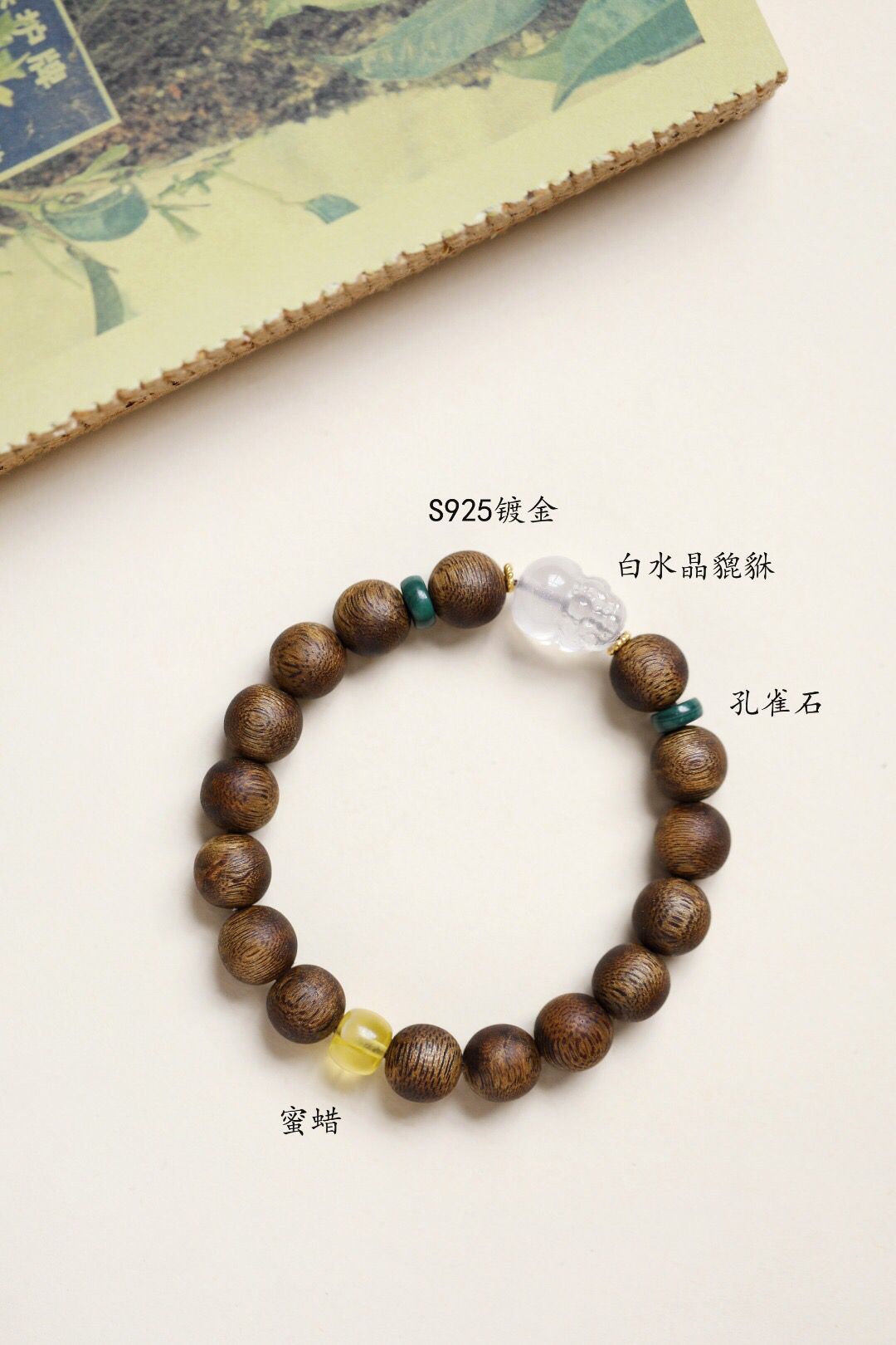 配件:孔雀石、蜜蜡、S925镀金、白水晶貔貅
